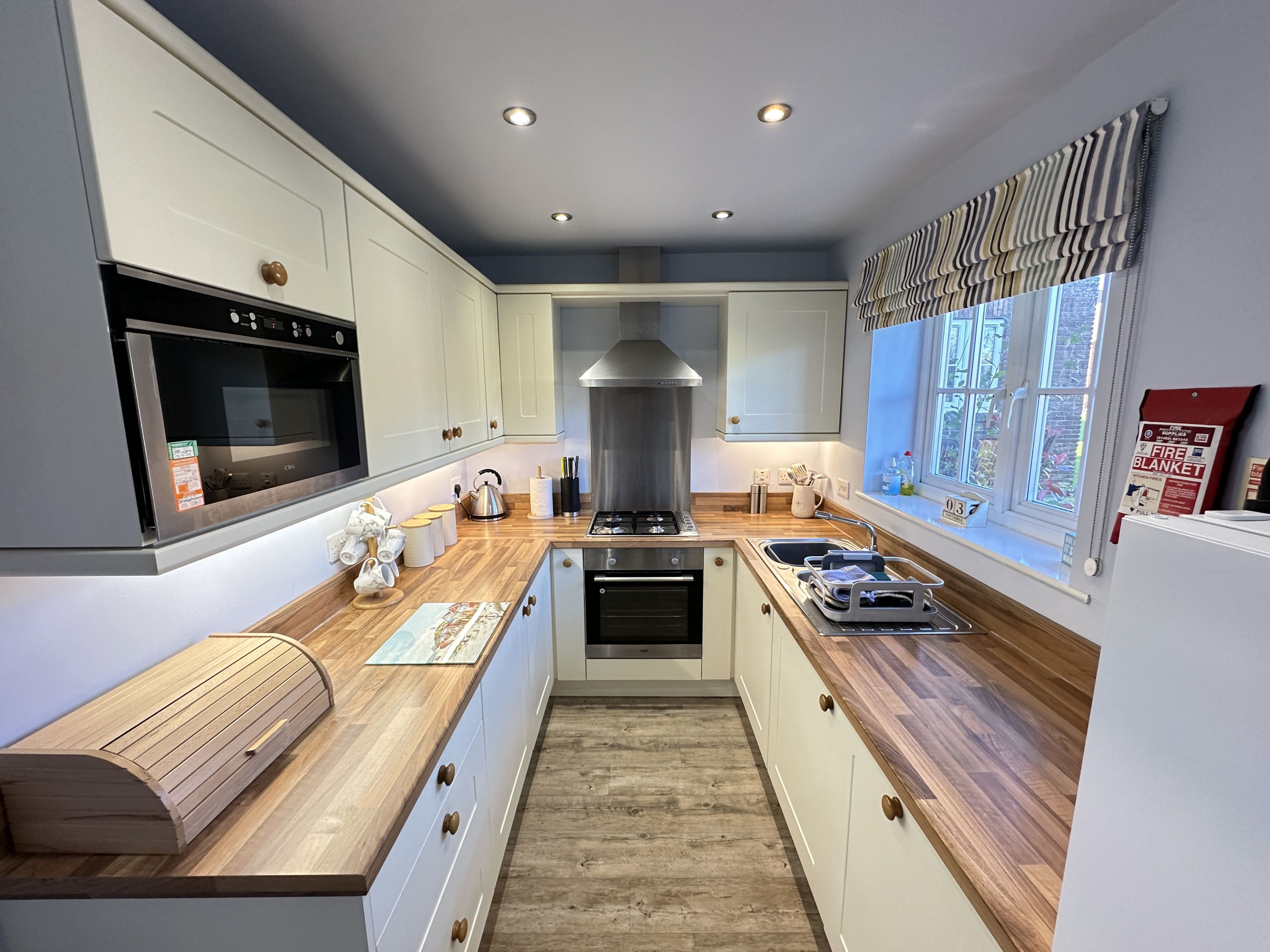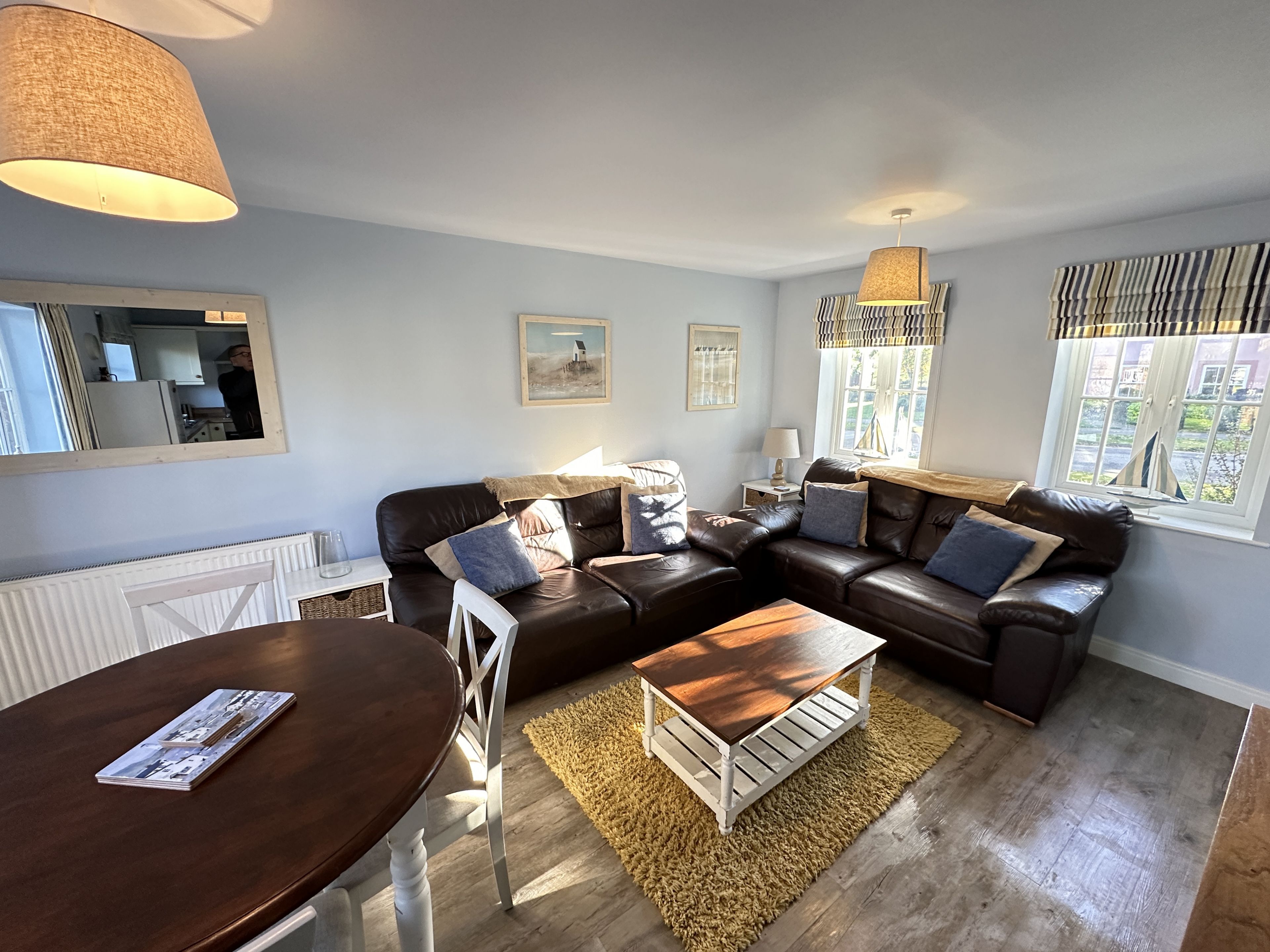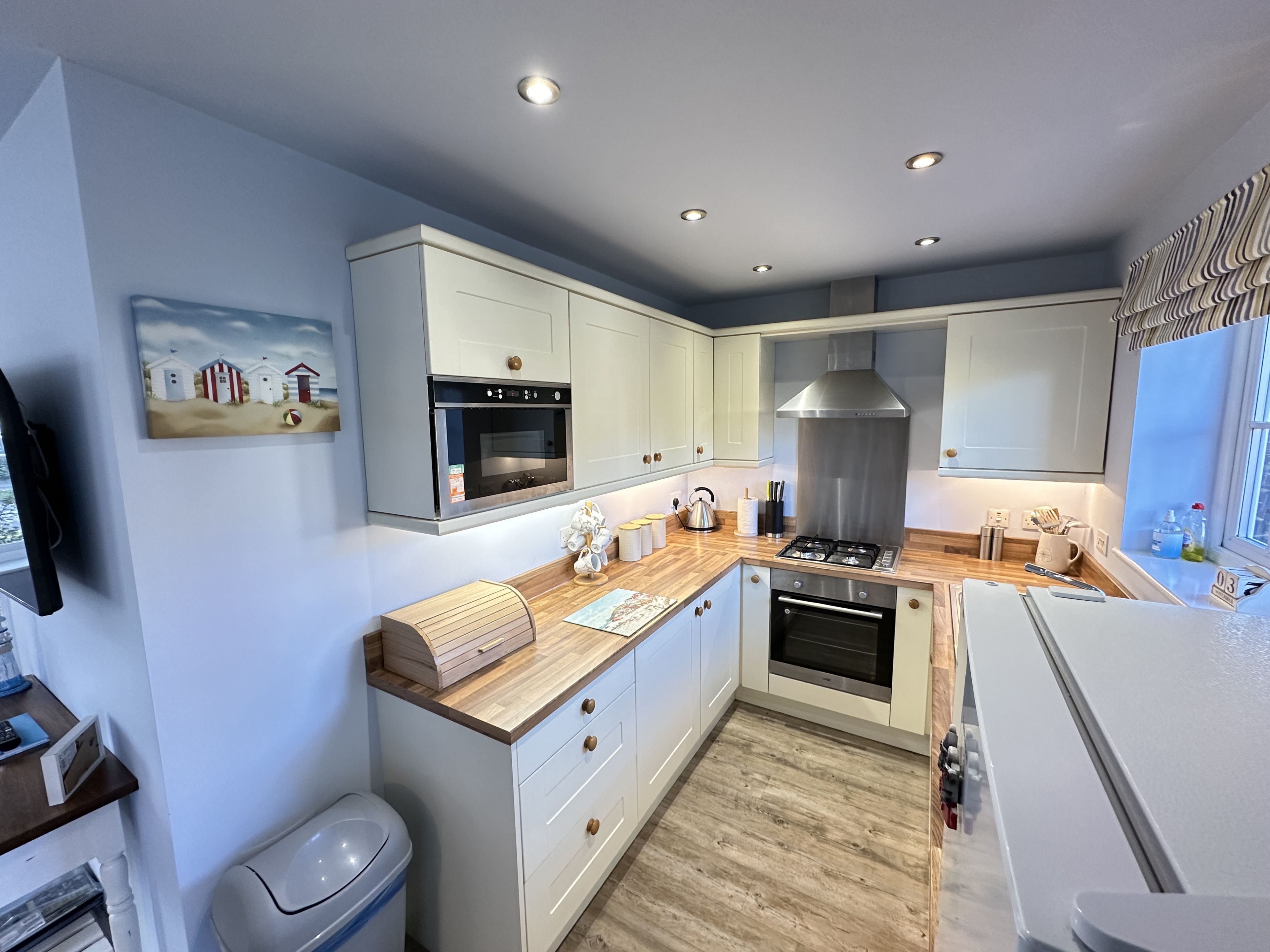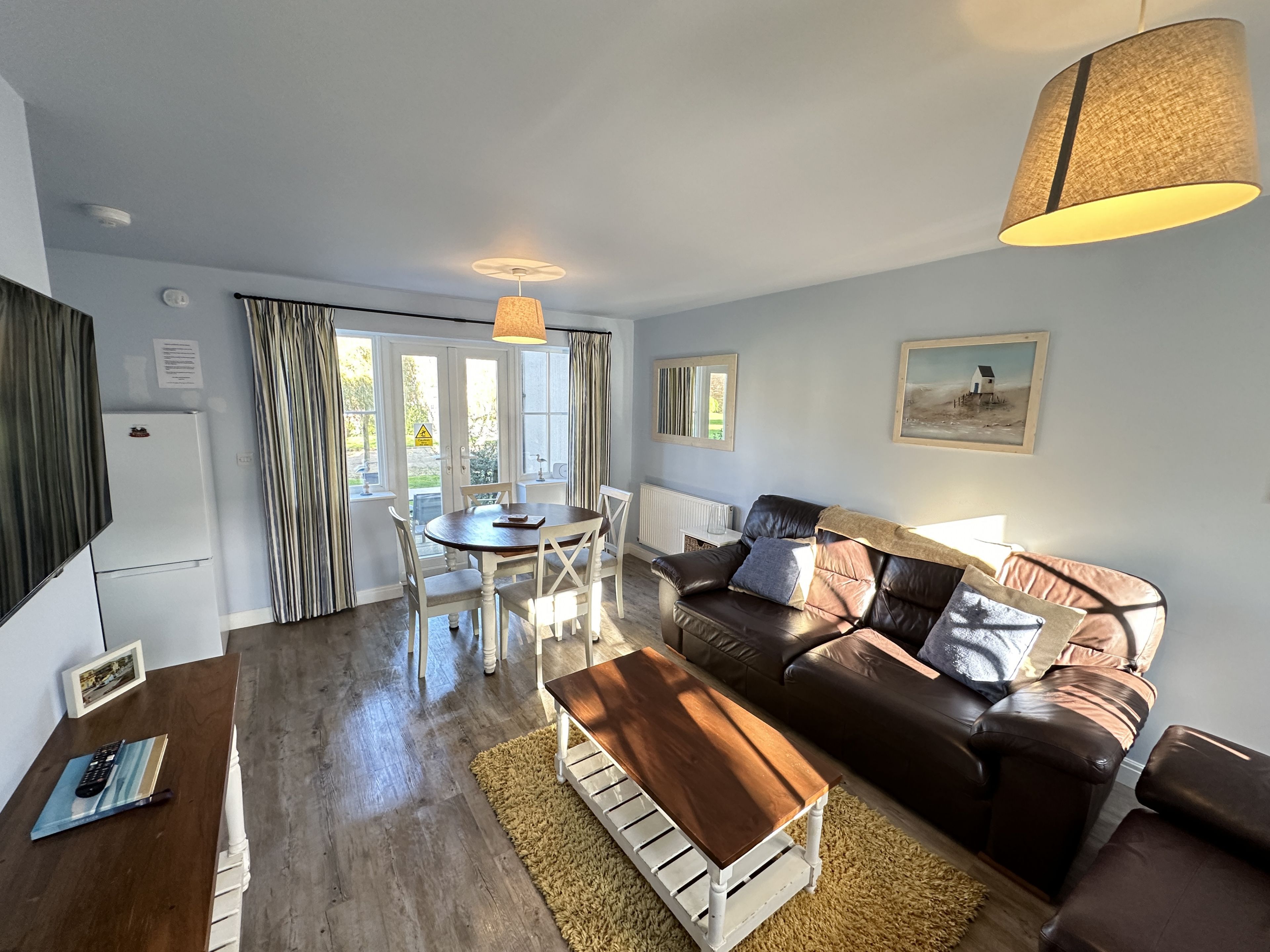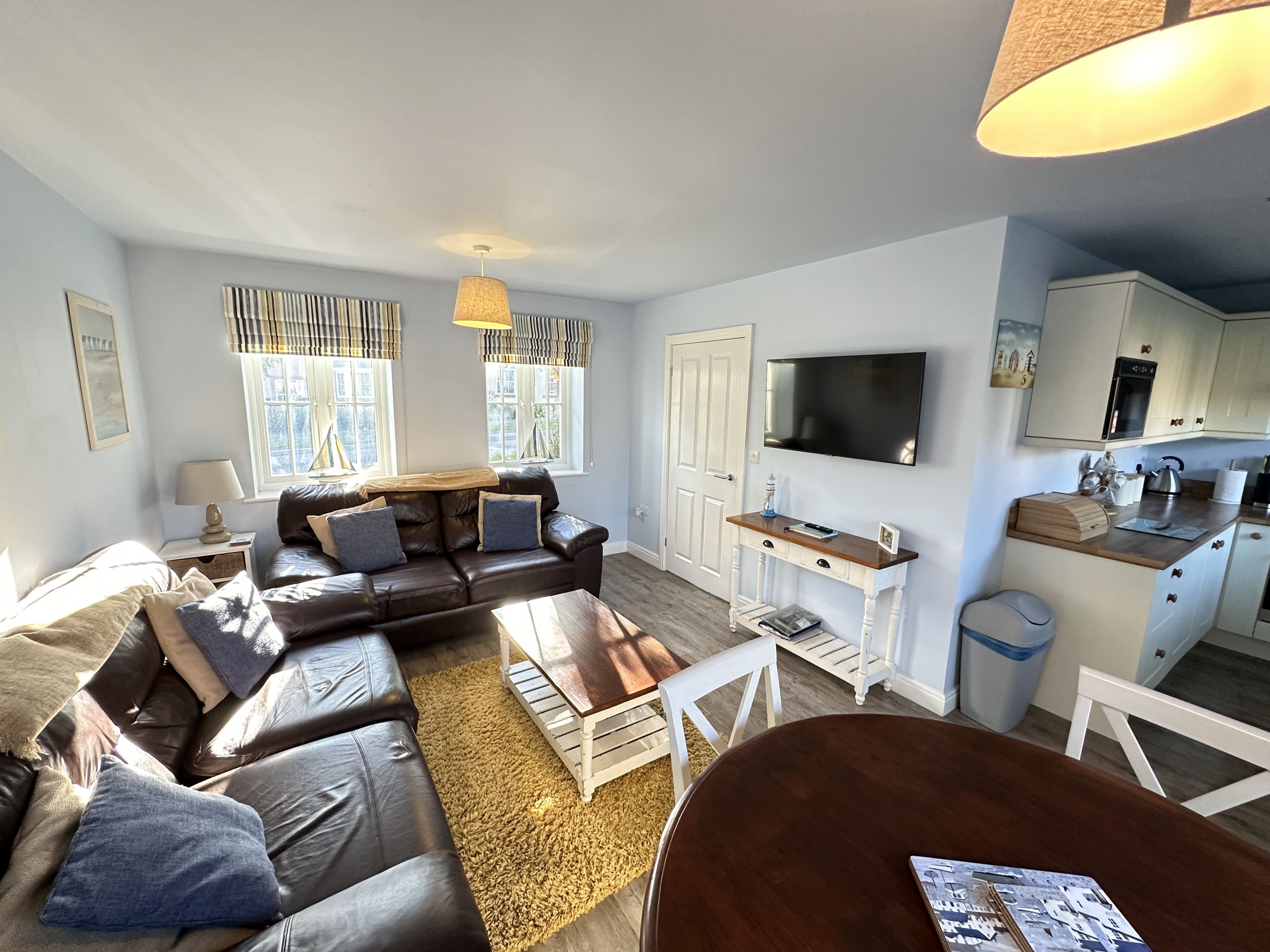 Walk through into the large open plan L shaped lounge with sofas, SMART TV, dining room (sits 4) and fully fitted kitchen including dishwasher, washer/dryer etc.