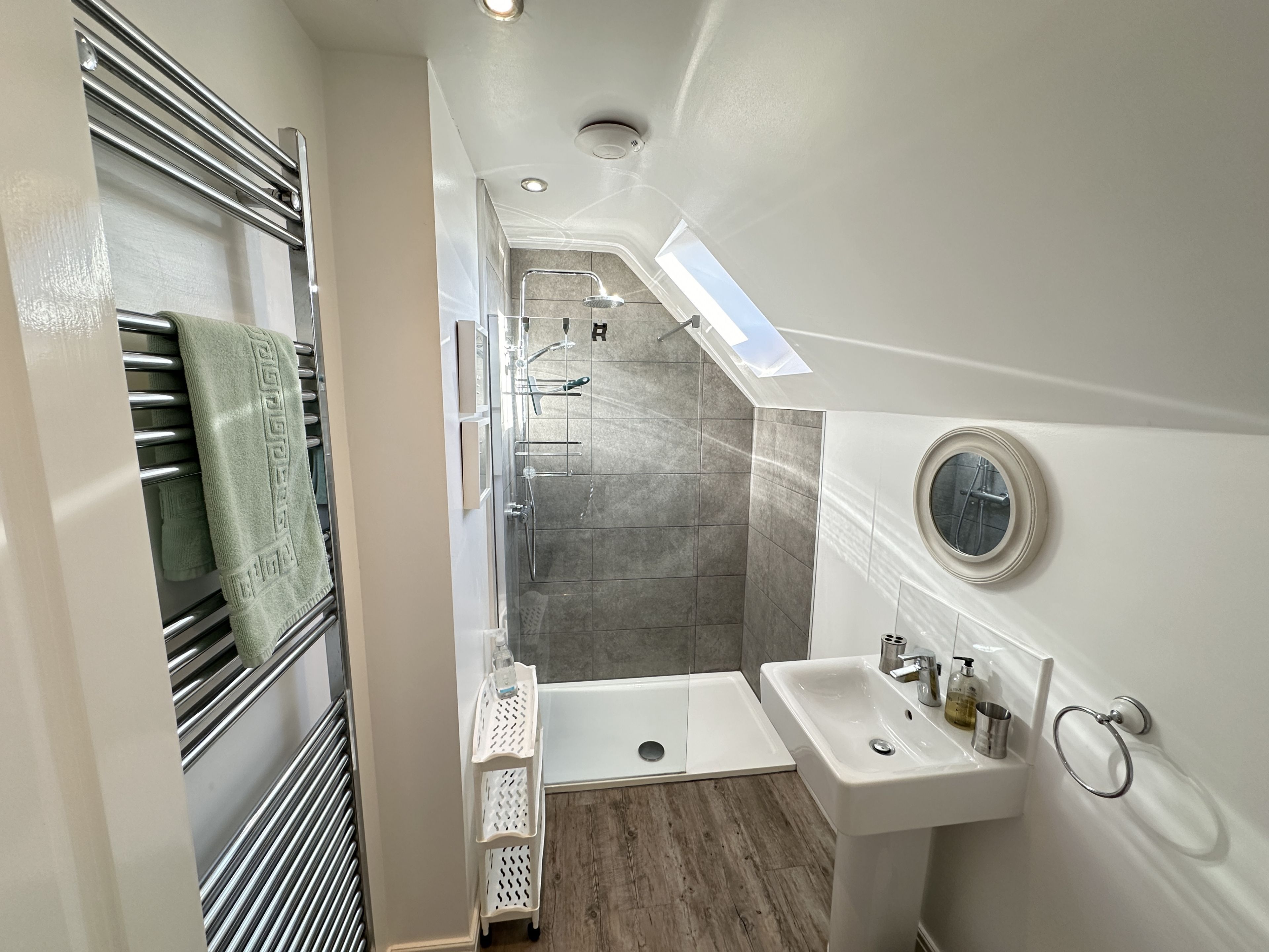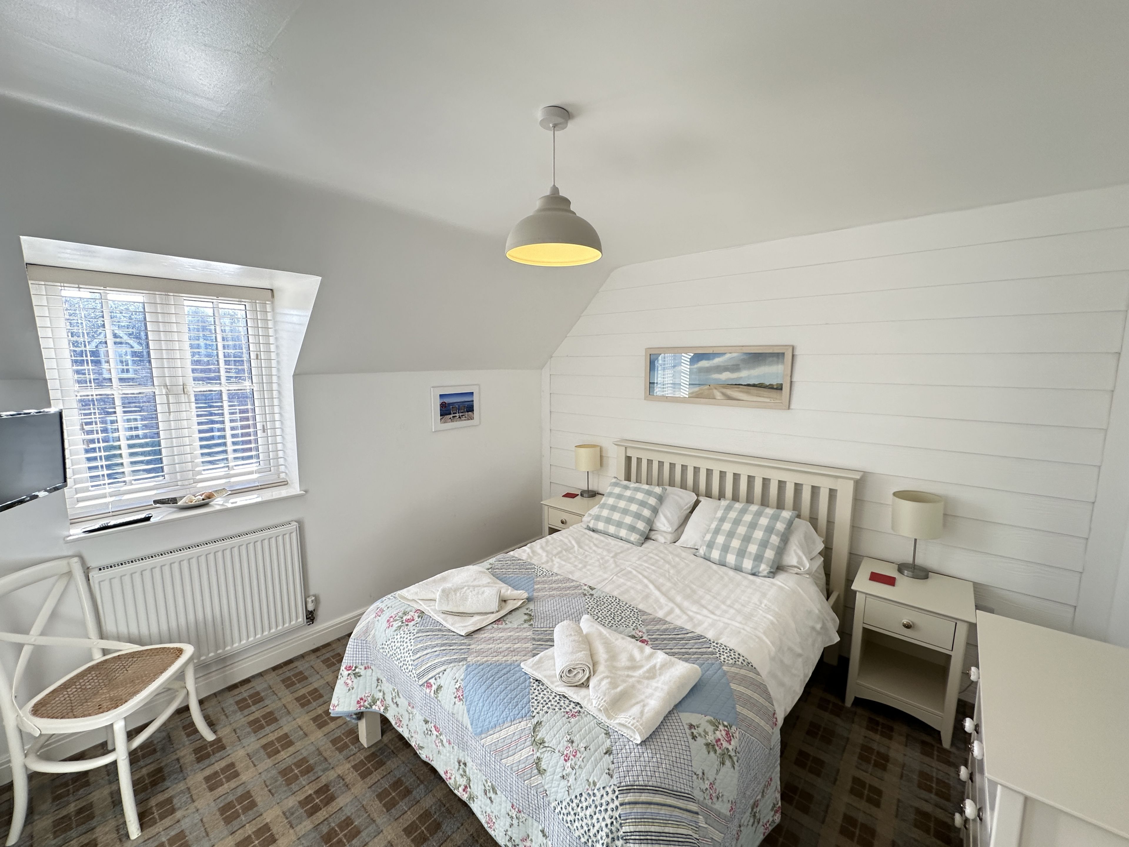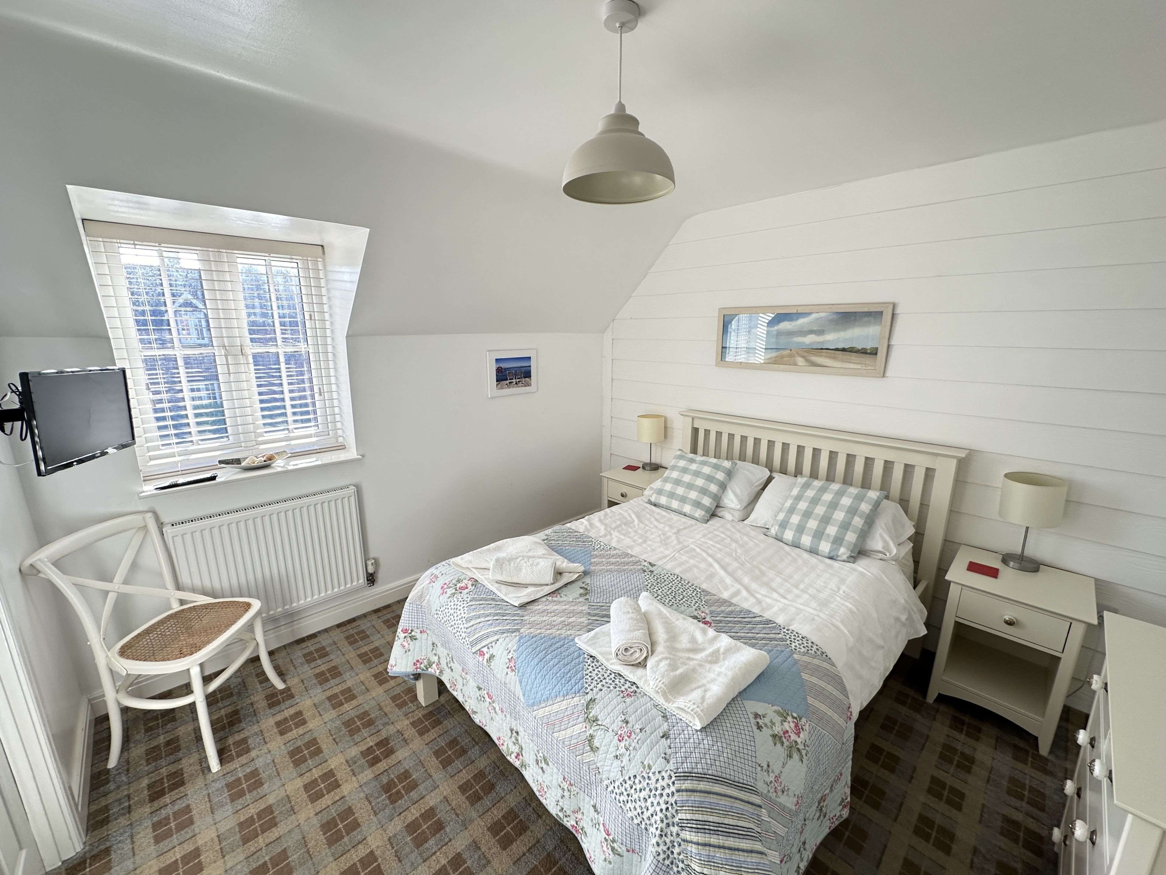 Upstairs the master bedroom includes a king size bed (from Feb 2024 (double until then)) and luxury En-suite with rainfall shower (New in 2021). The second bedroom has two single beds and a bunk over one of them with access to the family bathroom with bath and overhead rainfall shower.