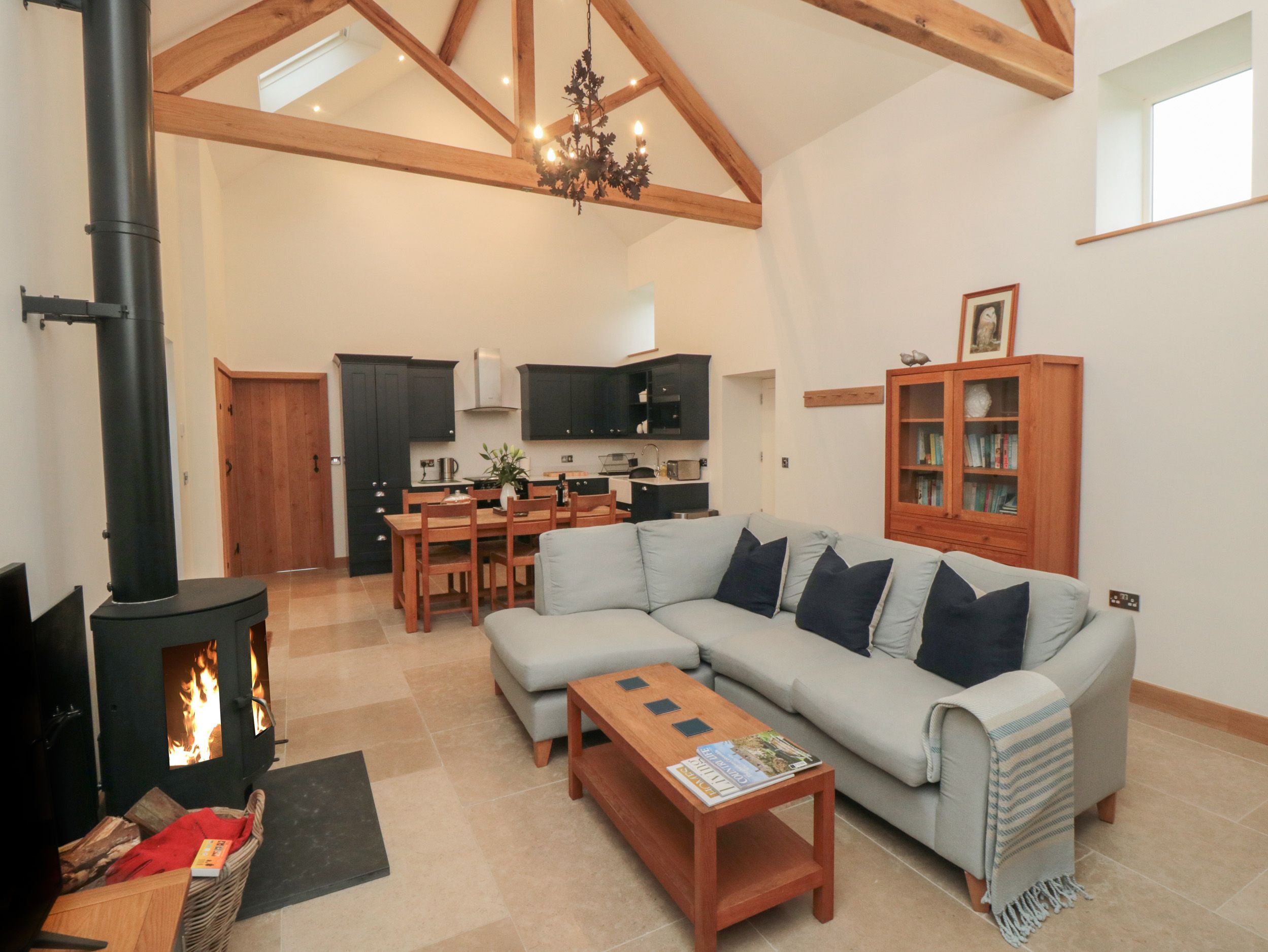Amenities Oil underfloor central heating. Electric Range oven and hob, microwave, fridge with ice box, washer/dryer and dishwasher. Smart with Freesat, WiFi. Fuel, power, and starter pack for woodburning stove inc. in rent. Bed linen and towels inc. in rent. Travel cot and highchair available. Off road private parking for 3 cars. Shared garden with field, patio, furniture, barbecue and fire pit. Sorry, no pets, no smoking and vaping. Shop 1.9 miles, pub 2.2 miles, mini pub on-site (bring your own drinks). Note: The doorway to the first-floor bedroom is low, please take care. Note: Parts of the patio are uneven, please take care