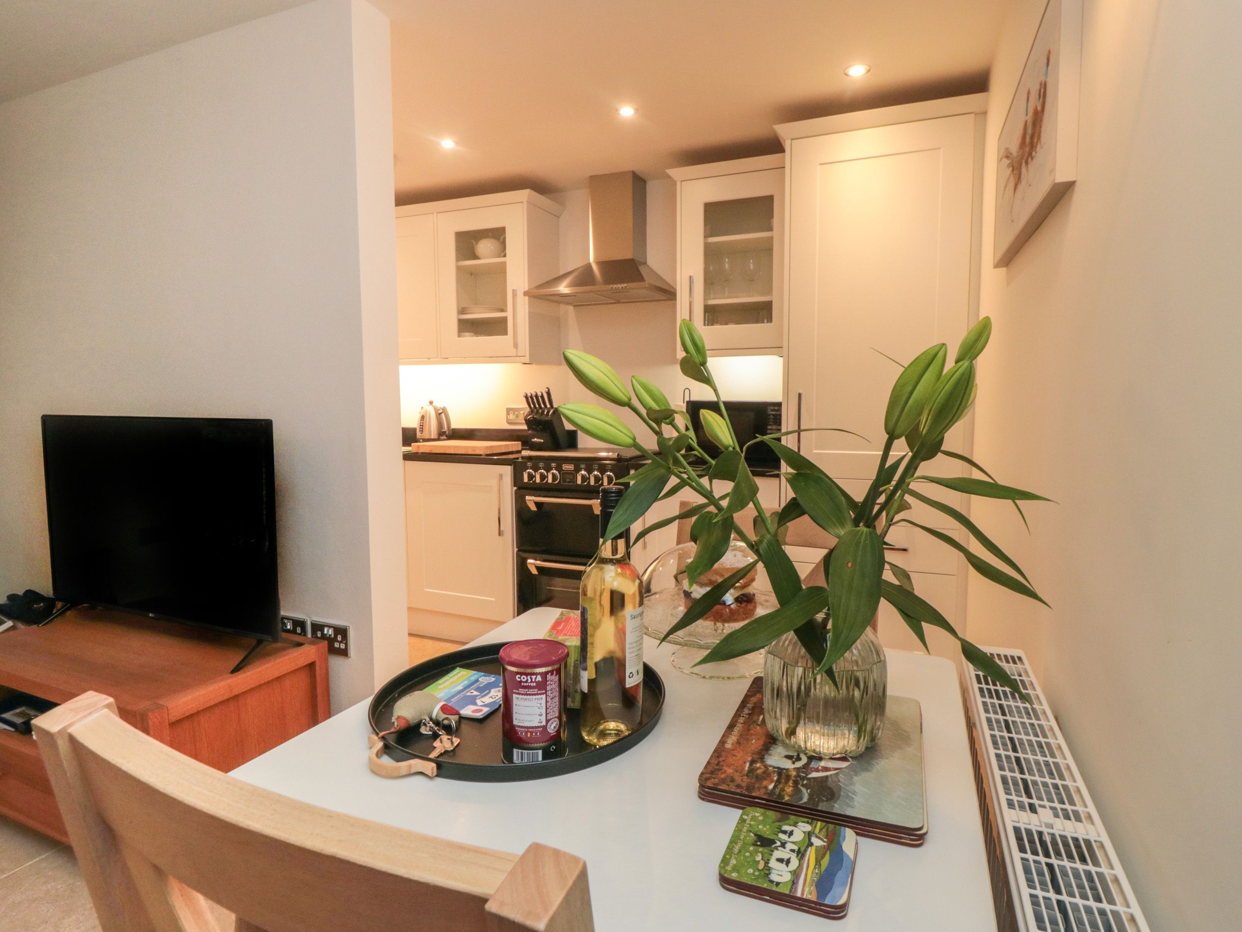 Amenities Oil central heating. Electric oven and hob, microwave, fridge with ice box, washer/dryer and dishwasher. Smart with Freesat and WiFi. Fuel, power, and starter pack for woodburning stove inc. in rent. Bed linen and towels inc. in rent. Off road private parking for 2 cars. Shared garden with field, patio, furniture, barbecue and fire pit. One well-behaved pet welcome. Sorry, no smoking and vaping. Shop 1.9 miles, pub 2.2 miles, mini pub on-site (bring your own drinks). Note: There is a step up from the open-plan living space to the shower room.