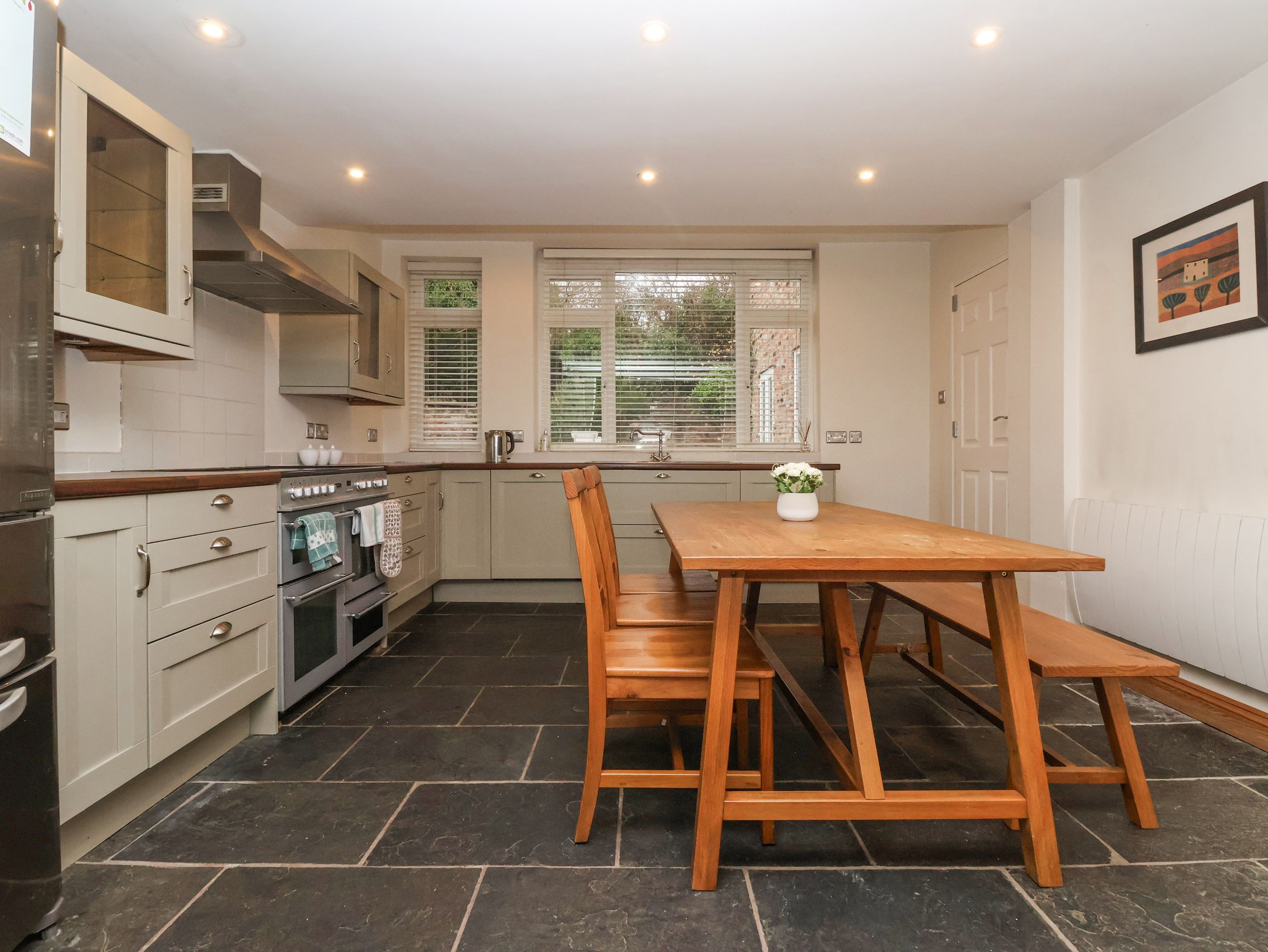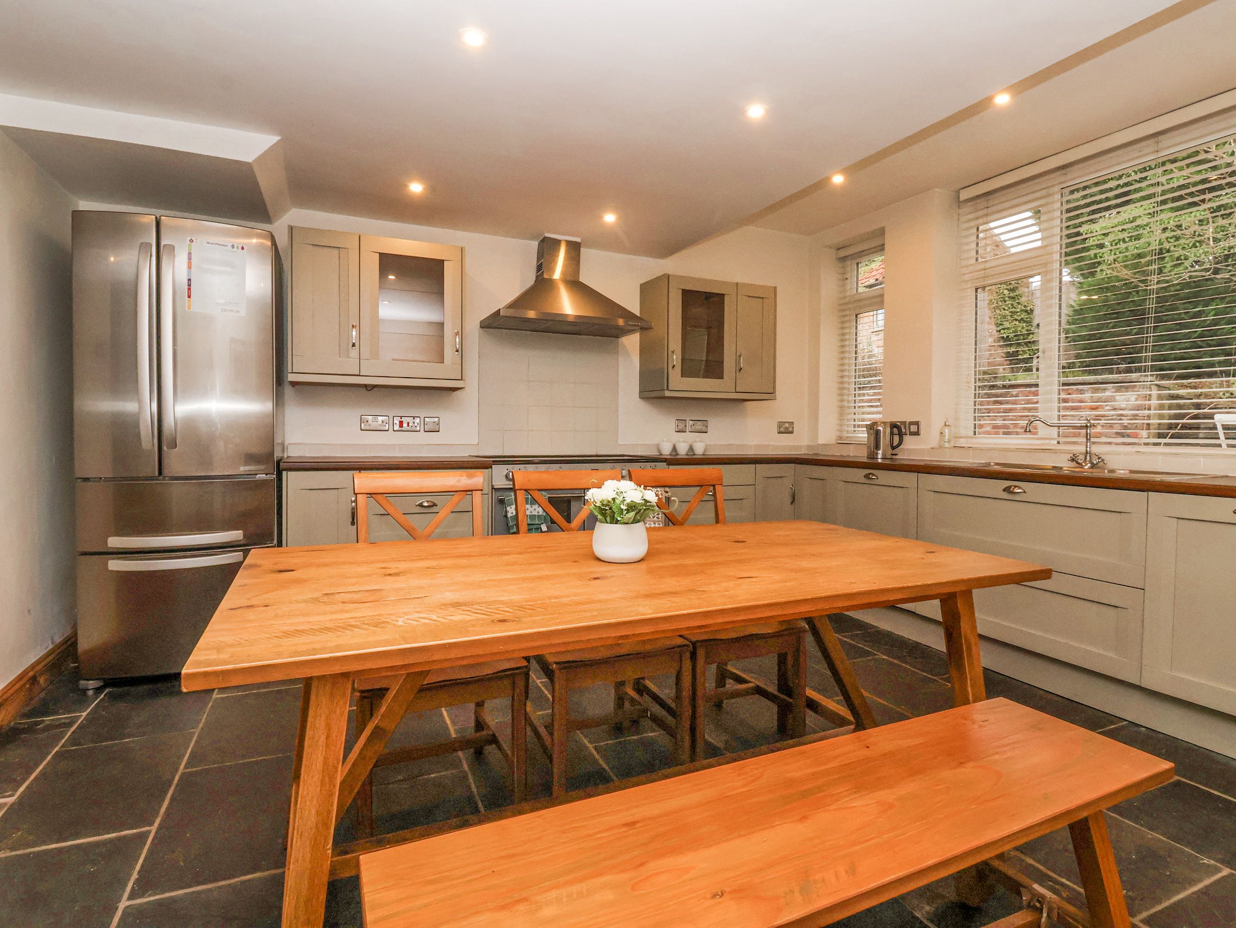 Holiday home Pear Tree Cottage consists of an open-plan kitchen/living/diner with electric range cooker, microwave, fridge/freezer, dishwasher, washing machine, kettle, toaster, dining seating for eight people, and sitting area with woodburning stove, along with a snug with TV. The bedrooms consist of a double with en-suite, two doubles, and two singles, along with two bathrooms. Outside, there is an enclosed front and rear garden with gravelled area and furniture, and designated, off-road parking for one car. Highchair and stair-gate available on request. Two well-behaved dogs welcome. Sorry, no smoking. You'll find a shop in 0.1 miles and pub in 0.4 miles. WiFi, fuel, power, starter pack for woodburning stove, bed linen, and towels are all inc. in rent. Pear Tree Cottage is a charming base for a North Yorkshire escape. Note: Few extra steps up to master bedroom.