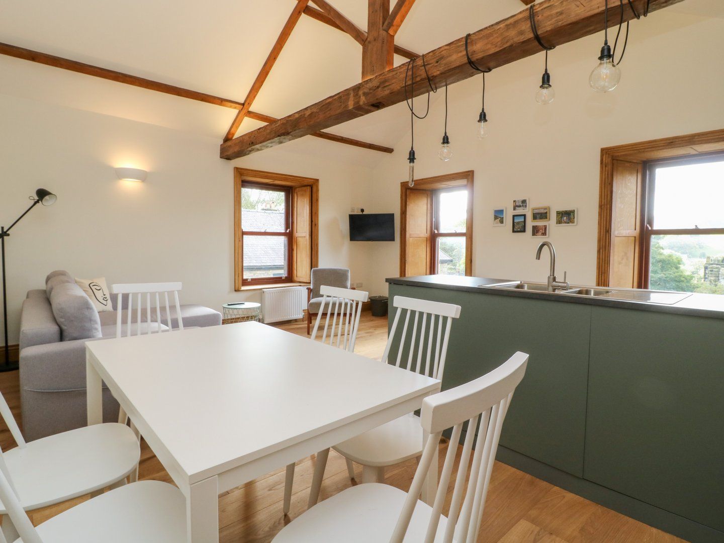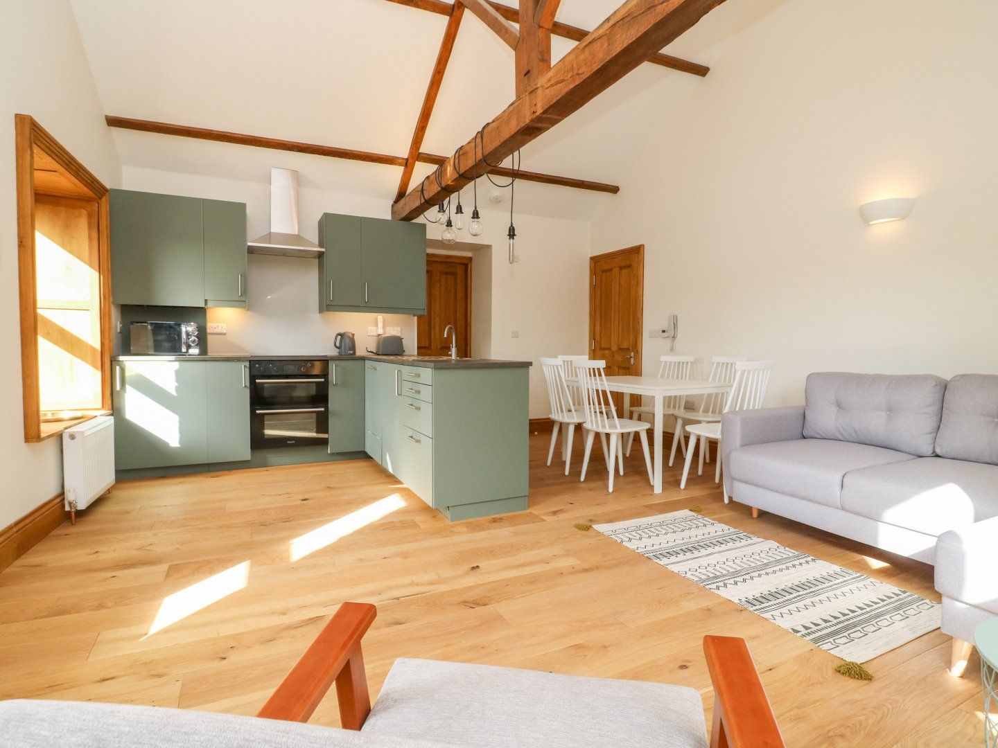 Accomodation Details Two double bedrooms. Bathroom with bath, shower over, basin and WC. Open-plan living space with kitchen, dining area and sitting area