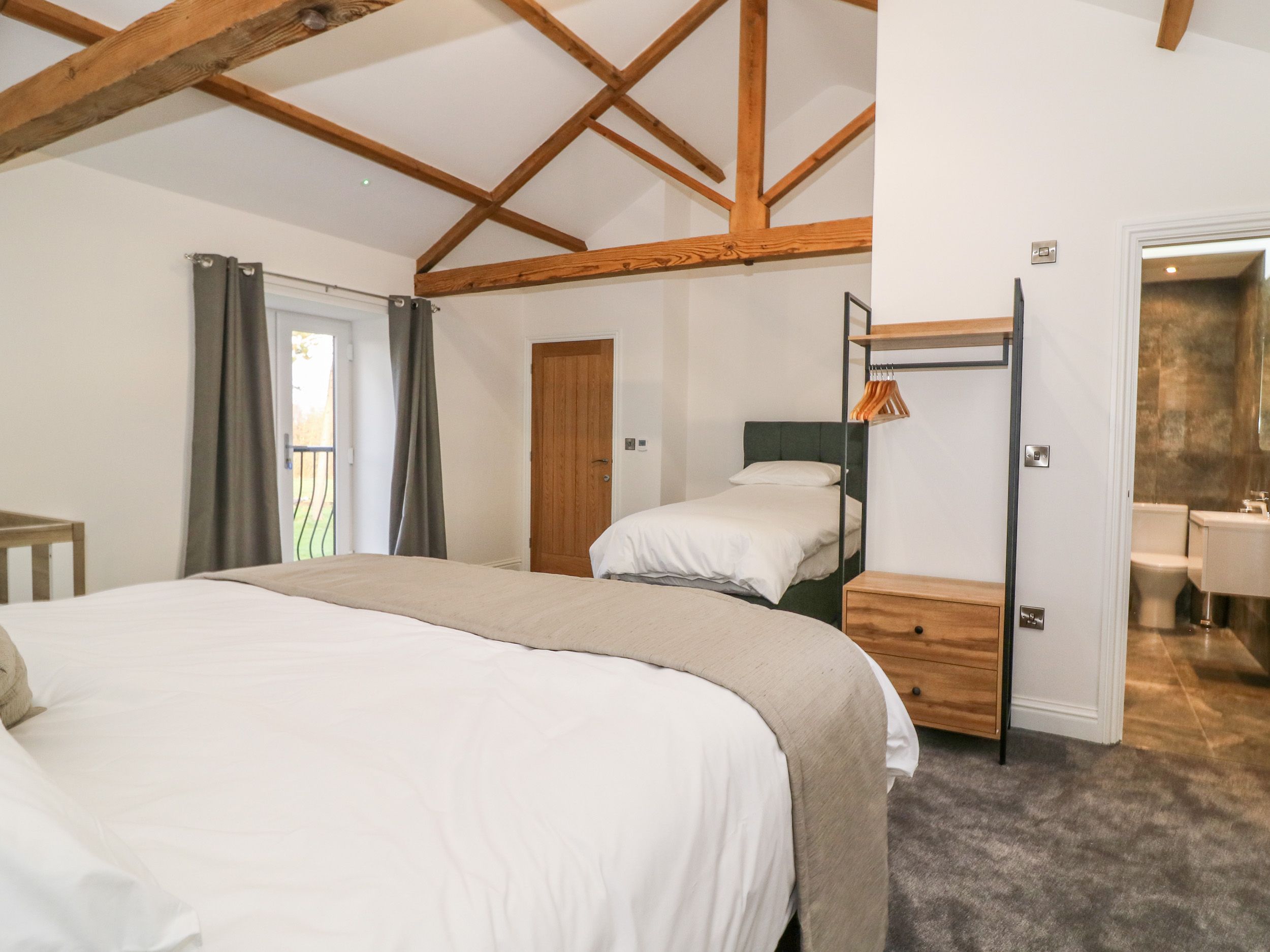 Holiday home Miller's Wheel is a superb barn conversion resting in Follifoot near Spofforth, North Yorkshire. There are two bedrooms in the property sleeping five guests, made up of a family room with a super-king-size (zip/link, twin on request), a single and a cot with an en-suite bathroom, and a super-king-size with an en-suite shower room. There is also a cloakroom and an open-plan living space with a kitchen, dining area and sitting area. Outside you will discover ample off-road parking with an electric car charging point, a private patio with furniture, and a rear lawn with a pagoda and furniture. Miller's Wheel is an exceptional choice for an escape to explore the Yorkshire Dales with friends or family.