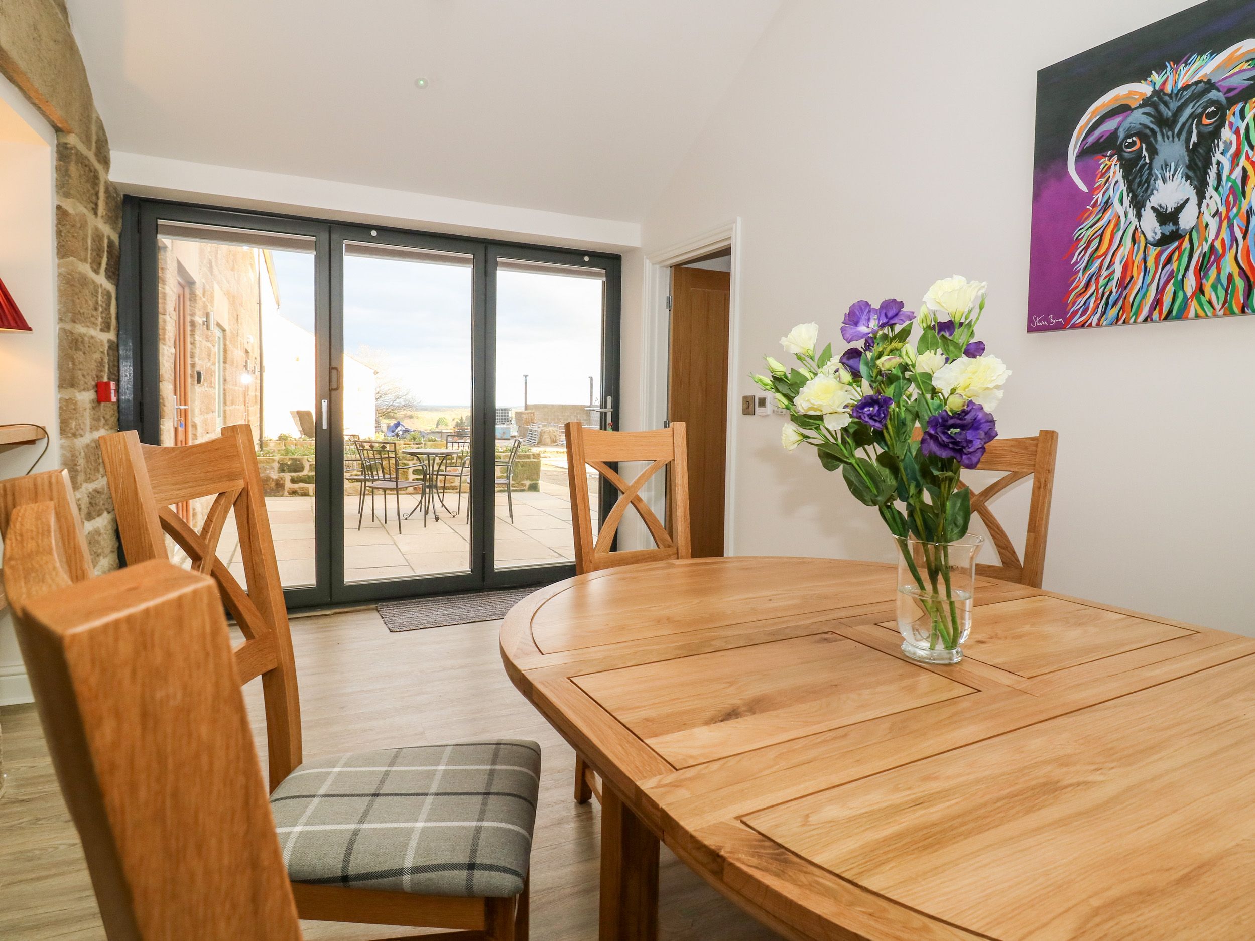 Holiday home Shepherd's Crook is a beautifully presented barn conversion resting in Follifoot near Spofforth, North Yorkshire. There are three king-size bedrooms in the property sleeping six people, including one on the ground-floor with zip/link functions (twin on request) with an en-suite wet room, and two on the first floor with en-suite shower rooms, one of which is zip/link. The cottage also has an open-plan living space with a kitchen, dining area and sitting area. Externally there is a private patio with furniture, a rear lawn with a pagoda and furniture, and ample off-road parking with an electric car charging point. Shepherd's Crook makes a wonderful choice for an exceptional stay in Yorkshire with your loved ones. Property is accessed down a farm lane which drivers need to take at a steady pace.