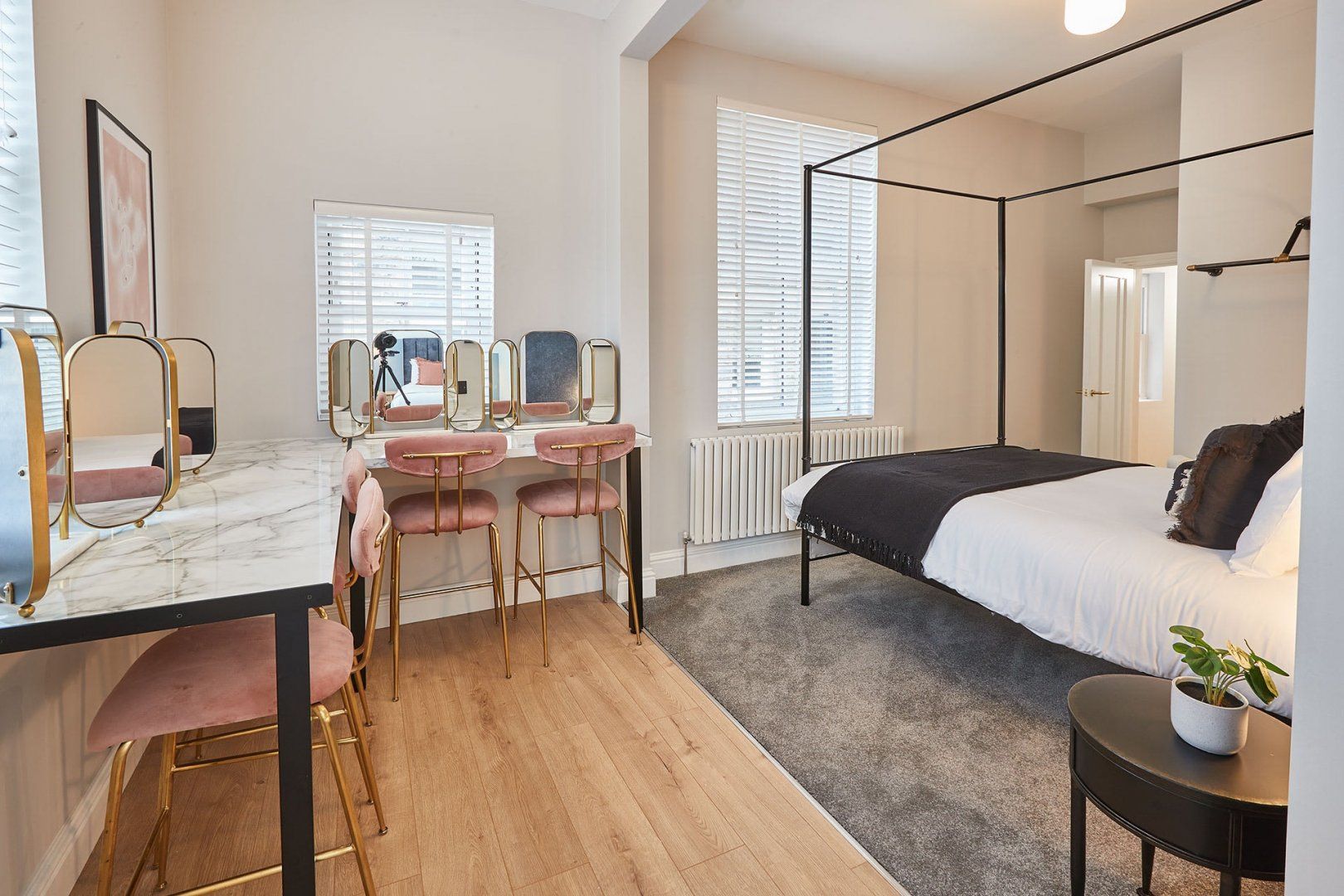 Inside, you'll find chic design touches as well as some quirky features such as a dedicated beauty room, decked out in blush pink, gold and marble – the perfect spot to get ready for a night out in the town centre.