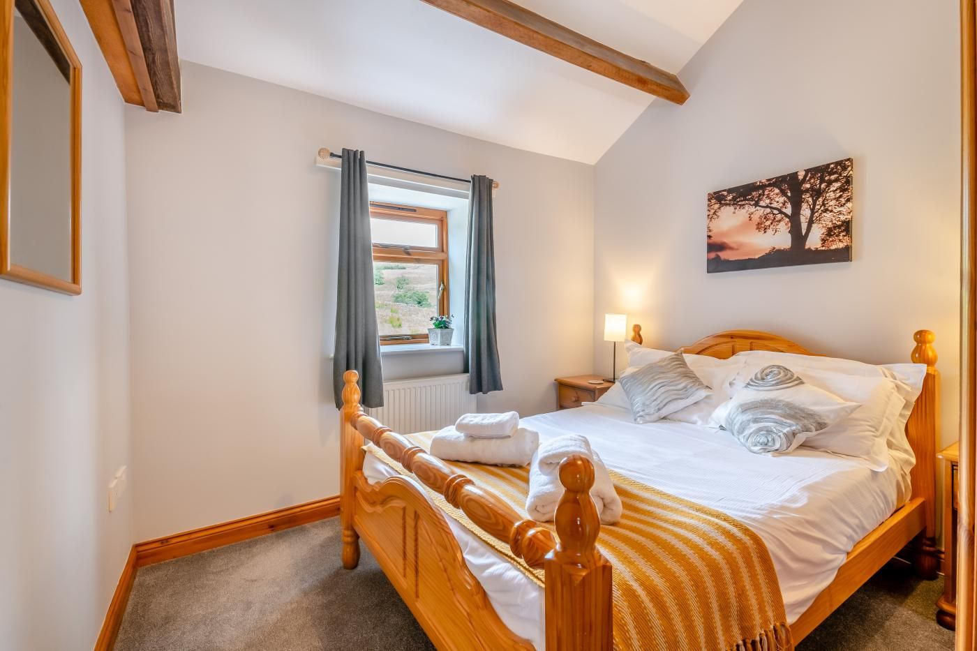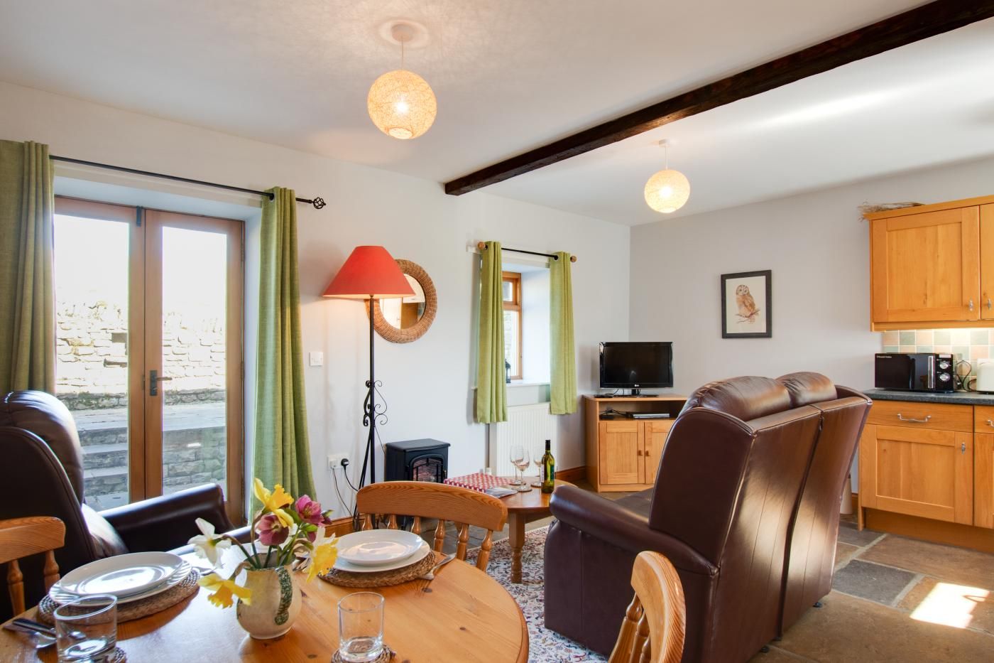 Beneath the traditional stone exterior, you’ll find a haven of authentic charm in the light and bright open-plan lounge/kitchen/diner. Beautiful natural wood hues perfectly reflect the colours of the dramatic landscape that surrounds you, immersing you in the beauty of the Yorkshire Dales.