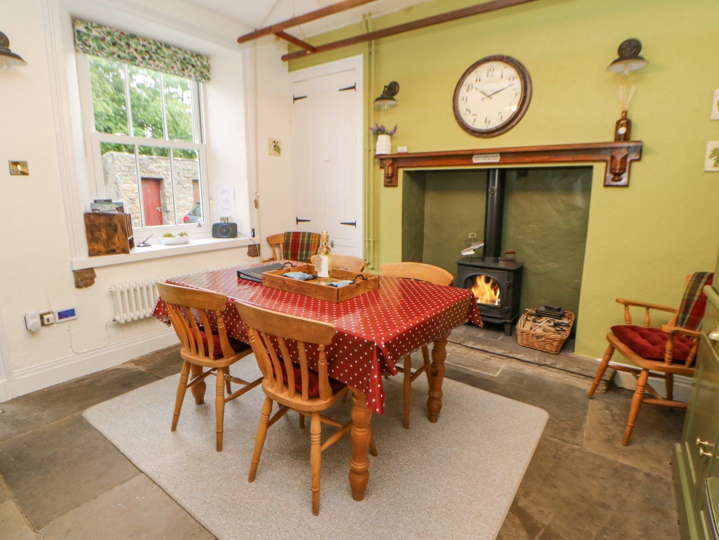 Holiday home Miss Burrow's House has three bedrooms with Smart TVs including a double, a twin and a single, along with a bathroom. The living areas consist of a kitchen, dining room with a woodburning stove and a sitting room with an open fire. Appliances include an electric oven and hob, microwave, fridge/freezer, washing machine, dishwasher and Tassimo coffee maker, and for entertainment there is another Smart TV and WiFi. Outside, there is roadside parking on a first-come, first-served basis, and an enclosed garden with a patio, charcoal barbecue and furniture. A travel cot and highchair are provided, and fuel, power, starter packs for the fires, bed linen and towels are all included in the rent. Two well-behaved dogs are welcome, but sorry, this is a smoke-free property. You can find a shop and pub within 0.4 miles and check-in is from 4pm. This property can't accept bookings starting on a Sunday. This property has a 3 night minimum stay