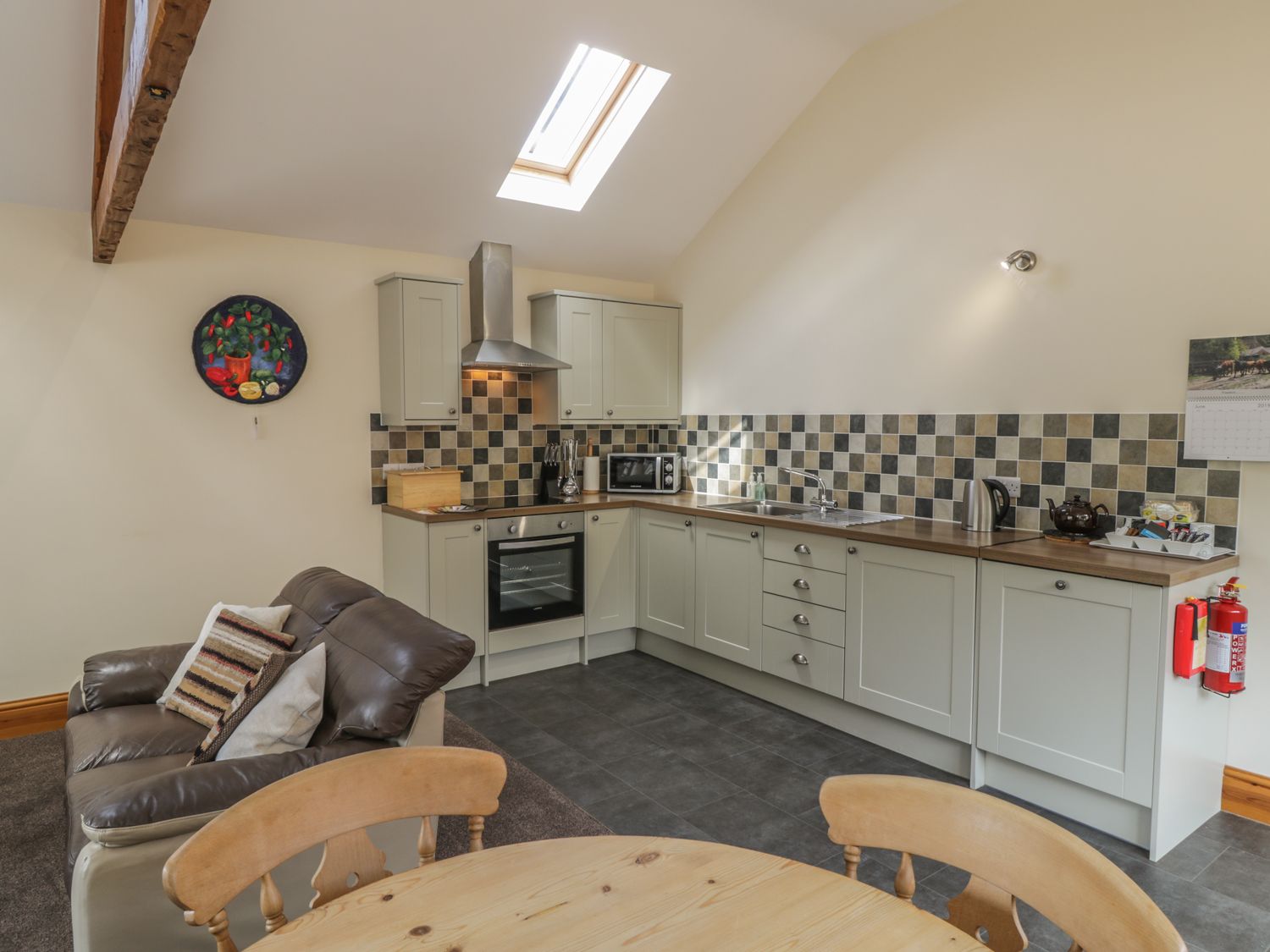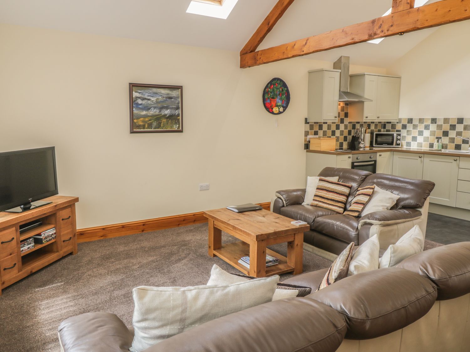 Amenities Wood pellet eco-friendly central heating. Electric oven and hob, microwave, fridge, dishwasher - tablets provided, Smart TV with Freeview, radio and WiFi. Washing machine and tumble dryer in shared external utility. Fuel and power inc. in rent. Bed linen and towels inc. in rent. Travel cot and highchair on request. Off road parking for 2 cars. Enclosed, communal gravelled courtyard with furniture. Sorry, no pets and no smoking. Shop 4 miles, pub 1.9 miles. Note: The property is accessed via a ramp and has wide doors, so may be suitable for accompanied wheelchair users and those with limited mobility, please contact owner for more information.