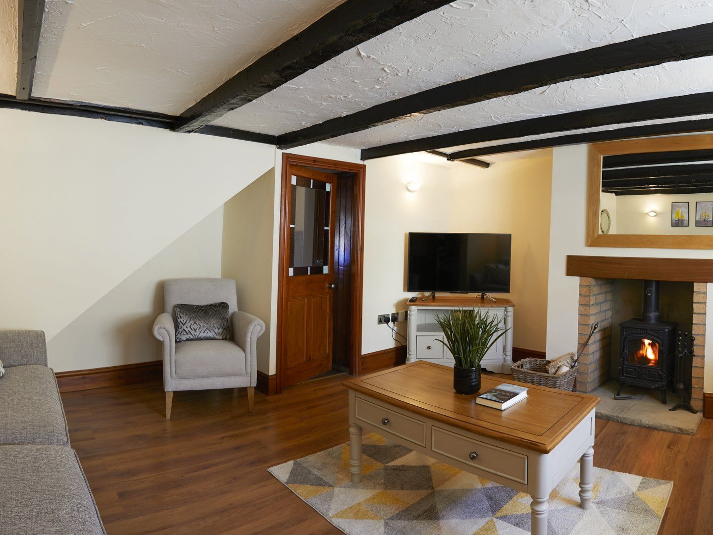 Amenities Gas central heating with woodburning stove. Range oven and hob, kettle, toaster, microwave, fridge/freezer, washing machine, dishwasher. 2 x TV's, WiFi. Fuel, power and starter pack for woodburning stove inc. in rent. Bed linen and towels inc. in rent. Roadside parking available on a first-come, first-served basis. Enclosed rear patio garden with furniture. One well-behaved dog welcome. Sorry, no smoking. Shop 0.1 mile, pub 0.2 miles. Note: There is secure bike storage in the utility room, which could house 4 bikes