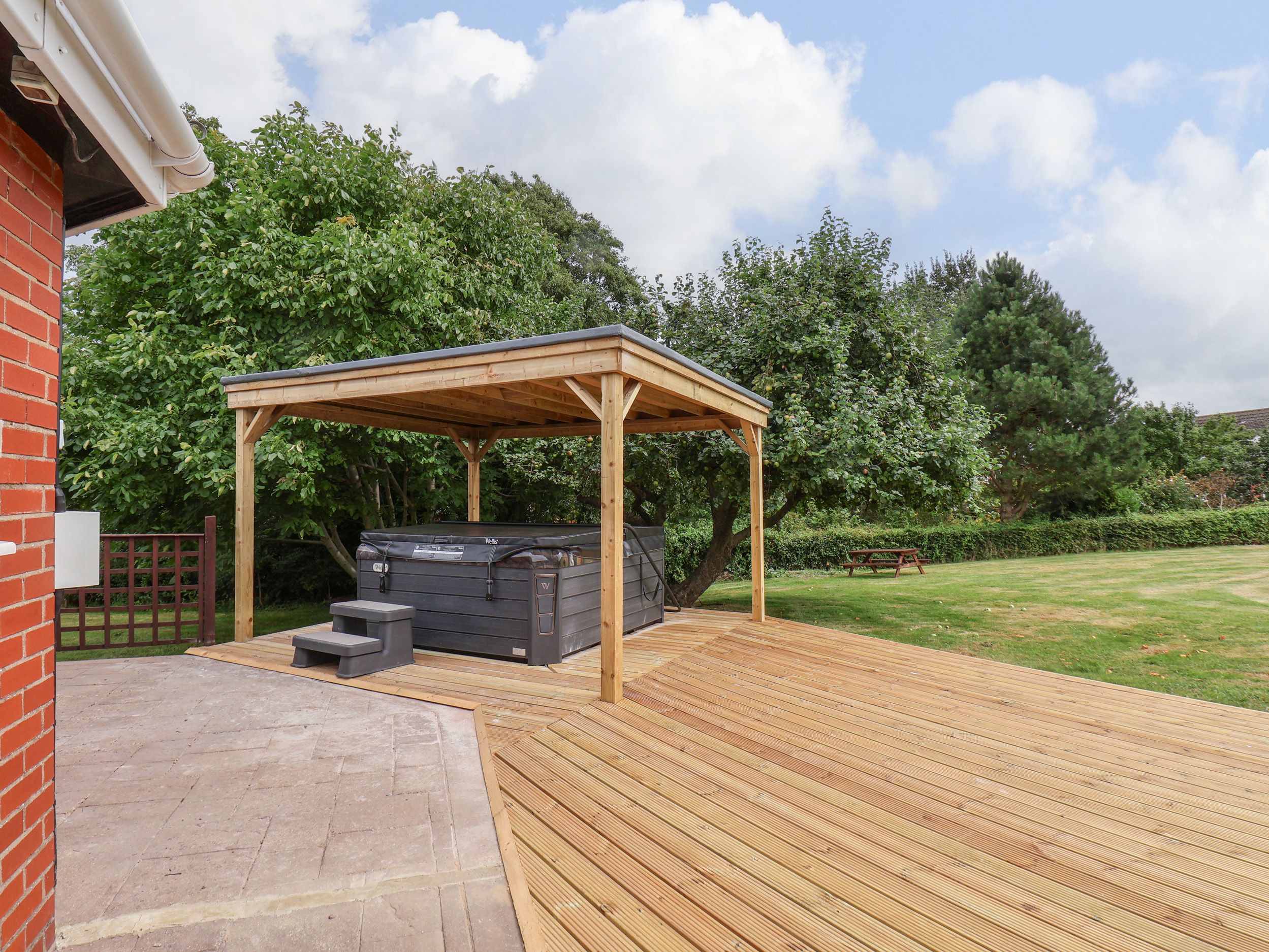 Amenities Central heating. Range cooker, oven and hob, additional oven, 2 x microwave, 2 x full size fridge/freezers, washing machine, tumble dryer and 2 x dishwashers. 3 x TVs, WiFi, and a selection of books and games. 2 x travel cots and 2 x high chairs. Fuel and power inc. in rent. Bed linen and towels inc. in rent ( please bring your own towels for hot tub use). Ample off road parking for 10 cars. Garden with terrace area, lawn, games, picnic benches and hot tub. Two well-behaved pets welcome. Sorry, no smoking. Shop 0.2 miles, pub 0.1 mile