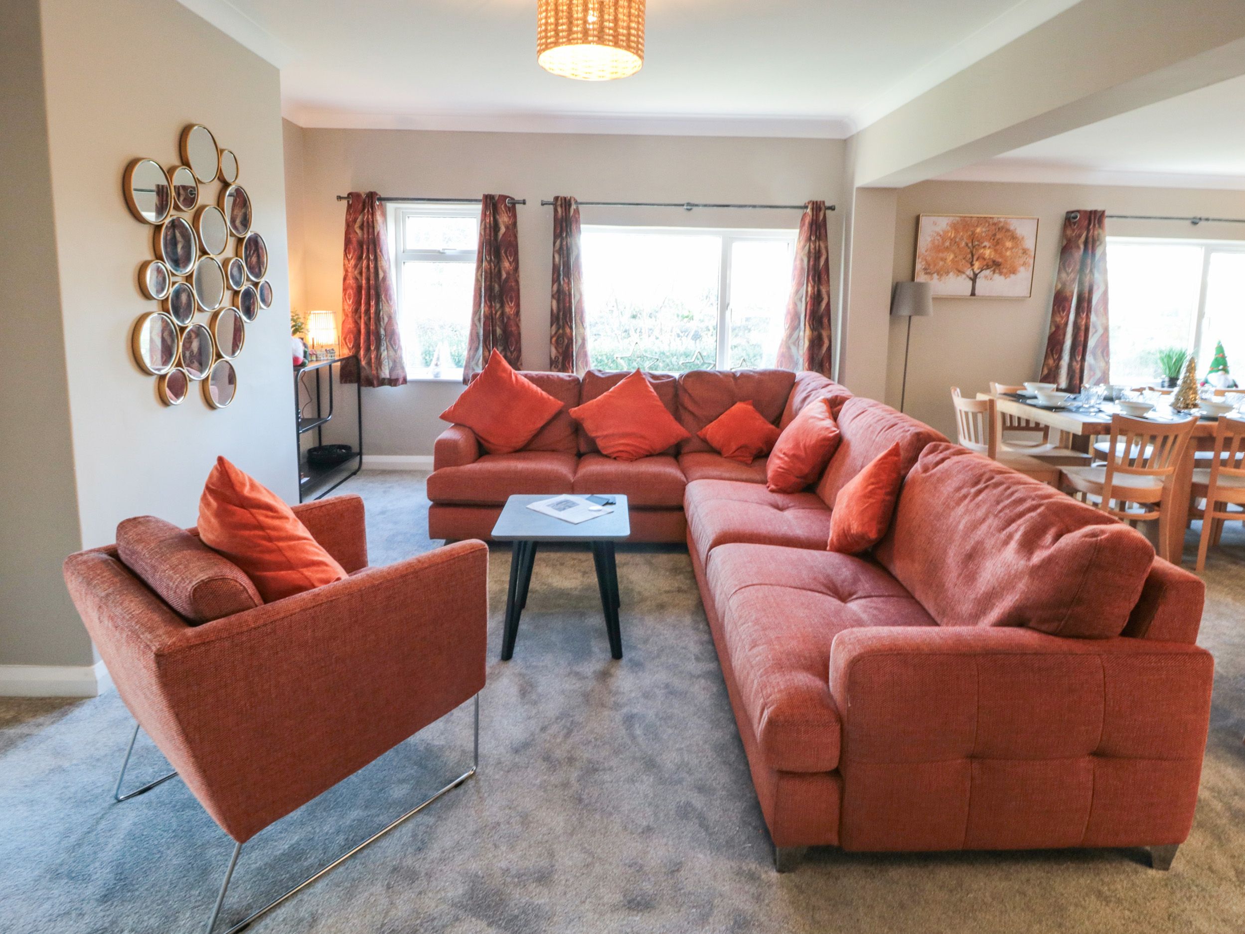 Holiday home Hazelgarth Lodge is set over three floors and has 13 bedrooms including a mix of king-size and twins, with one super-king-size and one family room with a double and twin singles. There are eight bedrooms with en-suite basins and WCs, along with three bathrooms and two shower rooms. The living areas include a kitchen, utility, dining room, two sitting rooms, a breakout room, and a hot tub room. Appliances include a Range cooker, oven and hob, microwave, two fridge/freezers, washing machine, tumble dryer and two dishwashers, along with TVs, WiFi, and a selection of books and games for entertainment. Outside, there is parking and a garden with terrace area, lawn, games, picnic benches and a hot tub. Two well-behaved pets are welcome, but sorry no smoking. Fuel, power, bed linen and towels are all included in the rent. You can find a shop and pub within 0.2 miles. Hazelgarth Lodge is the perfect setting for a large gathering with loved ones.