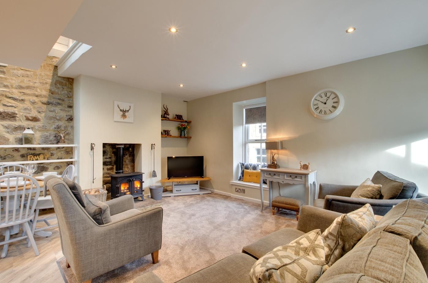 At the heart of this home is the open-plan living room/diner, located on the first floor, which features a lovely window seat where you can sit and admire the beautiful local scenery.