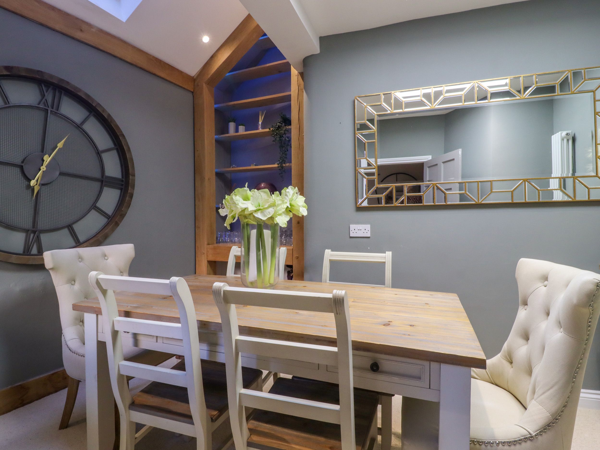 2 Castlegate. a four-storey abode, consists of a lower-ground-floor kitchen/diner with electric oven, hob, microwave, fridge, freezer, washer, dishwasher, and coffee maker, a dining area with seating for four people, a dining room with seating for six people, a sitting room with a TV and electric fire, and a study. The bedrooms consist of a single, double with en-suite shower, and two second-floor doubles, serviced by a bathroom and cloakroom. Outside there is an enclosed front garden with gravel and furniture, plus free roadside parking. Within 0.1 miles you will find a shop, and within 0.2 miles, a river. Please note that this is a pet-free and smoke-free property. WiFi, fuel, power, bed linen and towels are all included in the price. 2 Castlegate is a wonderful base for exploring the Yorkshire Dales National Park. Note: There are steep stairs up to the second floor please take care.