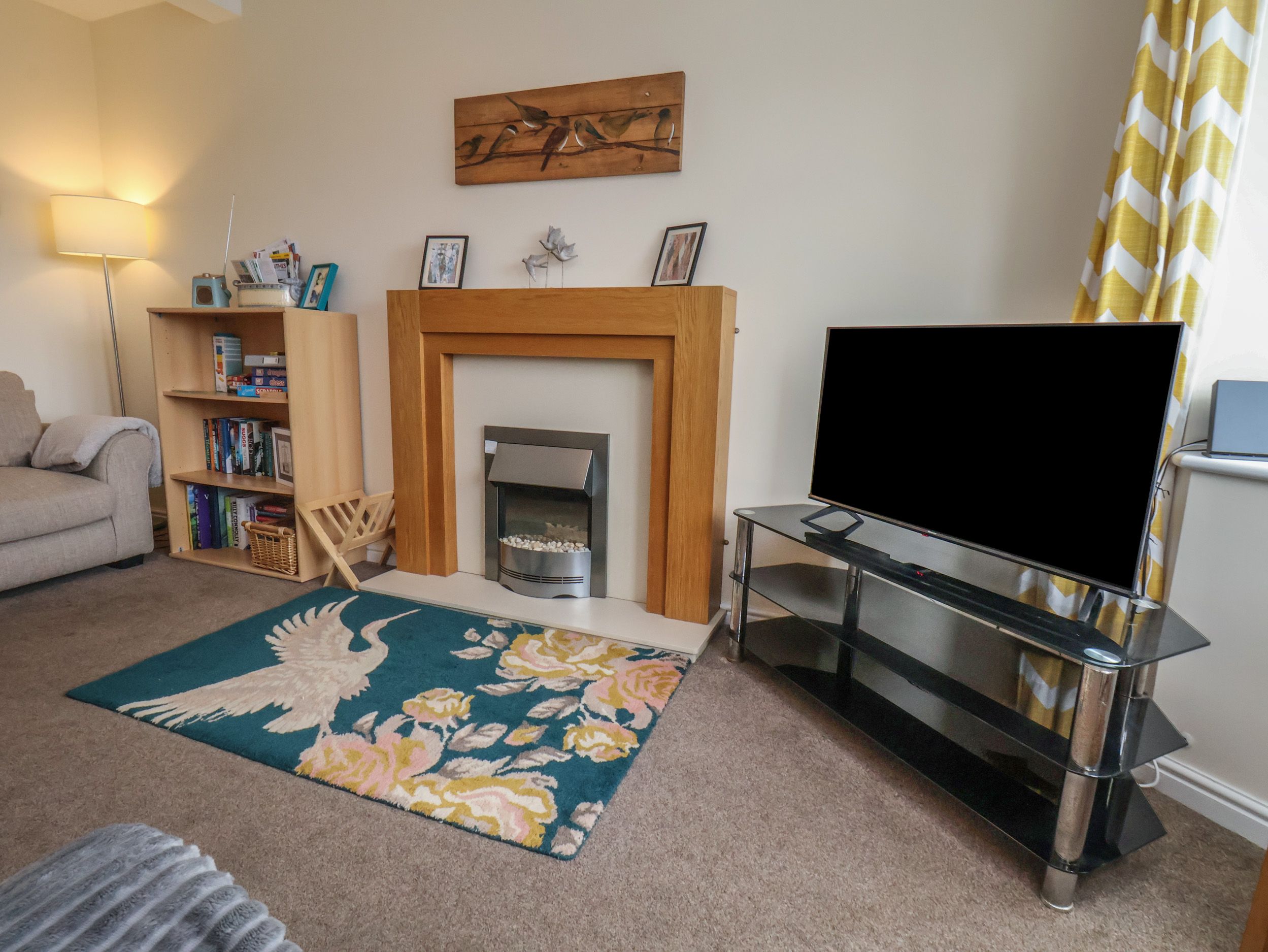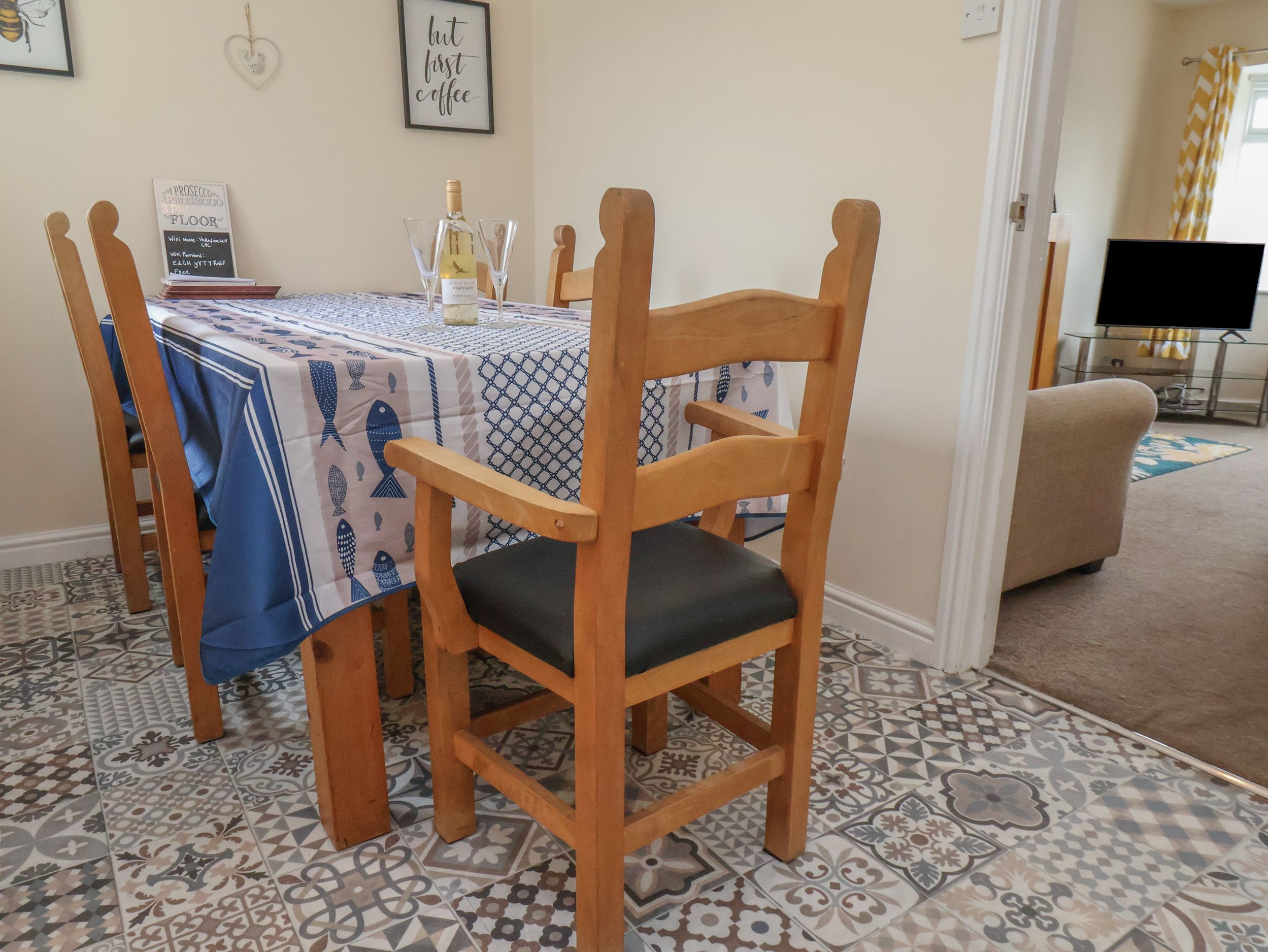 Amenities Electric central heating. Electric oven and hob, microwave, fridge, washing machine, air-fryer, dishwasher, new furnished flooring downstairs. Smart TV and on-demand apps such as BBC iPlayer and Netflix that are ready to use, WiFi. Fuel and power inc. in rent. Travel cot and highchair available on request. Bed linen and towels inc. in rent. Roadside parking. Small rear yard with patio, furniture and outdoor tap. One well-behaved pet welcome. Sorry, no smoking. Shop and pub 0.7 miles, beach 0.5 miles