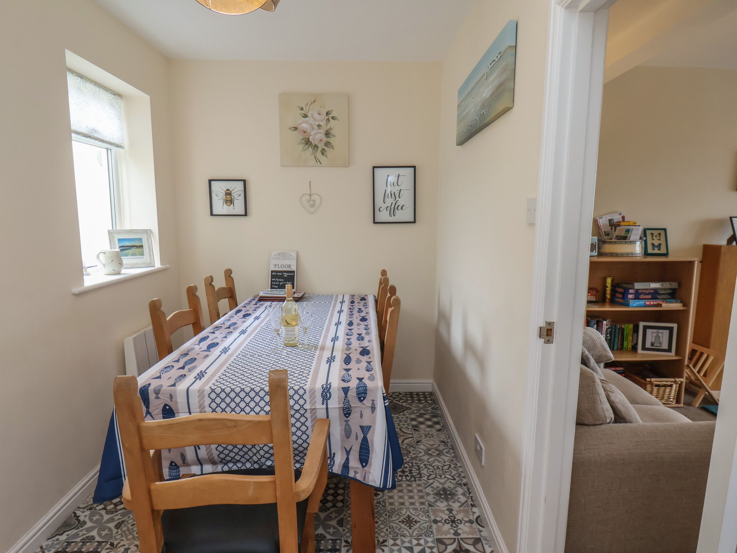 Holiday home The living areas in the property consist of a kitchen with electric oven and hob, microwave, fridge, washing machine, air-fryer, dishwasher, a dining room with seating for four people, and a sitting room with a TV. The bedrooms consist of a king-size and a double, along with a bathroom. Outside there is a small yard with patio, furniture, an outdoor tap and off-road parking is available. Within 0.7 miles, you will find a shop and a pub, and please note that this is a non-smoking property. WiFi, fuel, power, bed linen and towels are all included in the price. One well-behaved pet is welcome at this property. Whisk your loved ones away for an idyllic stay at North Terrace.