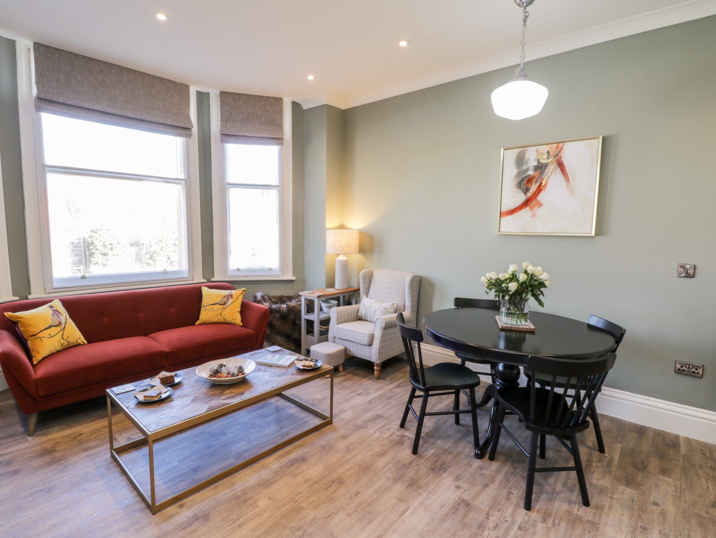 Accomodation Details First-floor apartment. Two bedrooms: 1 x king-size with TV, 1 x twin. Two bathrooms: 1x Shower room with walk-in shower, basin and WC, 1x Bathroom with bath, basin and WC. Open-plan living space with kitchen, dining and sitting area