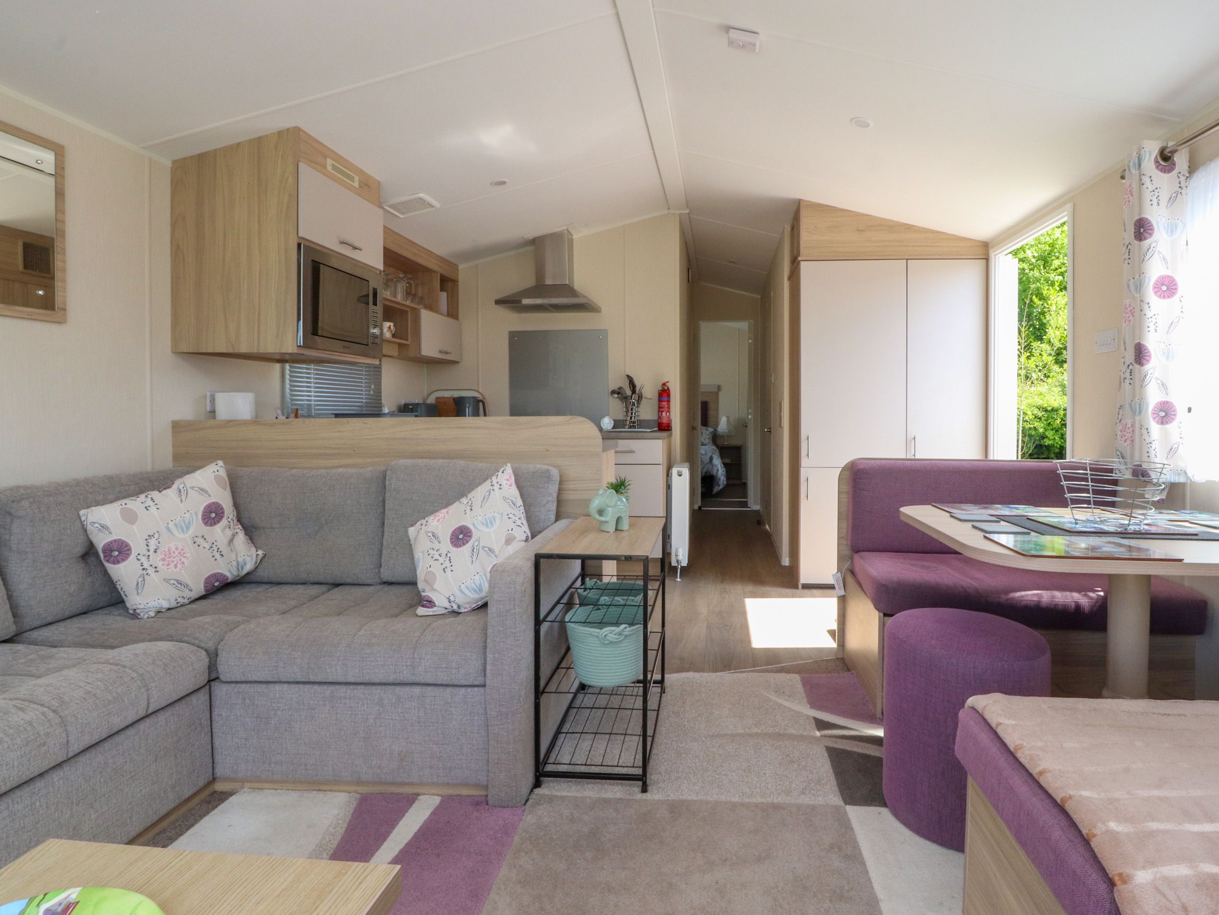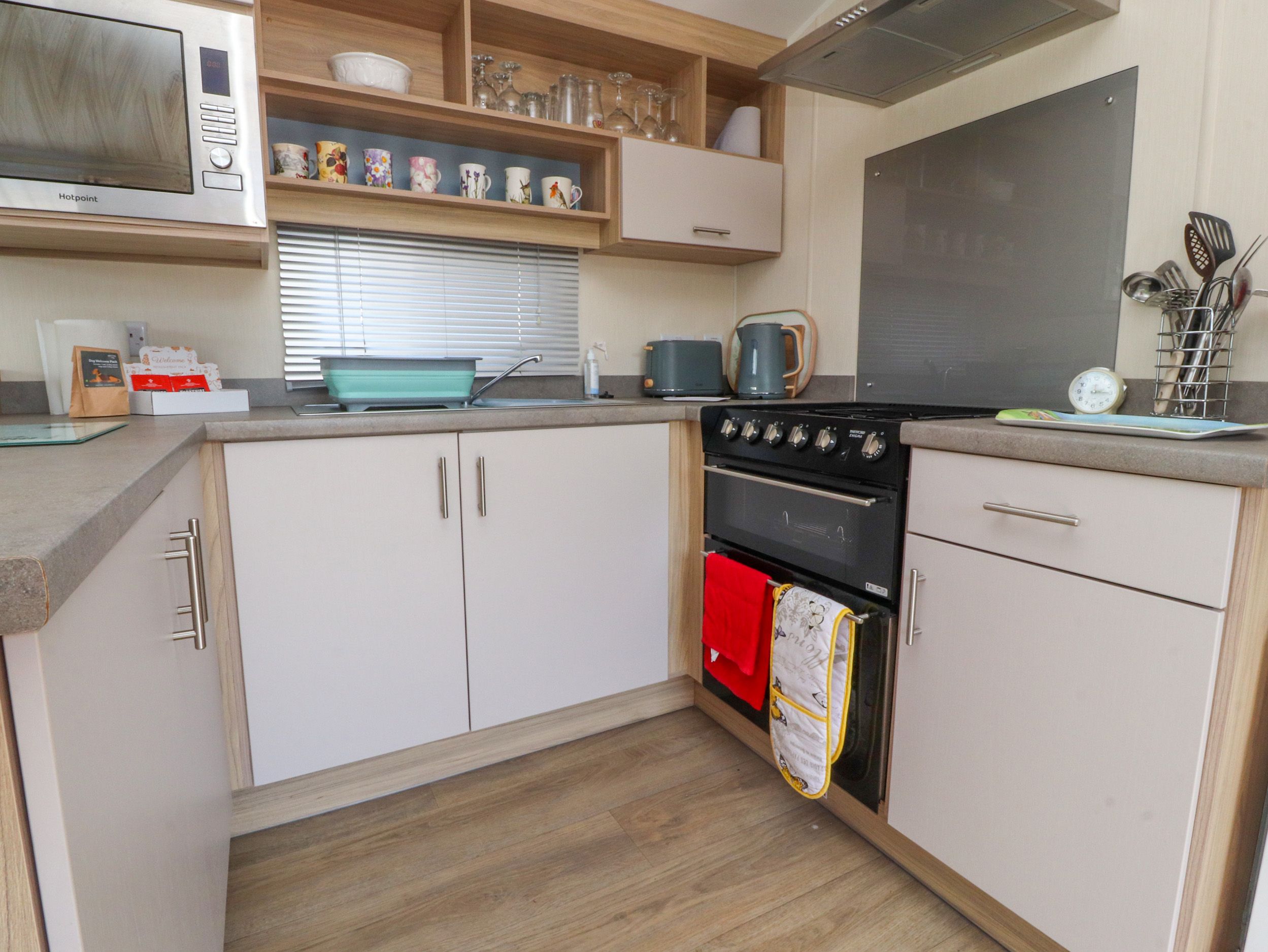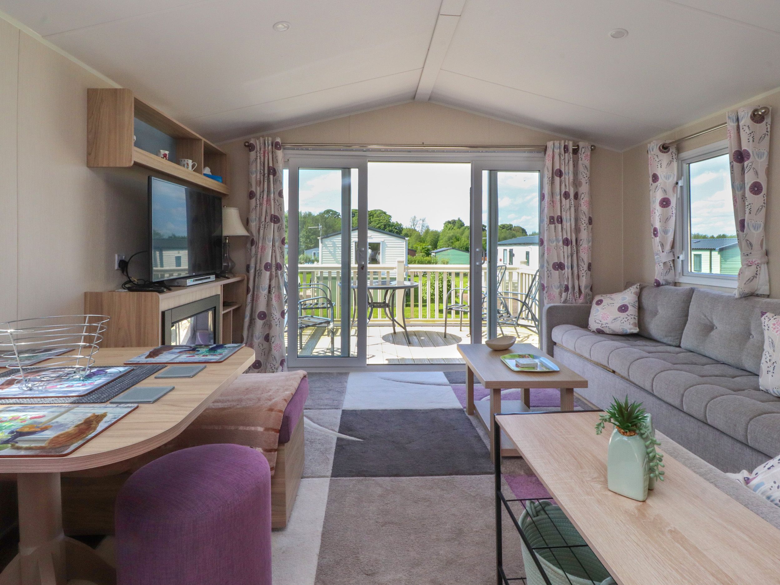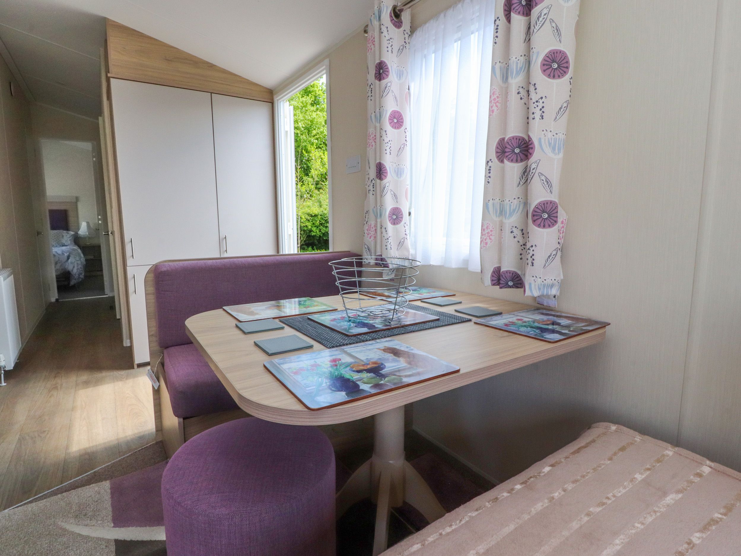 Holiday home The Willows-38, a single-storey lodge, consists of a kitchen with gas oven, hob, and grill, microwave, fridge/freezer, and washing machine, a dining room, and a sitting room with Smart TV, gas fire, and books. The bedrooms consist of a double and twin. There is a shower room with walk-in shower, basin, and WC. Outside, there is an enclosed side decking with furniture, a non-enclosed rear garden and off-road, designated parking for three cars. Two well-behaved dogs welcome. Sorry, no smoking. Shop 0.9 miles, pub 1 mile. WiFi, fuel, power, bed linen and towels inc. in rent. Return year after year to The Willows-38. Note: There are steps up to the property, please take care. Note: Washing machine is shared.
