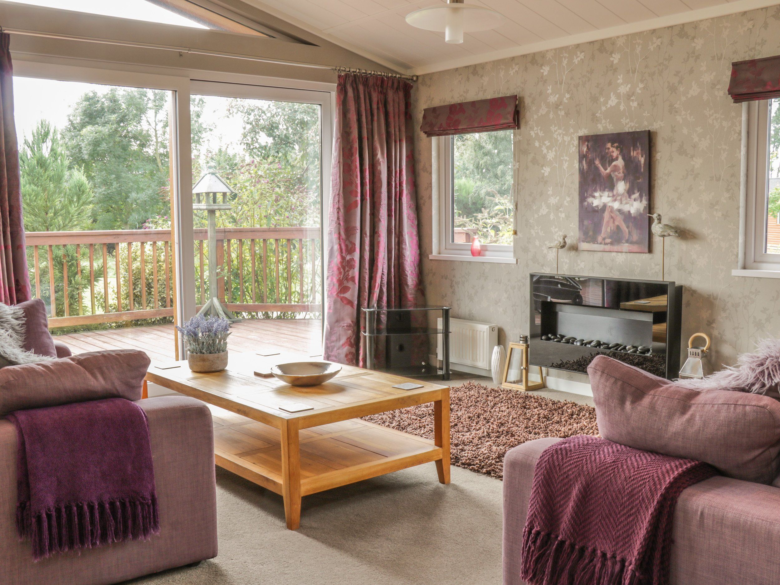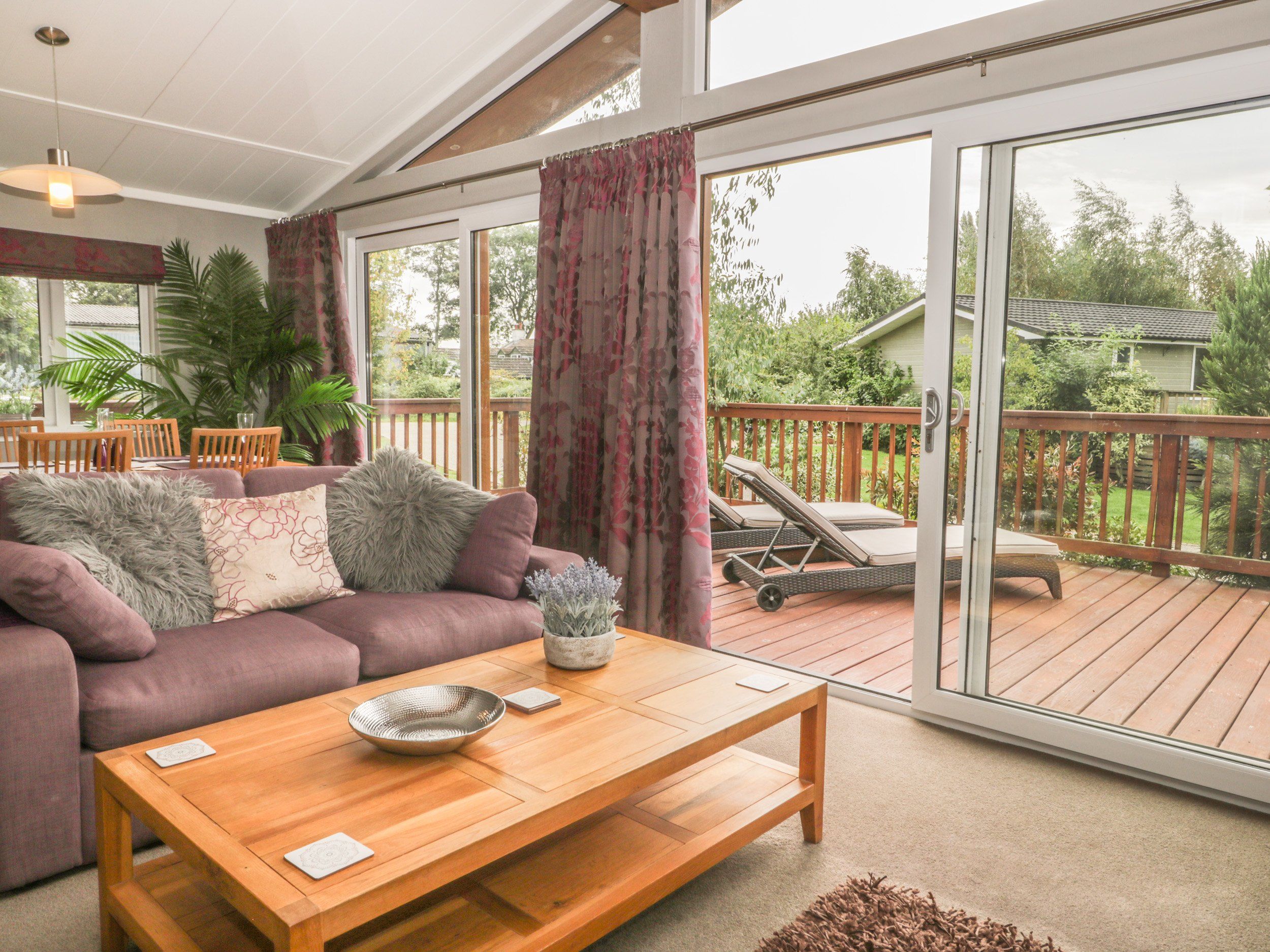 Holiday home Bulmer Farm Lodge is a detached property resting on the outskirts of Malton. This all-ground-floor accommodation comes with a double bedroom with en-suite shower and a twin bedroom, together sleeping up to four people and serviced by a bathroom with a shower over bath, basin and WC. Completing the interior is an open-plan living room with kitchen, dining area and sitting area with gas fire. Outside, there is ample off-road parking and a decked area with furniture. Bulmer Farm Lodge is a superb base for exploring the delights of this part of Yorkshire. Sorry, no children under the age of 12 and please note the children staying in the lodge need to be supervised at all times due to open beck and pond .
