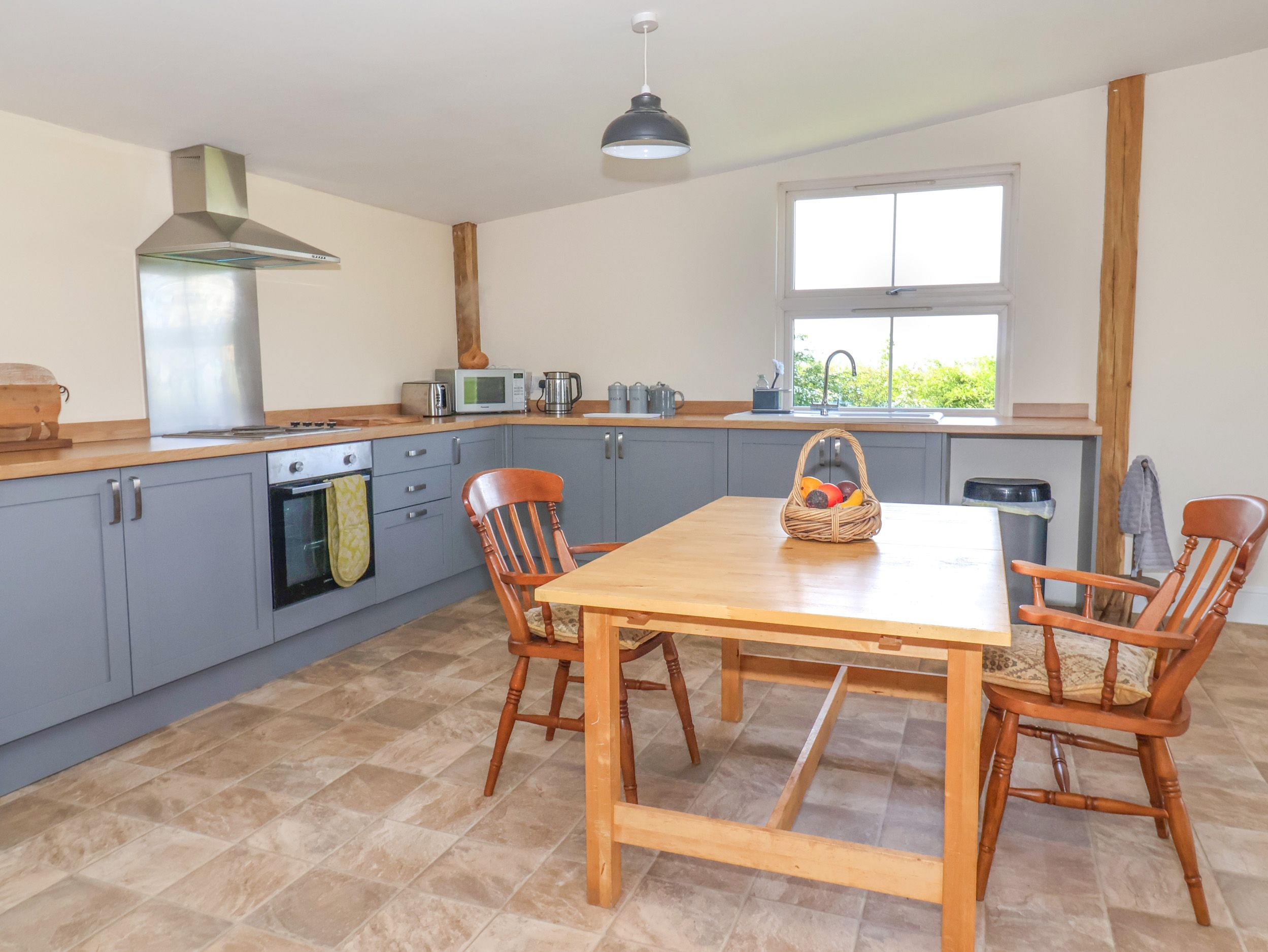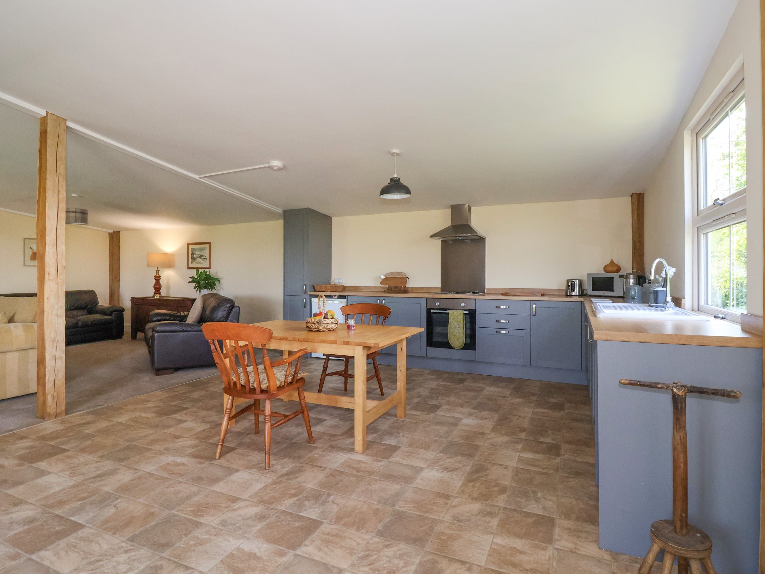 Holiday home Woodman's Lodge consists of an open-plan living space with a Smart TV, woodburning stove, Xbox 360, and a kitchen with dining seating for two, and amenities including a fridge, electric oven and hob, microwave, kettle, toaster, dishwasher, and cafetière. The bedroom is a king-size, serviced by a dressing room and a shower room with a walk-in shower, basin, and WC. Outside, there is a non-enclosed wraparound garden with lawn, patio, gravel, and furniture, and off-road parking for one car. Sorry, no pets and no smoking. WiFi, fuel, power, starter pack for woodburning stove, bed linen and towels are all included. You'll find the closes shop in 5.3 miles, and a pub in 0.9 miles. All of this and so much more with a stay at the welcoming Woodman's Lodge. Note: Lodge is within grounds of owner's home. Note: The garden is not enclosed. Note: No changeover on Fridays. This property has a good housekeeping bond of GBP150