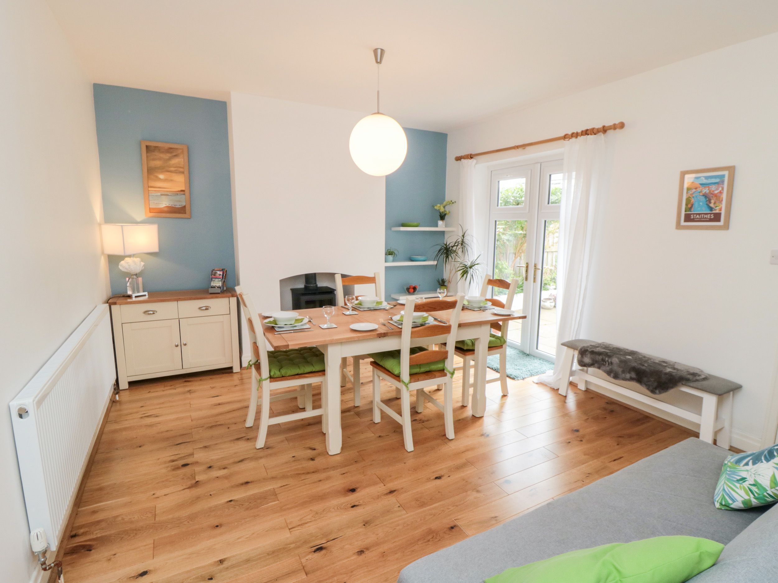 Amenities Gas central heating. Electric oven and hob, microwave, fridge, freezer, washing machine, dishwasher. TV, WiFi. Fuel and power inc. in rent. Bed linen and towels inc. in rent. Travel cot, high chair and stair gate available. Free public car park 0.1 miles. Enclosed front gravelled garden, enclosed rear garden with lawn, patio, and furniture. One well behaved dog welcome. Sorry, no smoking. Shop 0.1 miles, pub 0.2 miles, beach 0.4 miles. Please note: This property can only sleep up to 4 adults and 1 child due to insurance reasons.
