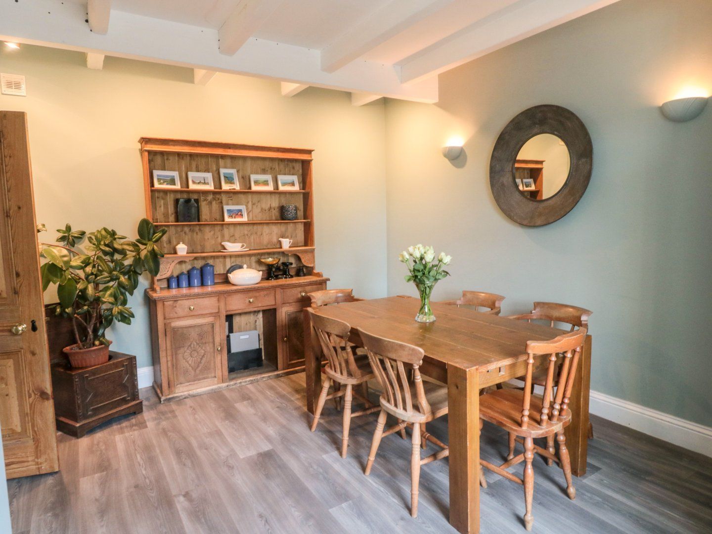 Gas central heating. Electric oven, ceramic hob, microwave, fridge, freezer, washing machine, dishwasher, Smart TV, DVD, radio/CD player, WiFi, selection of DVDs. Fuel and power inc in rent. Bed linen and towels inc. in rent. Cot and highchair available. Off road parking for 1 car. Small lawned front garden with furniture and BBQ. One well-behaved dog welcome. Sorry, no smoking. Shop and pub 1 min walk. Beach 1 mile.