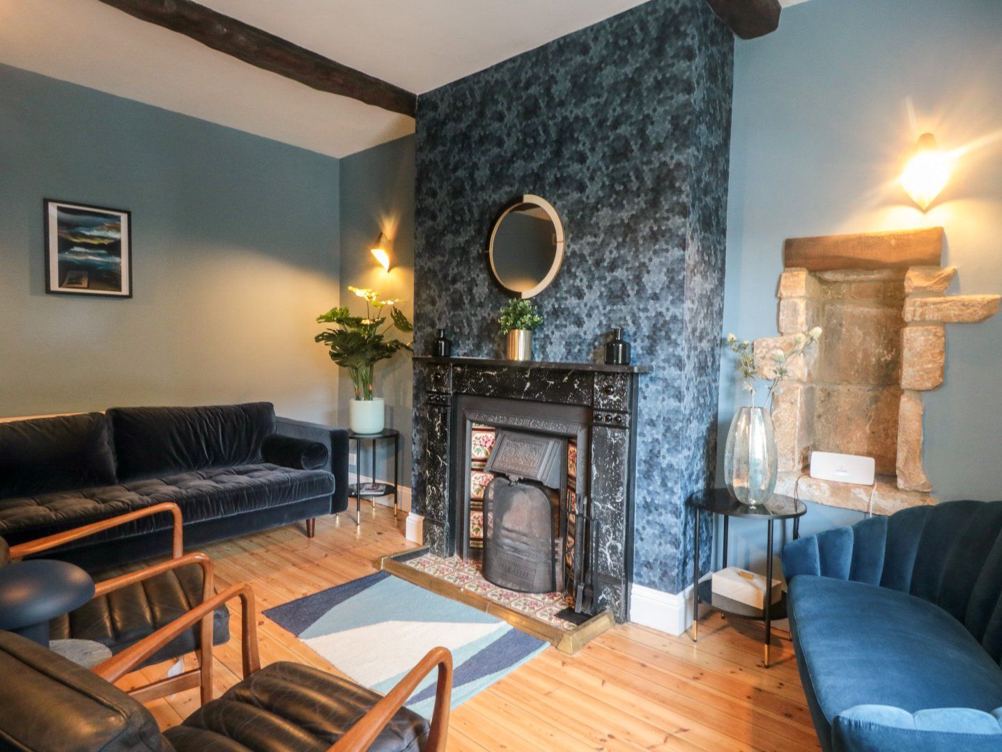 Three bedrooms: 2 x double with en-suite shower, basin and WC, 1 x twin with en-suite shower, basin and WC. Ground floor utility with shower, basin and WC. Fitted kitchen. Dining room. Sitting room with open fire.