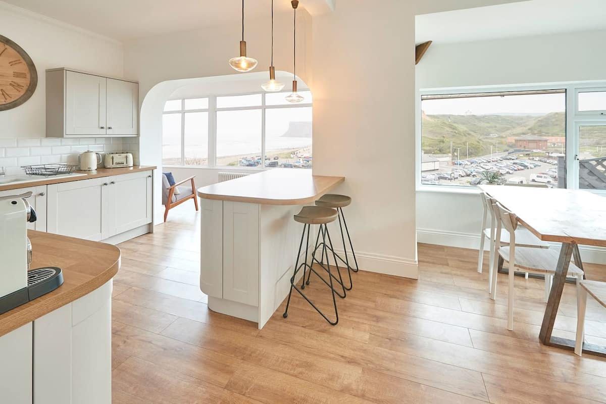 You'll be less than a five-minute walk from the glorious sands of Saltburn Beach at this home on the North Yorkshire coast, meaning it's ideally located for surf lessons, coastal walks, and hiking the Cleveland Way. It's also under twenty minutes on foot from the historic town of Saltburn-by-the-Sea, best known for its pier and charming tramway – it’s one of the oldest operating water-balance cliff lifts. When you're not trying the town's excellent bars and restaurants, make the most of the modern kitchen, perhaps taking your meal down to the garden for an alfresco dinner. The comfortable outdoor seating is also perfect for relaxing in the evening, watching the sun go down with a drink or two. Or simply take in the views over the beach, North Sea and Huntcliff from the sunroom – we think the vistas here are wonderful.