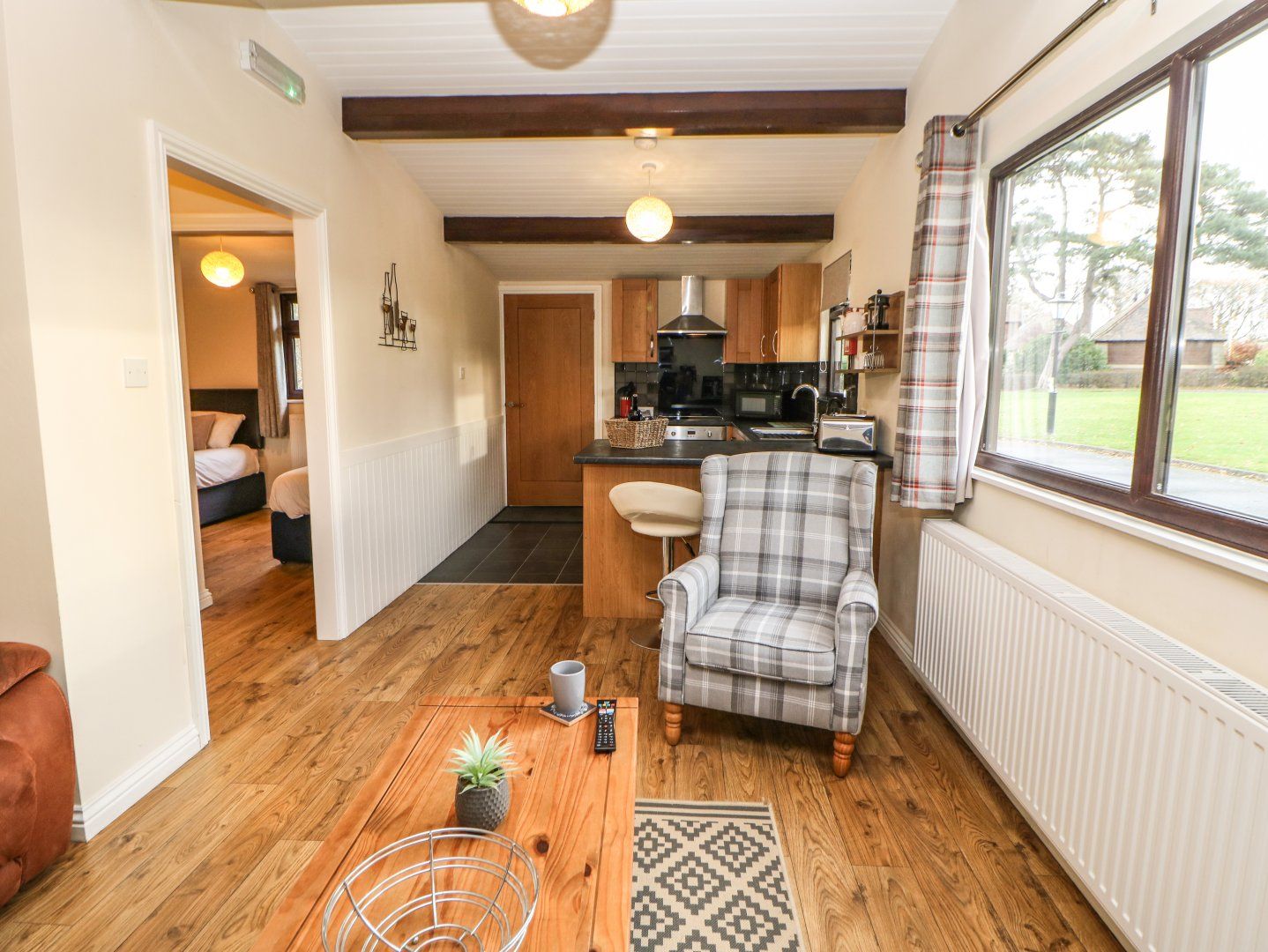 The property was in a lovely quiet setting, very clean with a well equipped kitchen.. The double bed matress was not very comfy nor the sofa in the lounge. You can walk through the woods to the town during the day. It would not be suitable at night as it is not lit. Our accomodation slept 4 but only had 2 chairs at the breakfast bar to sit at when eating so it needed a dining table and chairs. Eating your evening meal on your lap is not very practicle.
