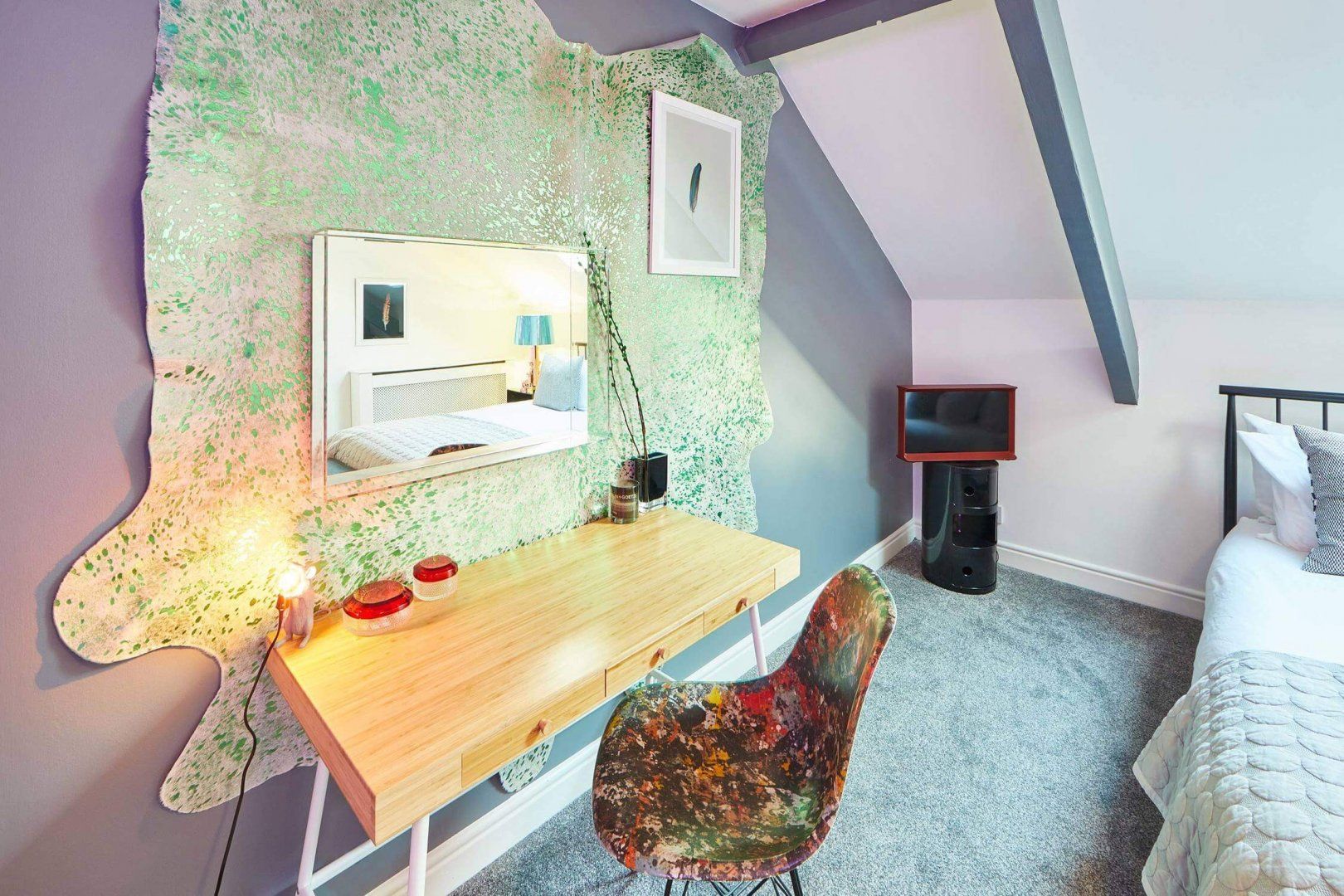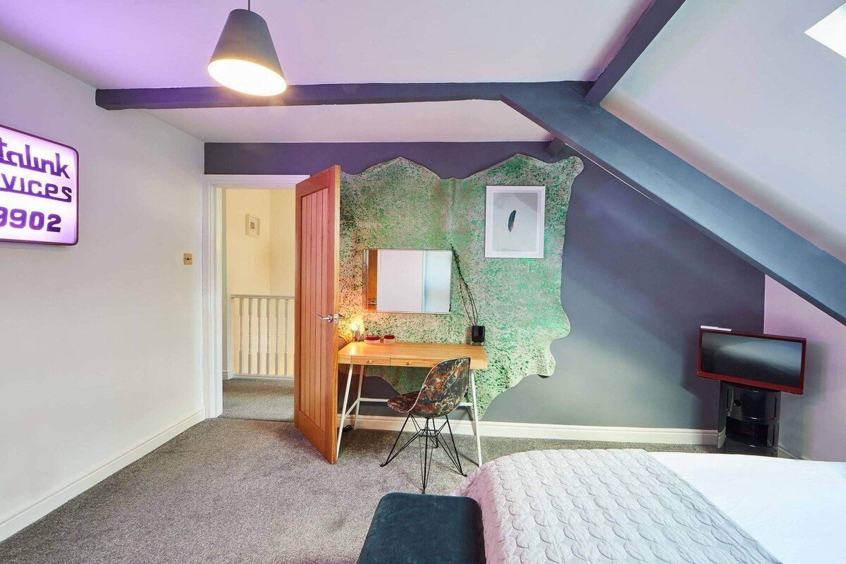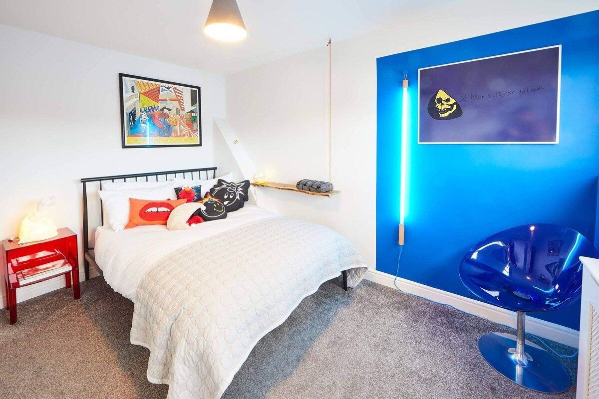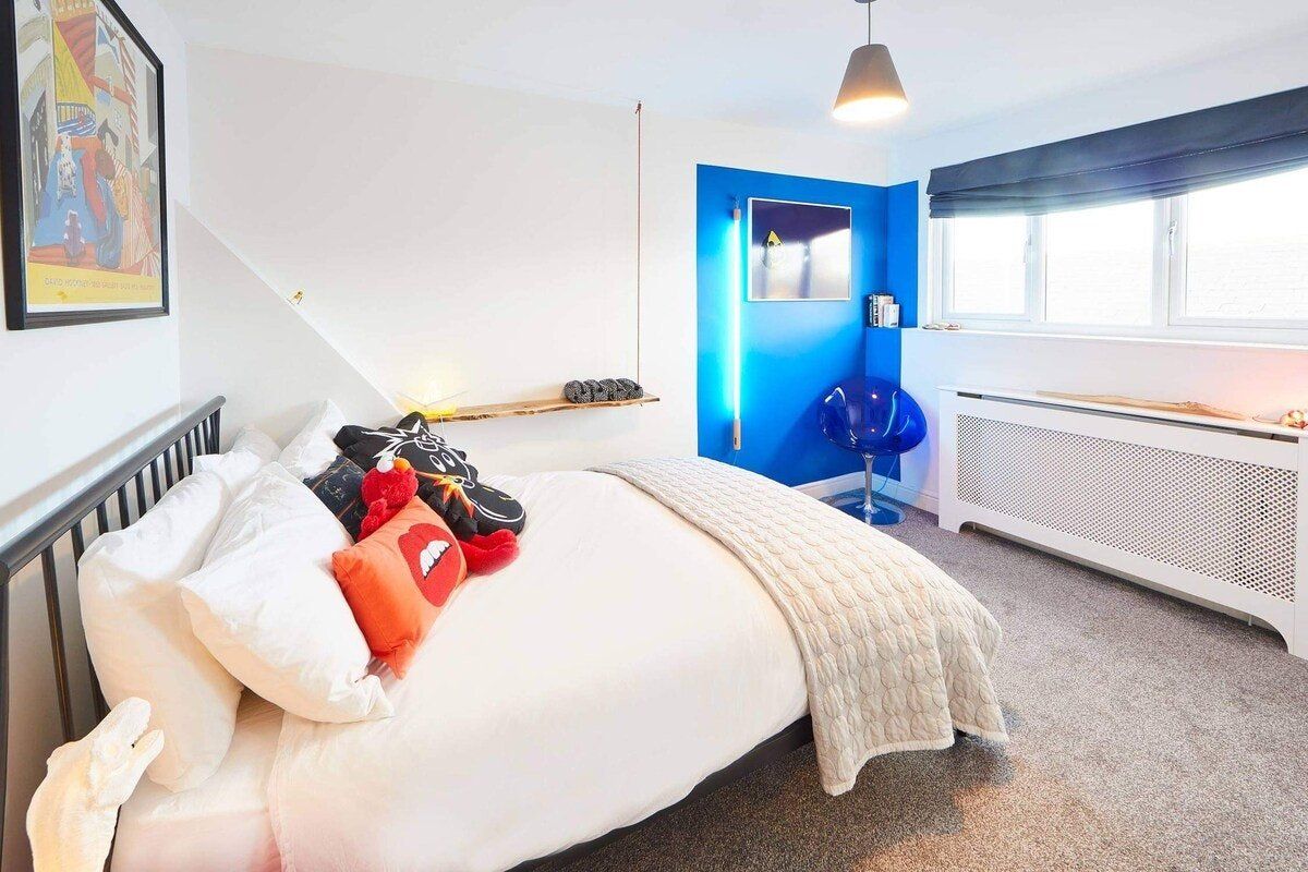 Uniquely decorated, this eye-catching two-bedroom home on Saltburn-by-the-Sea is perfect for couples or small families looking for a seaside retreat with a modern twist. Step into a vibrant and colourful living room dripping with style, with pop art adorning every space on the wall and a punchy pink fireplace. Keeping up the modern art vibe of the home, the kitchen is bright and lively, with a collection of plates covering the wall above the breakfast bar. Upstairs, the landing includes a cosy nook with a record player and impressive vinyl collection. The master bedroom’s exposed beams give a cottage feel but painted slate grey for that modern sheen. A skylight window above the queen-size bed will have you falling asleep under the stars. When you’re in the mood for exploring, discover Saltburn-by-the-Sea’s Victorian holiday vibe; tramways up the cliffside and fish and chips by the pier.