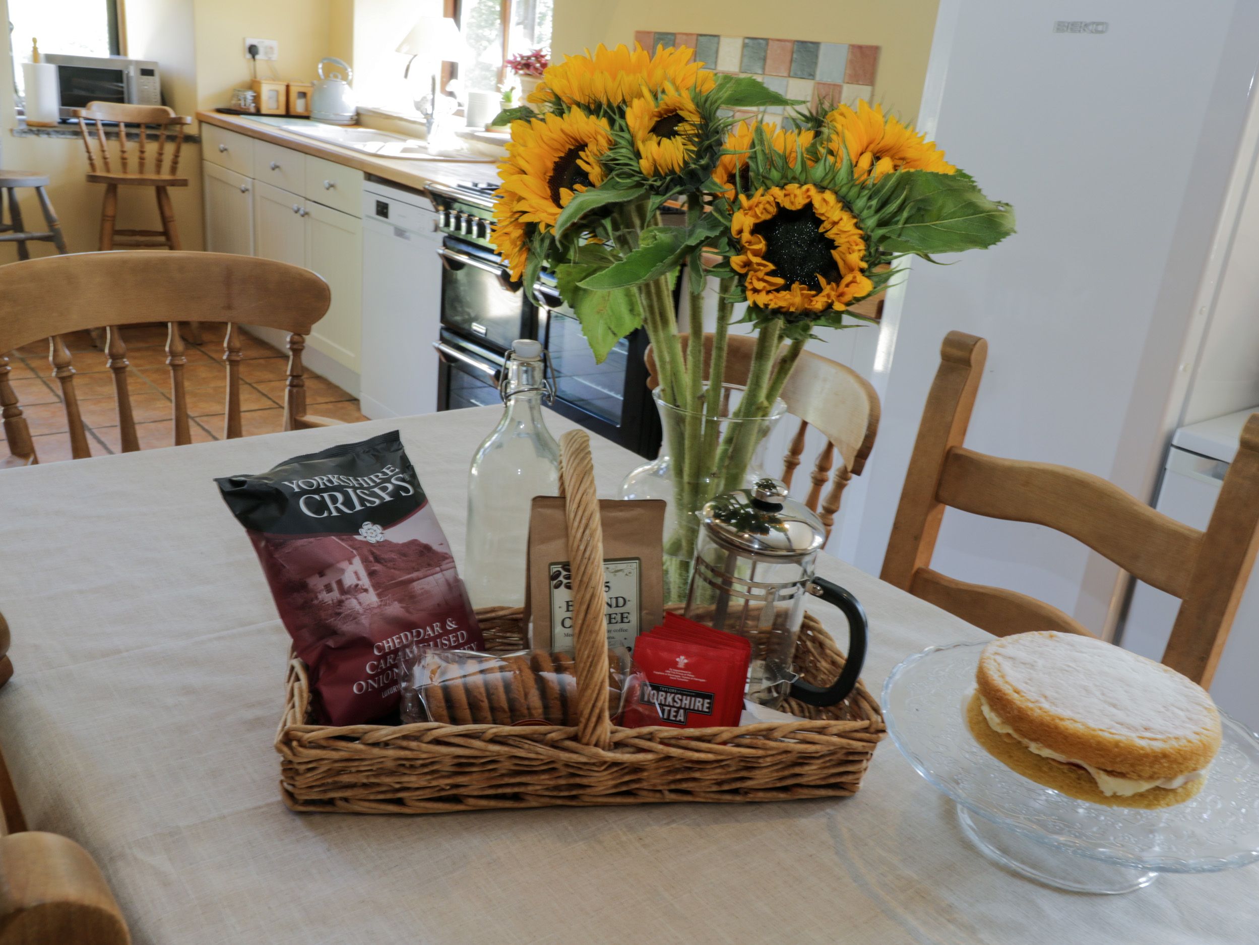 Amenities Oil central heating with woodburning stove. Rangemaster stove with dual fuel with 4 x electric ovens and gas hob, microwave, coffee machine, fridge, freezer, washing machine and dishwasher. 2 x TV with Freeview, DVD player, radio/CD player, Bose sound system and WiFi. Fuel, power and starter pack for woodburning stove inc. in rent. Bed linen and towels inc. in rent. Travel cot and highchair available on request. Private driveway with ample off-road parking. Garden with lawn, gravelled area, furniture, swing set and barbecue. One well-behaved dog welcome. Sorry, no smoking. Shop 3.2 miles, pub 3.1 miles. Beach 12 miles. Note: The property is accessed via a 400m farm track. Note: The helpful owners John and Trish, live on site in an annex and will be able to help with any queries you may have. Note: No stag/hen groups or similar. Note: During the Christmas and New Year period, the owner will provide a real Christmas tree
