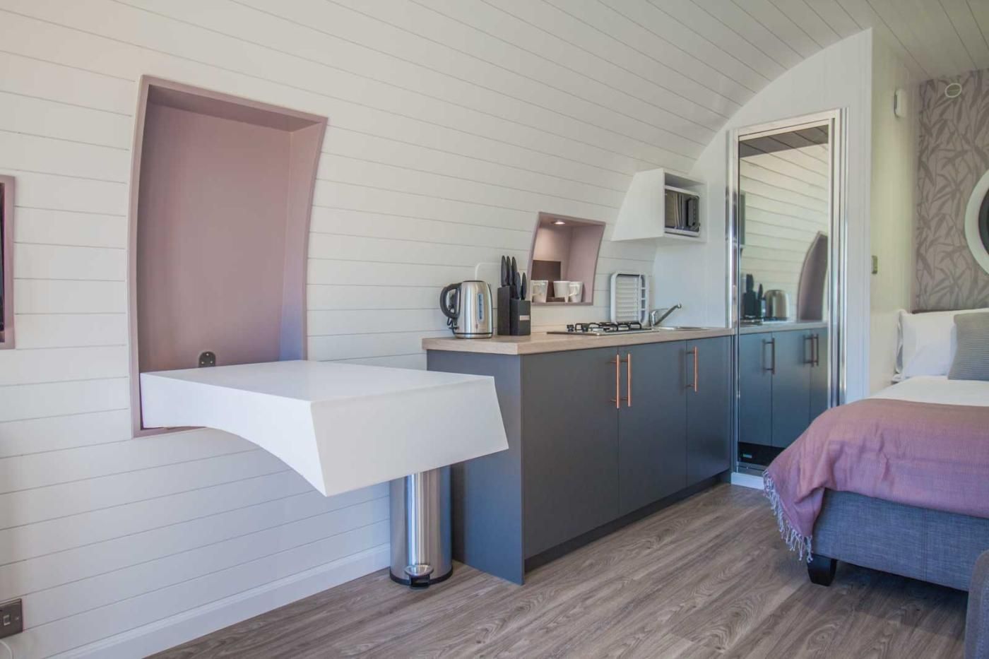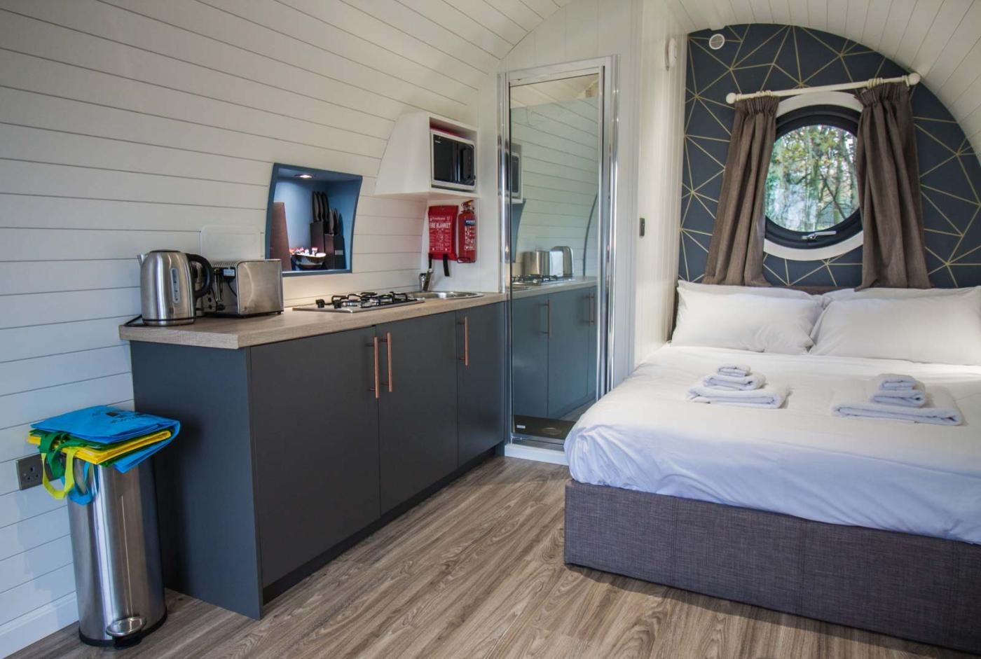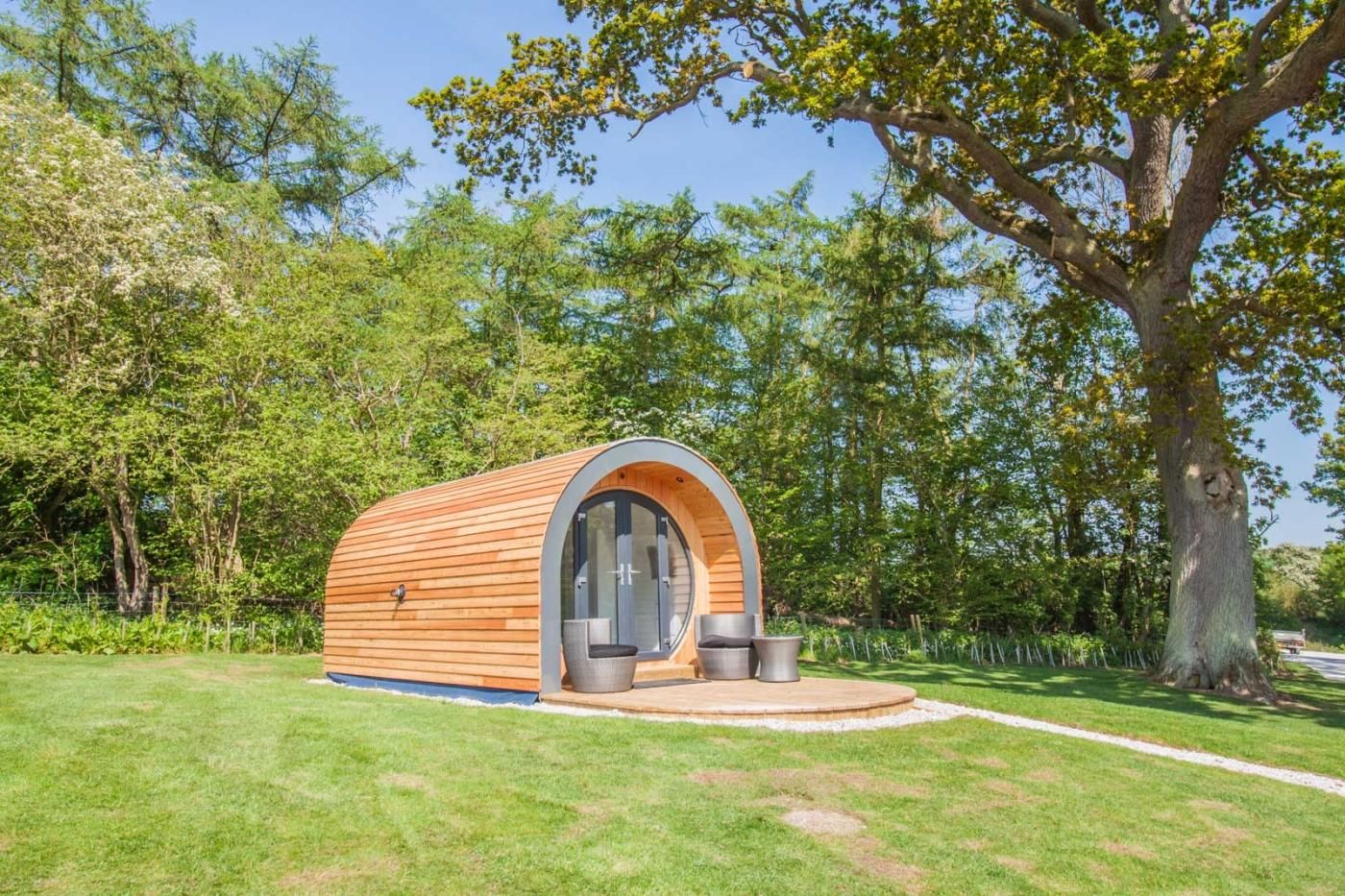 For a glamping escape in a peaceful and pretty setting, this beautifully crafted double pod is just the ticket.