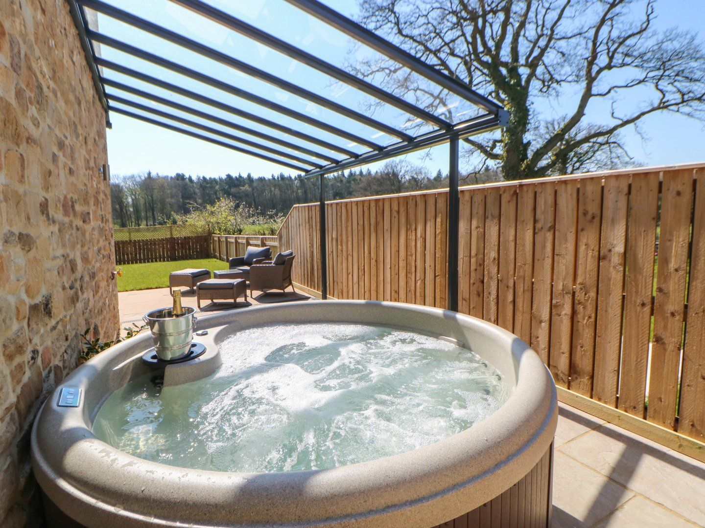 Holiday home Woodland View is a contemporary first-floor apartment sitting on the outside of Richmond in North Yorkshire. There is one king-size bedroom (zip/link, twin on request) with a TV, served by a shower room. The property also boasts an open-plan living space with a kitchen, dining area and sitting area. Outside there is ample off-road parking and a private lawn and patio garden with furniture and a hot tub. Woodland View is a super choice for a romantic escape to Yorkshire. Please note: This property does not accept check-ins on a Thursday.