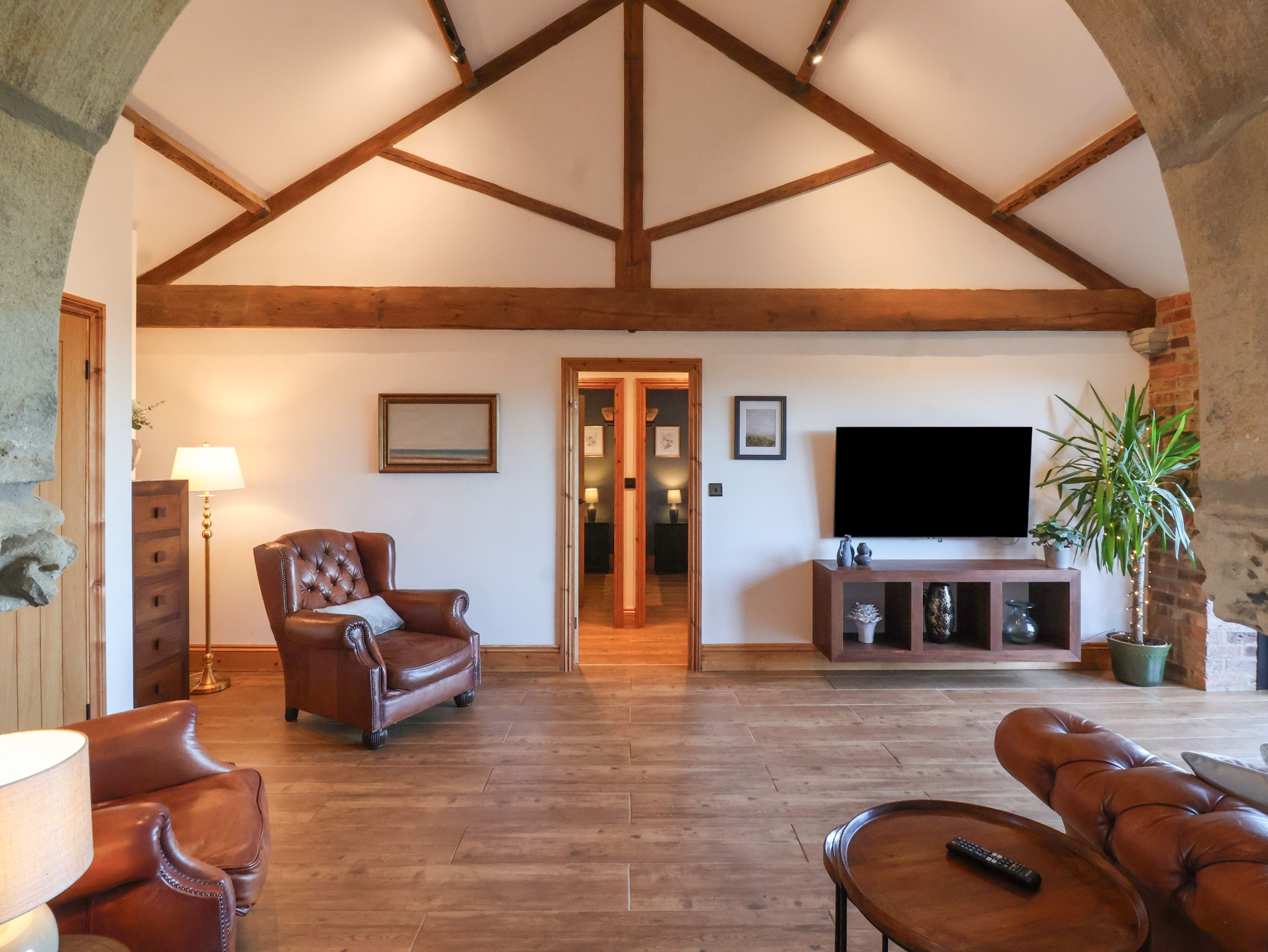 Oil underfloor heating. Combi microwave/oven and electric hob, fridge, dishwasher, kettle, toaster. Smart TV and WiFi. Fuel and power inc. in rent. Bed linen and towels inc. in rent. Off-road parking for 3 cars. Enclosed rear patio with furniture. Two well-behaved dogs are welcome. Sorry, no smoking. Shop 2.9 miles, pub 1.1 mile. Please note: During July and August 2025 the property only accepts 7 night bookings