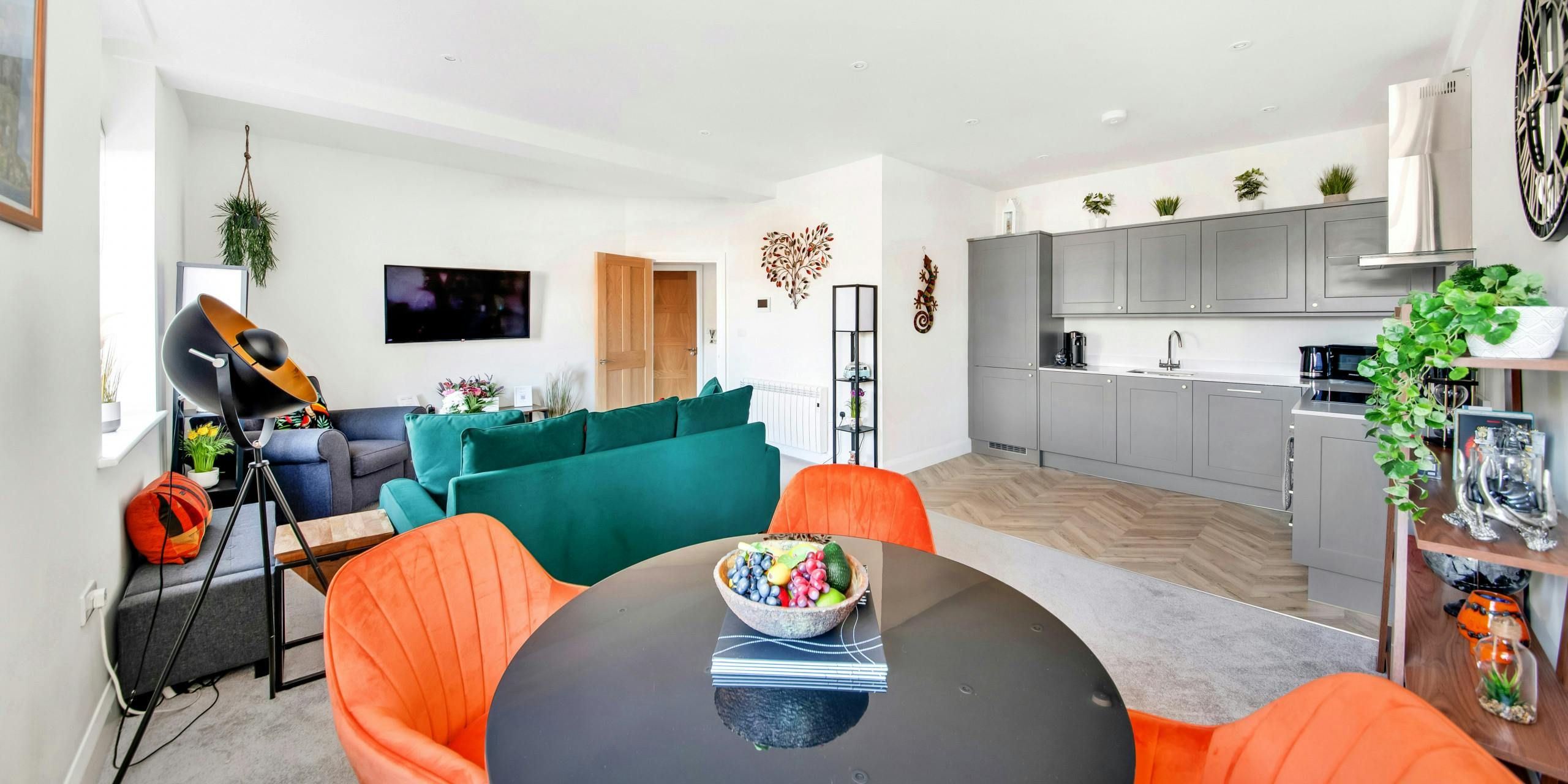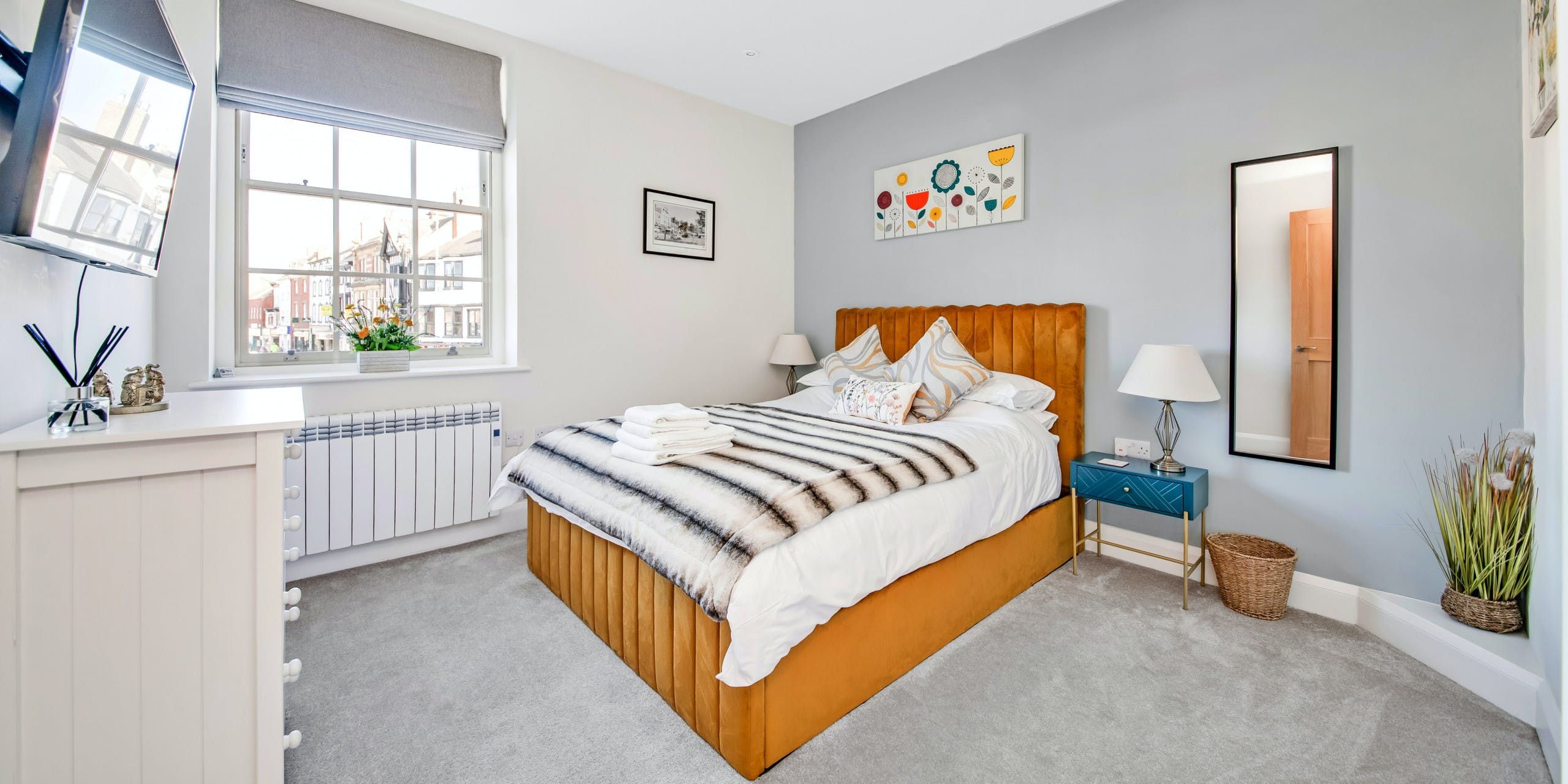 Home truths: *This home sleeps three guests, with the last guest sleeping on a double sofa bed in the lounge space. If you’d like ample space for socialising, we’d recommend this home for two. *There is one allocated private parking outside this home. However, the parking area is by the bins and it isn't the most inspiring to look at. *You’ll need to climb some stairs to reach the entrance of the apartment. It won't be suitable for guests with limited mobility. *This apartment is in the centre of Ripon and overlooks the main square. Noise is to be expected here, and