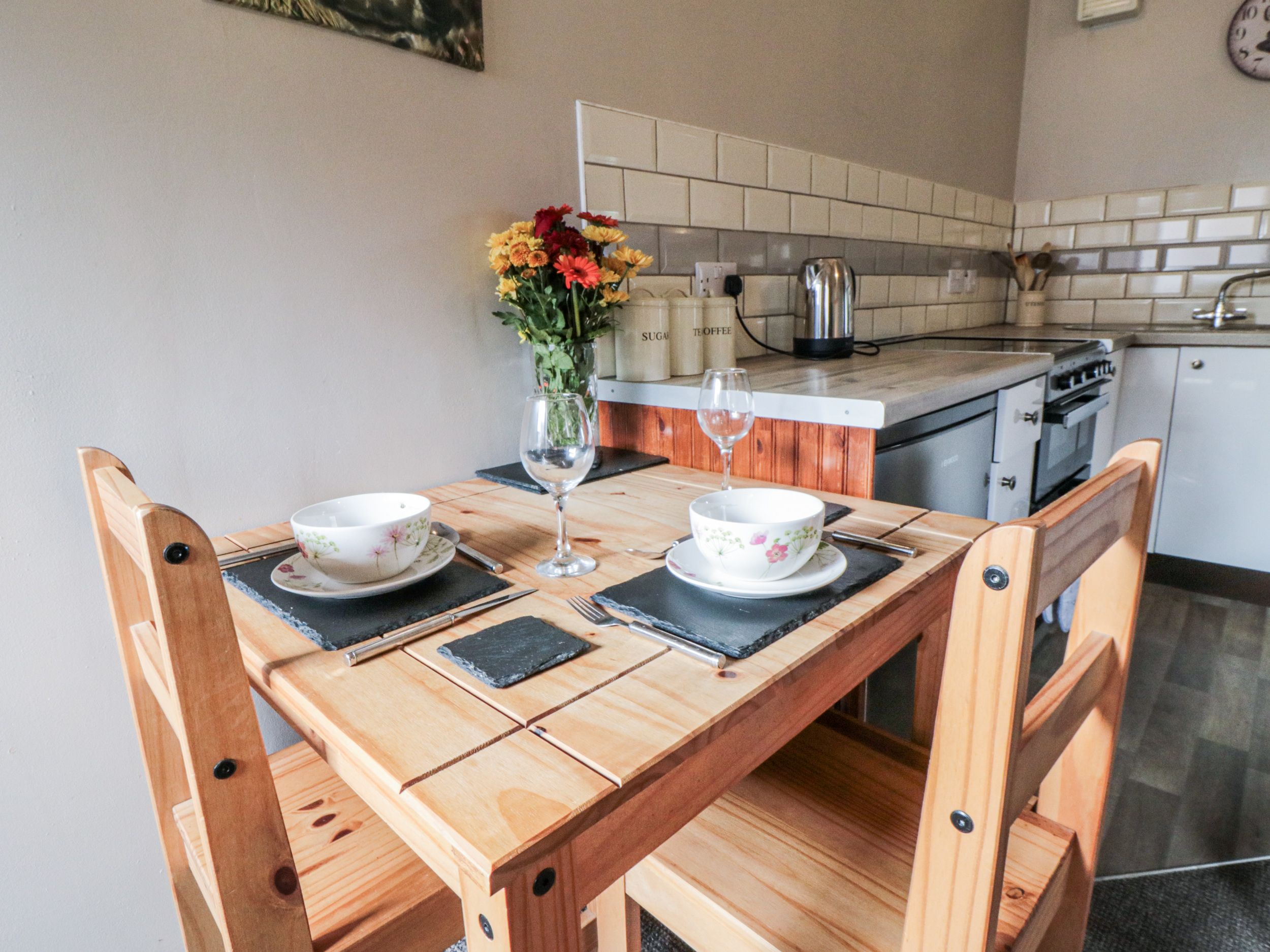 A quaint little cottage, sadly our stay was spoilt due to inaccurate photos of property windows on Sykes website. Unable to see outside from kitchen/lounge and bedroom due to frosted glass in windows. Sykes very unhelpful. Poor outside space and sitting area compromised due to hot tub taking up space