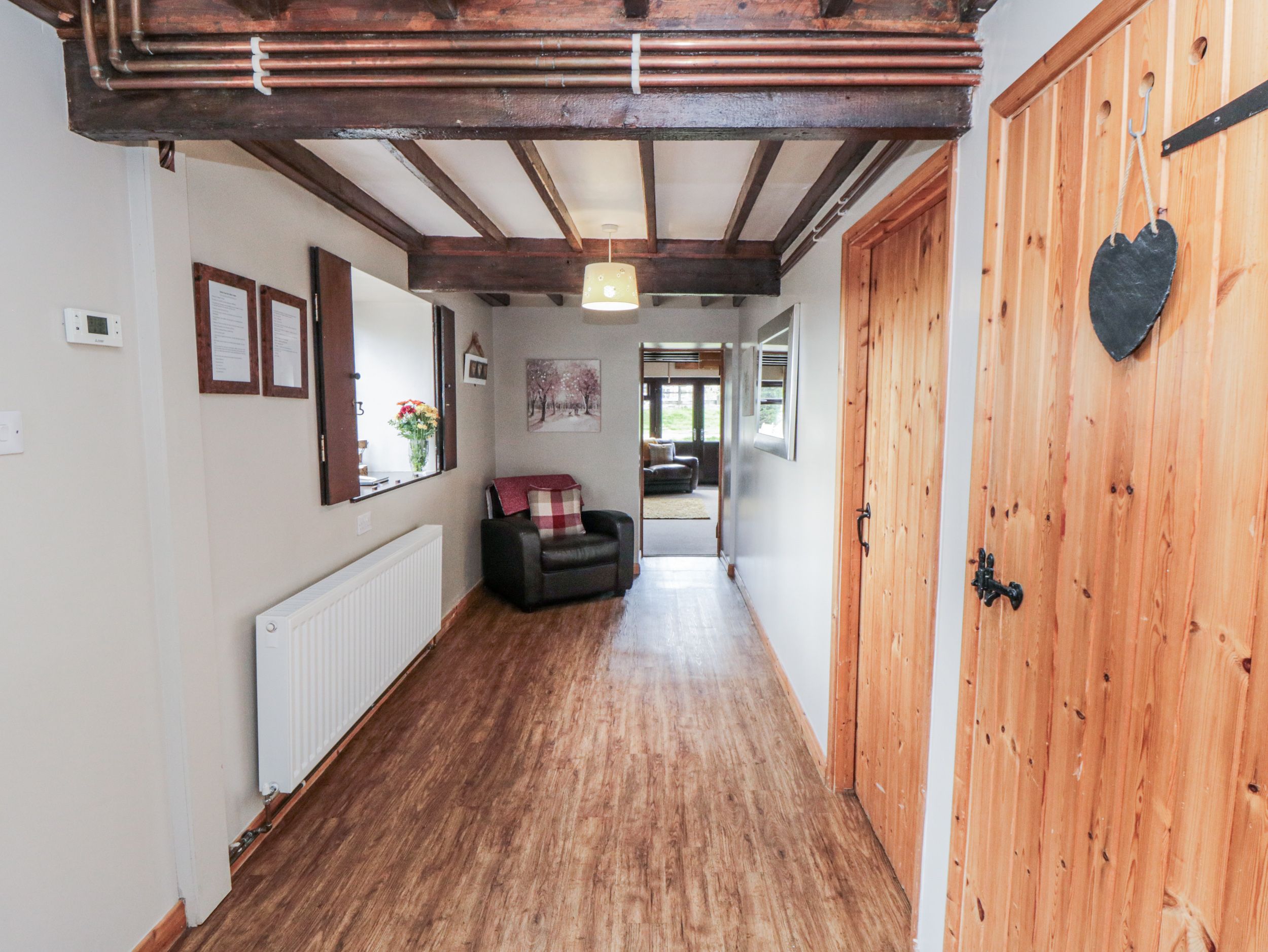 Amenities Renewable air source heating system with starter pack for woodburner. Electric oven and ceramic hob, microwave, fridge, washing machine, dishwasher, TV with Sky Freeview, fibre WiFi, selection of books, games and DVDs. Fuel and power inc. in rent. Bed linen and towels inc. in rent. Lockable bike storage. Travel cot and highchair. Off-road parking. Small gravelled area with rear garden and hot tub. Sorry, no pets and no smoking. On-site honesty shop selling a plethora of food and grocery items, household essentials, kindling, logs and BBQ items. Shop 4 miles and pub 1.5 miles. Note - Check in after 3.00pm - Checkout before 10.00am . Please Note - Between April - September this property accepts either 7 night bookings from a Friday or short break arriving on a Monday or Friday