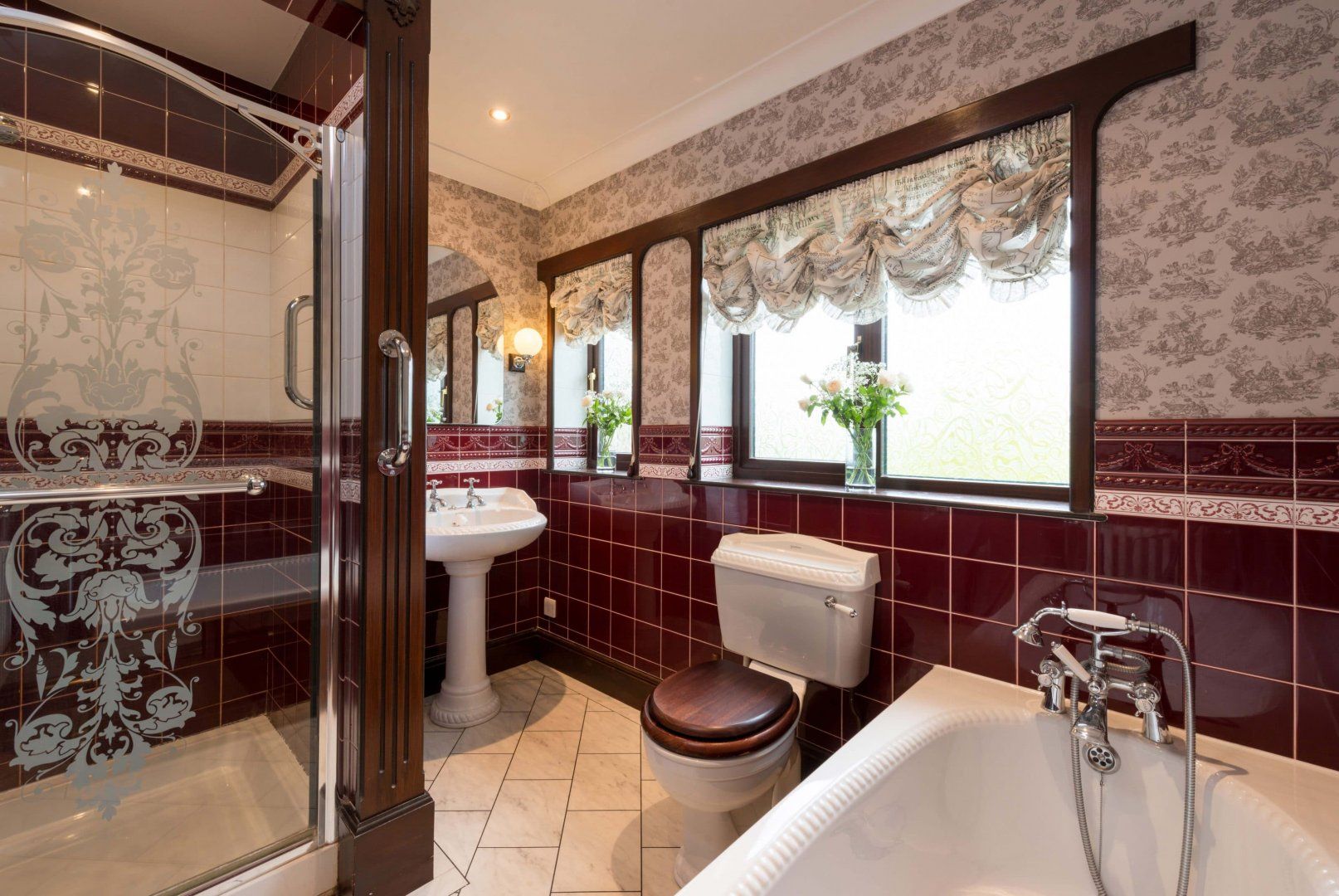 There is a smart ground floor double bedroom with views over the garden and also a ground floor bathroom with bath and shower attachment, separate shower cubicle, WC and hand wash basin.