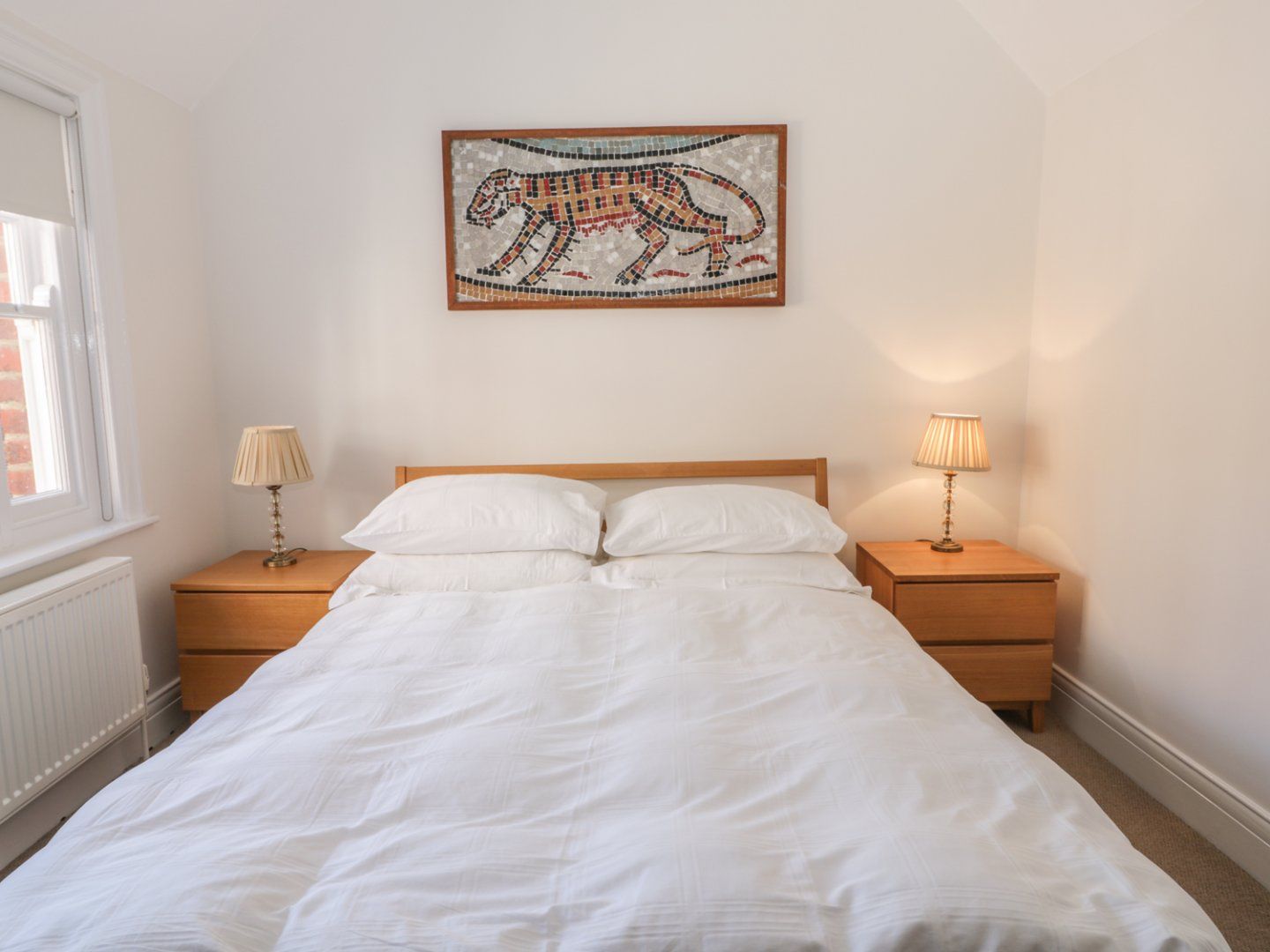Great flat on the top two floors of the former sea captains house. Well converted, retaining original fireplaces and tiles throughout and well equipped. Has its own entrance at the side of the house, leading to hall on the ground floor and space to leave sandy walking boots! Good living space - living room with two 3 seater sofas, coffee table and TV with cable channels. Through kitchen dining room, with very well equipped kitchen, including dishwasher and washing machine. Two bedrooms face the front of the house, one on top floor at the back has views towards the bay over the rooftops of other houses.