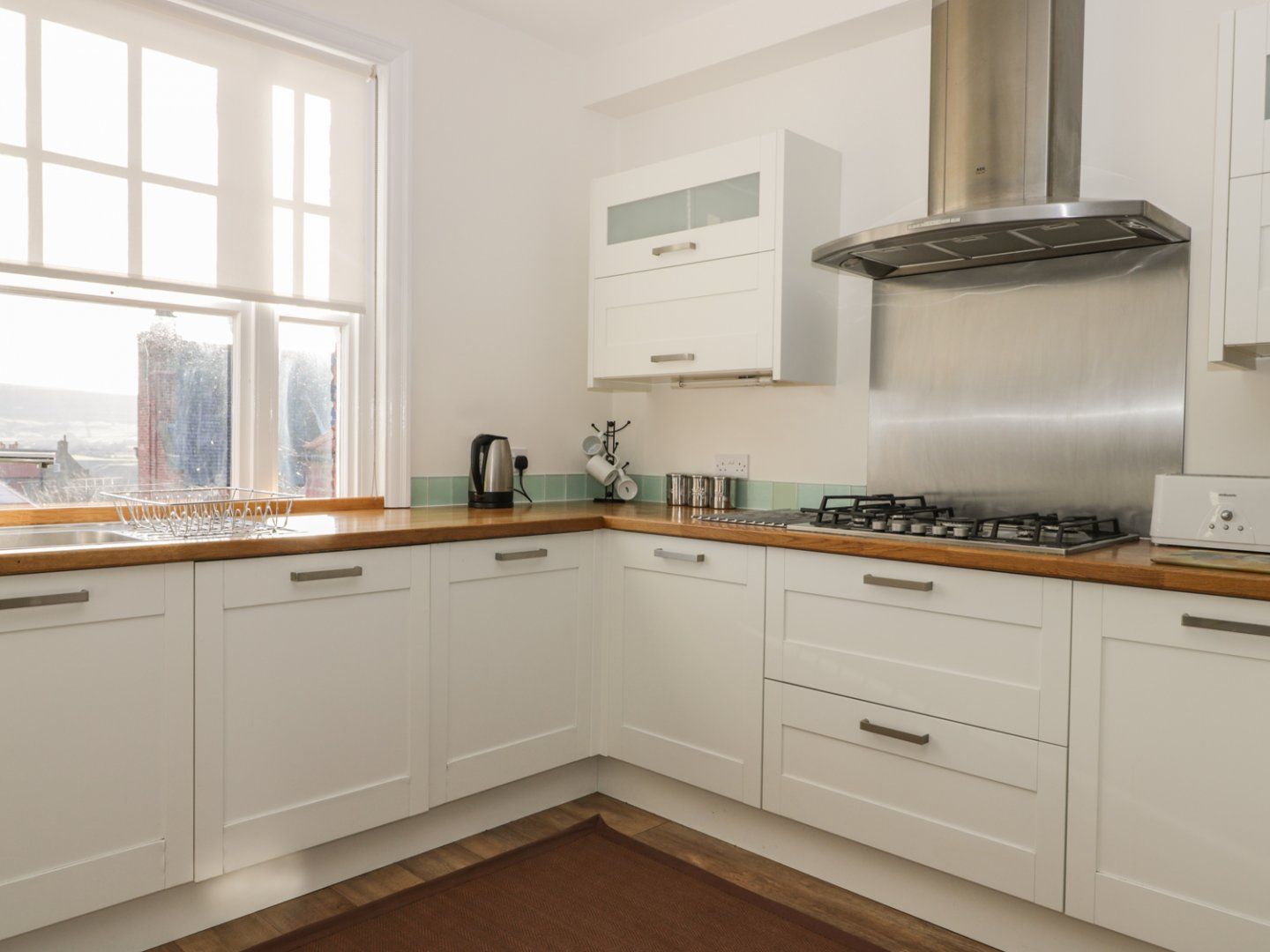 Holiday home Set over the first and second floors of a semi-detached Victorian villa, this holiday accommodation is situated in an enviable position at the top of Robin Hood's Bay. With light and airy living areas that have been sympathetically renovated, the property retains traditional period features such as beautiful marble and cast iron fireplaces, high ceilings and stained glass windows. With four bedrooms, two double and two twin as well as a large kitchen with dining area and cosy living room. Electric oven, gas hob, microwave, fridge/freezer, washing machine, tumble dryer, dishwasher. 2 x TVs with FreeSat, DVD player, WiFi. Fuel & power, bed linen & towels inc. in rent. Travel cot & highchair, no stairgate. Roadside parking outside property (first come, first served basis). Private, lawned rear garden, with furniture, BBQ & storage for bikes. Sorry, no pets & no smoking. Shop & pub 3 mins walk. Note; This property may not be able to accommodate bookings made within 14 days of arrival.