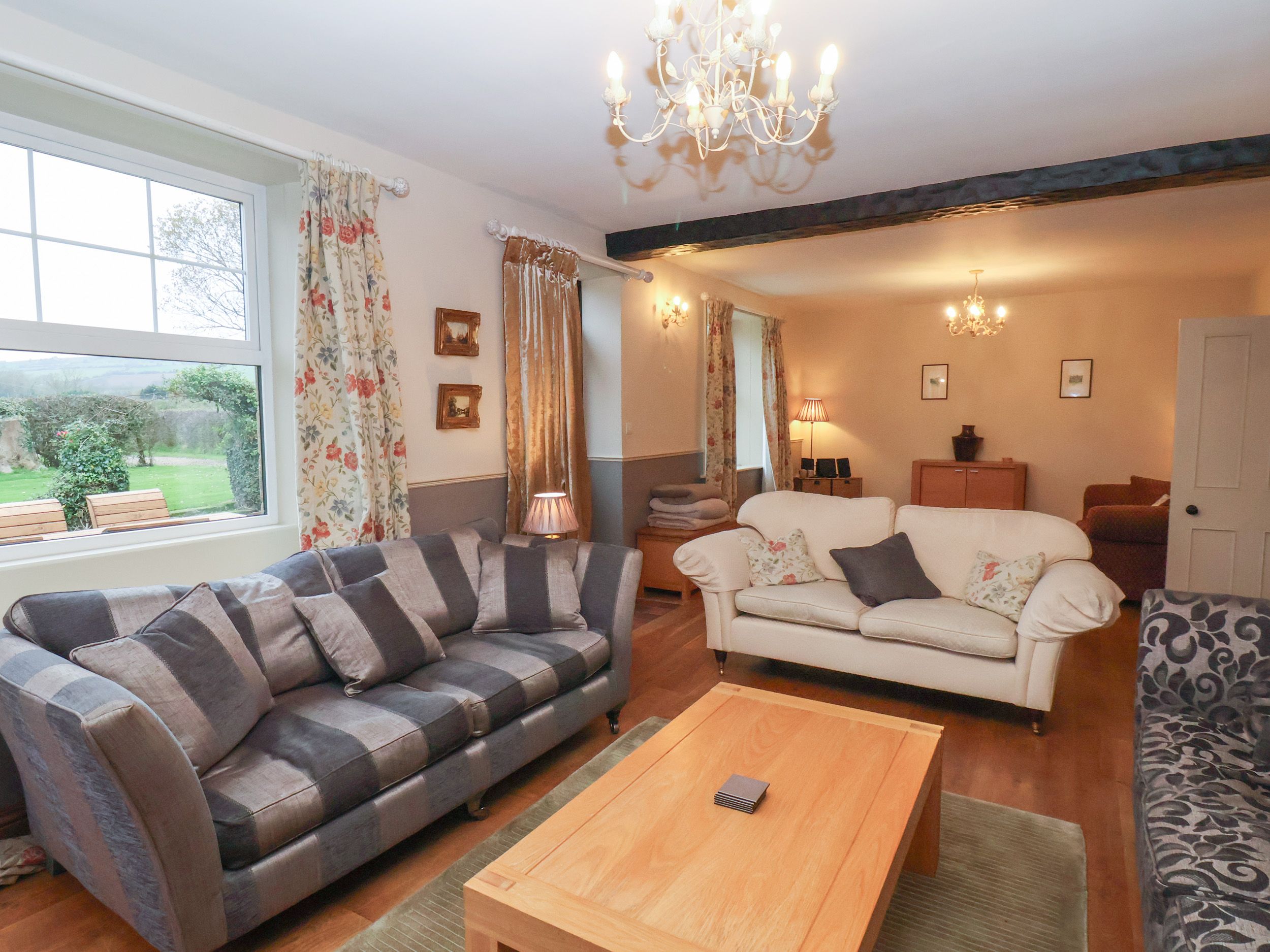 A fabulous old farm house full of character but bang up to date with good extremely well appointed kitchen c/w induction hob and utensils for every occasion.. We stayed here with 6 adults and 4 children and the 6 lovely bedrooms suited our needs. The winding drive down from the main road is worth it and to have the sea only 5 minutes walk away is another feature. There are fine views out of every window and the garden was ideal for us. We would recommend this Farmhouse to everybody.