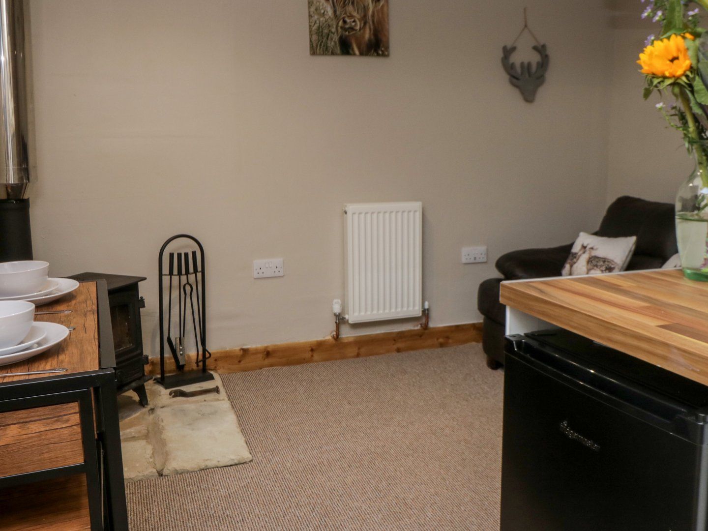 Amenities Electric central heating with woodburning stove. Electric oven and hob, microwave, fridge, TV and fibre WiFi. Fuel and power inc. in rent. Bed linen and towels inc. in rent. Small private garden with lawn. Off-road parking available. Patio area with furniture. Sorry, no pets and no smoking. On-site honesty shop selling a plethora of food and grocery items, household essentials, kindling, logs and BBQ items. Shop 4.4 miles, pub 2 miles