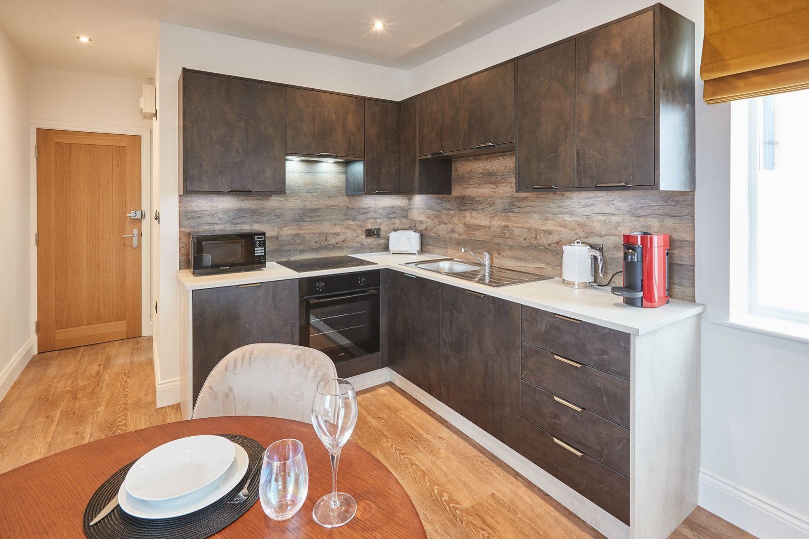 Perfect for couples and solo travellers, this stylish studio is the ideal coastal escape in Saltburn-by-the-Sea. After getting a good night's sleep in the comfy kingsized bed with its tactile golden velvet throw, enjoy a full English breakfast at your dining table. Then maybe start your day with a trip next door and get some TLC at the podiatry, skin and beauty clinic.