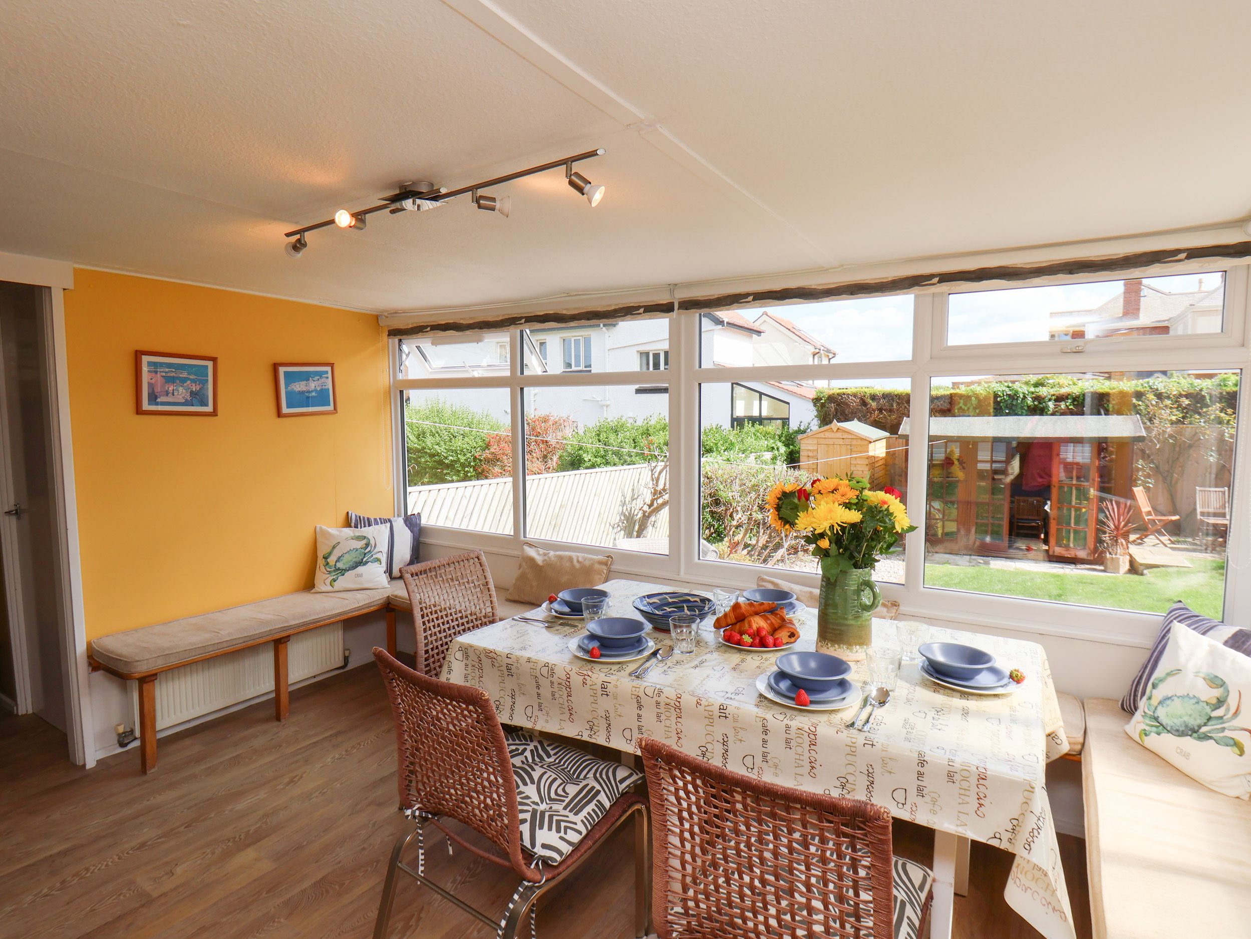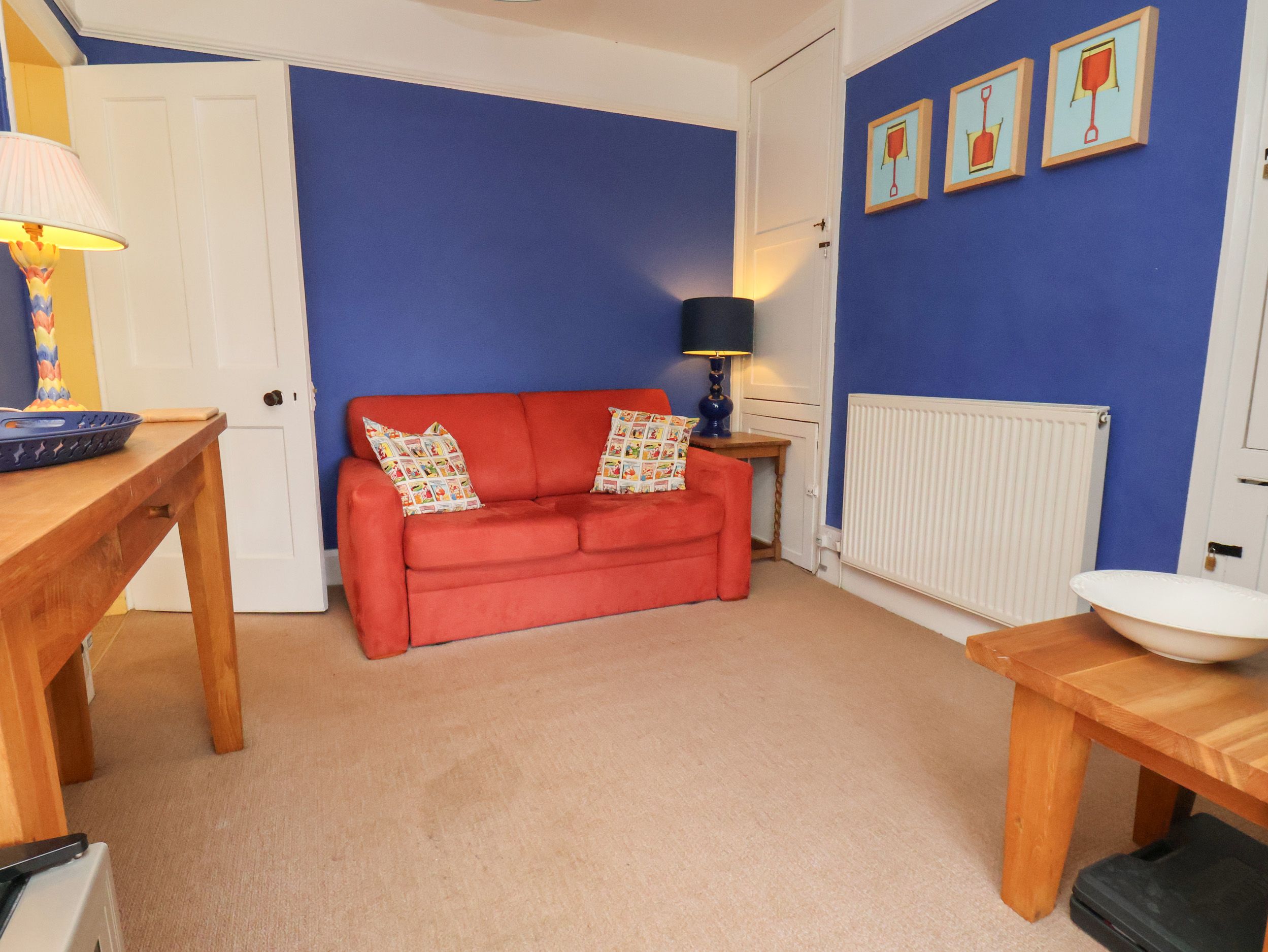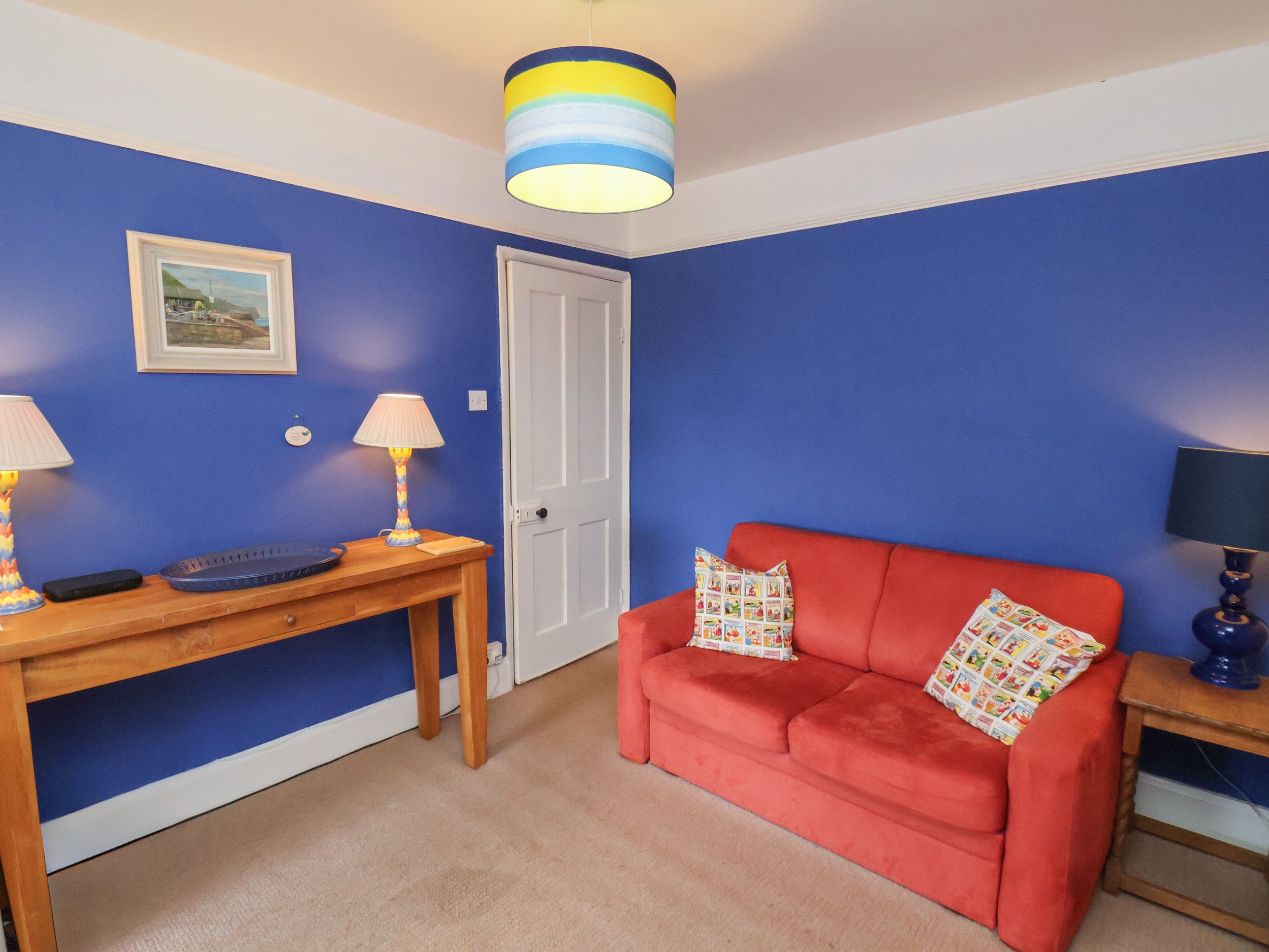 On the ground floor is a sitting room with open fire (wood & coal), TV & DVD player, bay window with sea views, Galley kitchen with fridge, electric hob with oven, microwave and dishwasher, charming and cosy snug with seating, radio/CD player – console table for preparing cocktails plus a wine cooler! There is also a super sun room, overlooking the rear garden, with dining table and chairs. Downstairs is a cloakroom with WC and wash basin, utility room with washing machine and tumble dryer and a boot room with fridge/ freezer and small table with chairs.