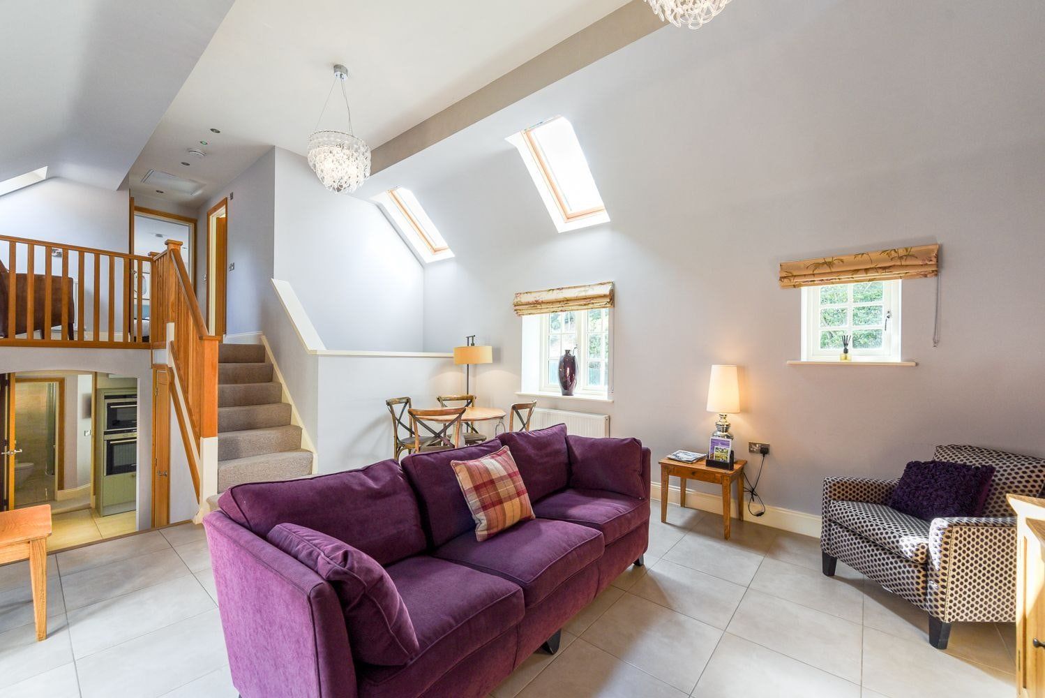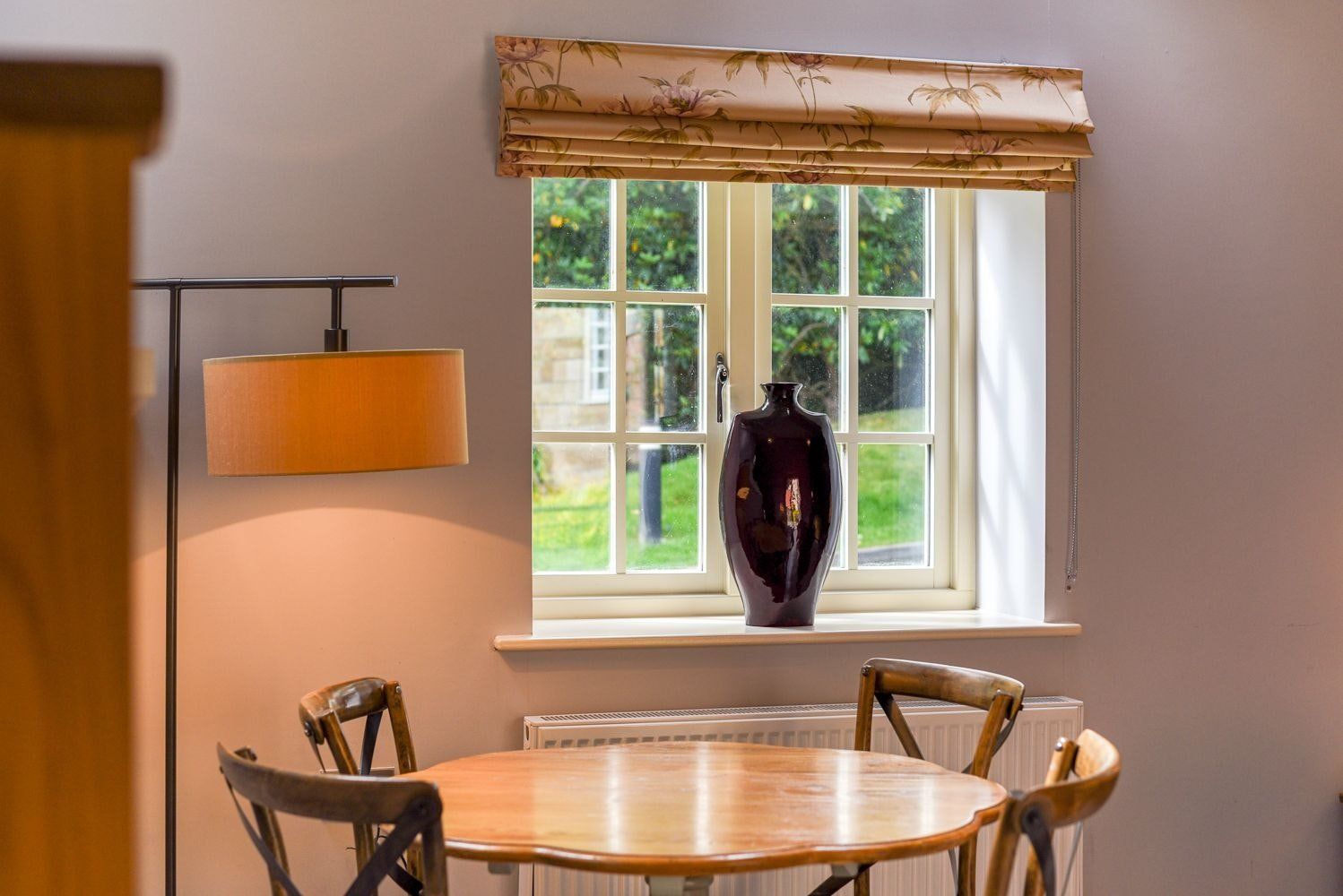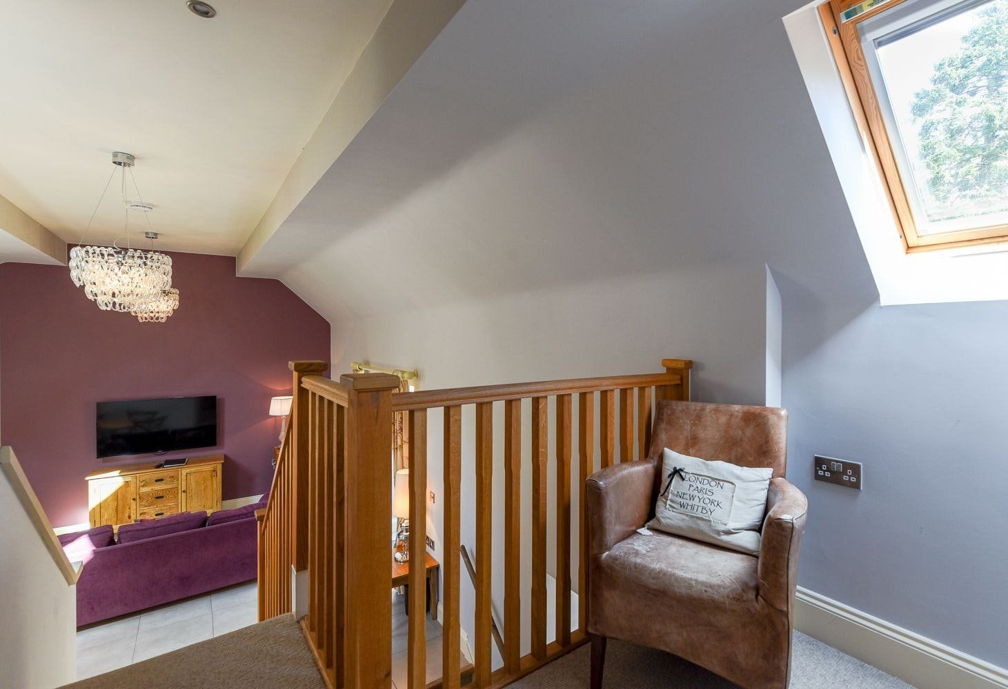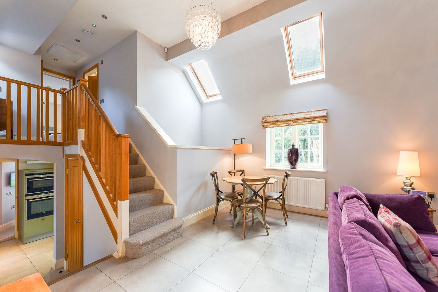 With multiple skylights, this living area gets a breath of natural light and the greenery that surrounds the property. We love the bold use of purple – from the plush sofa to the tasteful TV wall – while the small wooden dining table is perfect for meals together. Step downstairs into the painted green kitchen and find it roomy and well-equipped, ideal for all your self-catered meals. On nice days, enjoy lunch outside on the patio set, overlooking the grounds, and soak in some sunshine. You’ll probably want to head down to the beach too – Sandsend Sands is just a fifteen-minute walk from home. Spend the rest of your time exploring the nearby Whitby and its literary history, beautiful coast and delicious fish and chips.