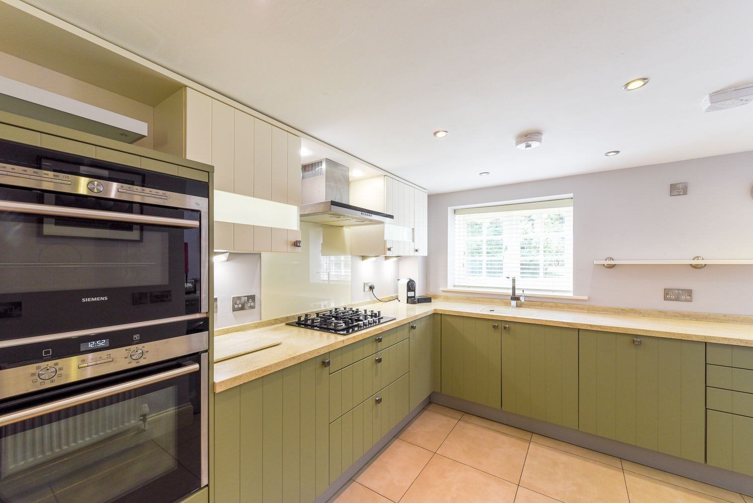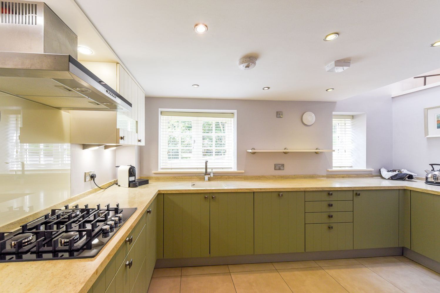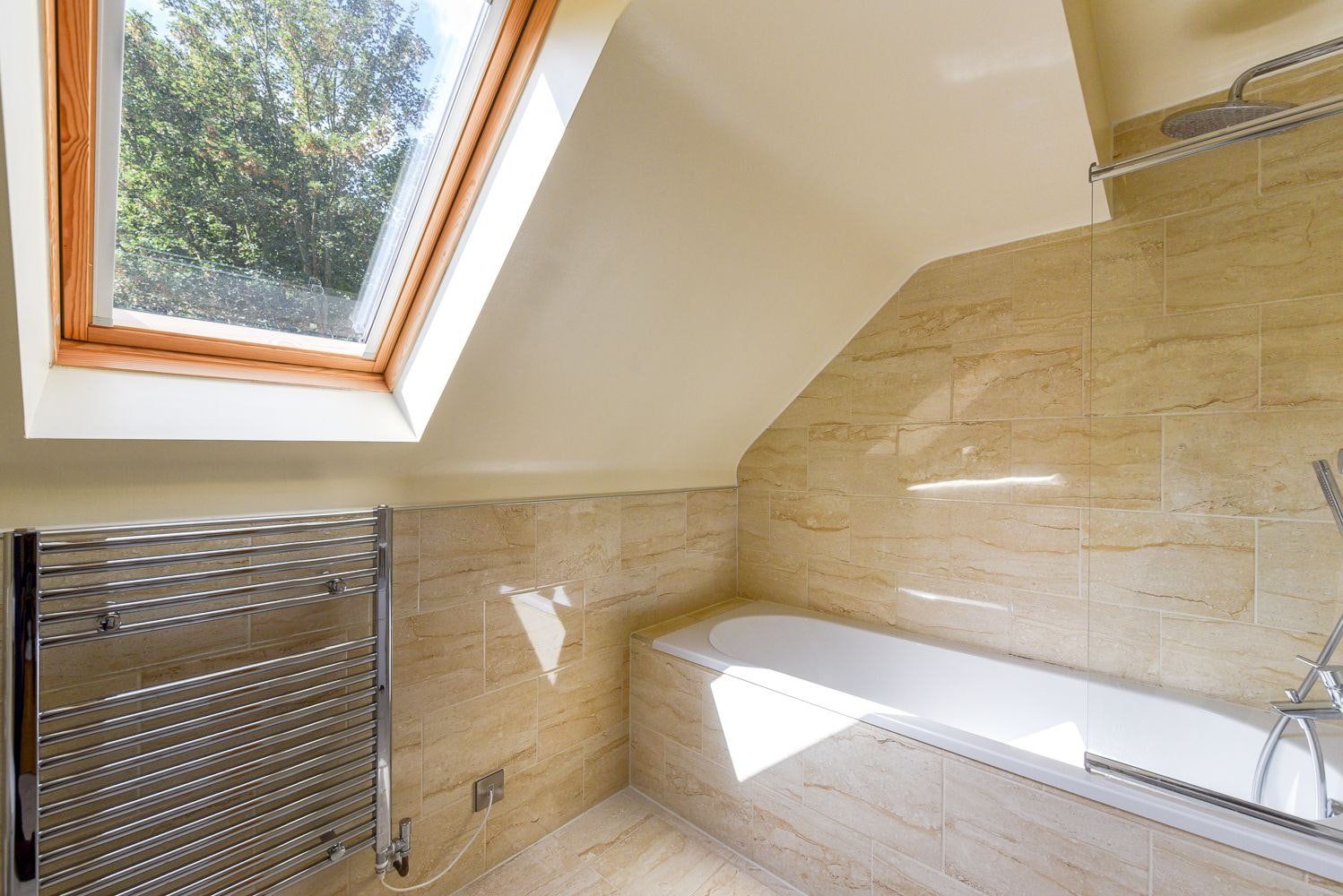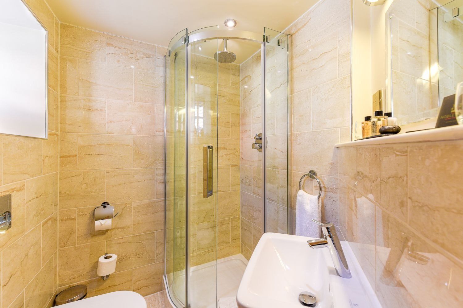 With multiple skylights, this living area gets a breath of natural light and the greenery that surrounds the property. We love the bold use of purple – from the plush sofa to the tasteful TV wall – while the small wooden dining table is perfect for meals together. Step downstairs into the painted green kitchen and find it roomy and well-equipped, ideal for all your self-catered meals. On nice days, enjoy lunch outside on the patio set, overlooking the grounds, and soak in some sunshine. You’ll probably want to head down to the beach too – Sandsend Sands is just a fifteen-minute walk from home. Spend the rest of your time exploring the nearby Whitby and its literary history, beautiful coast and delicious fish and chips.