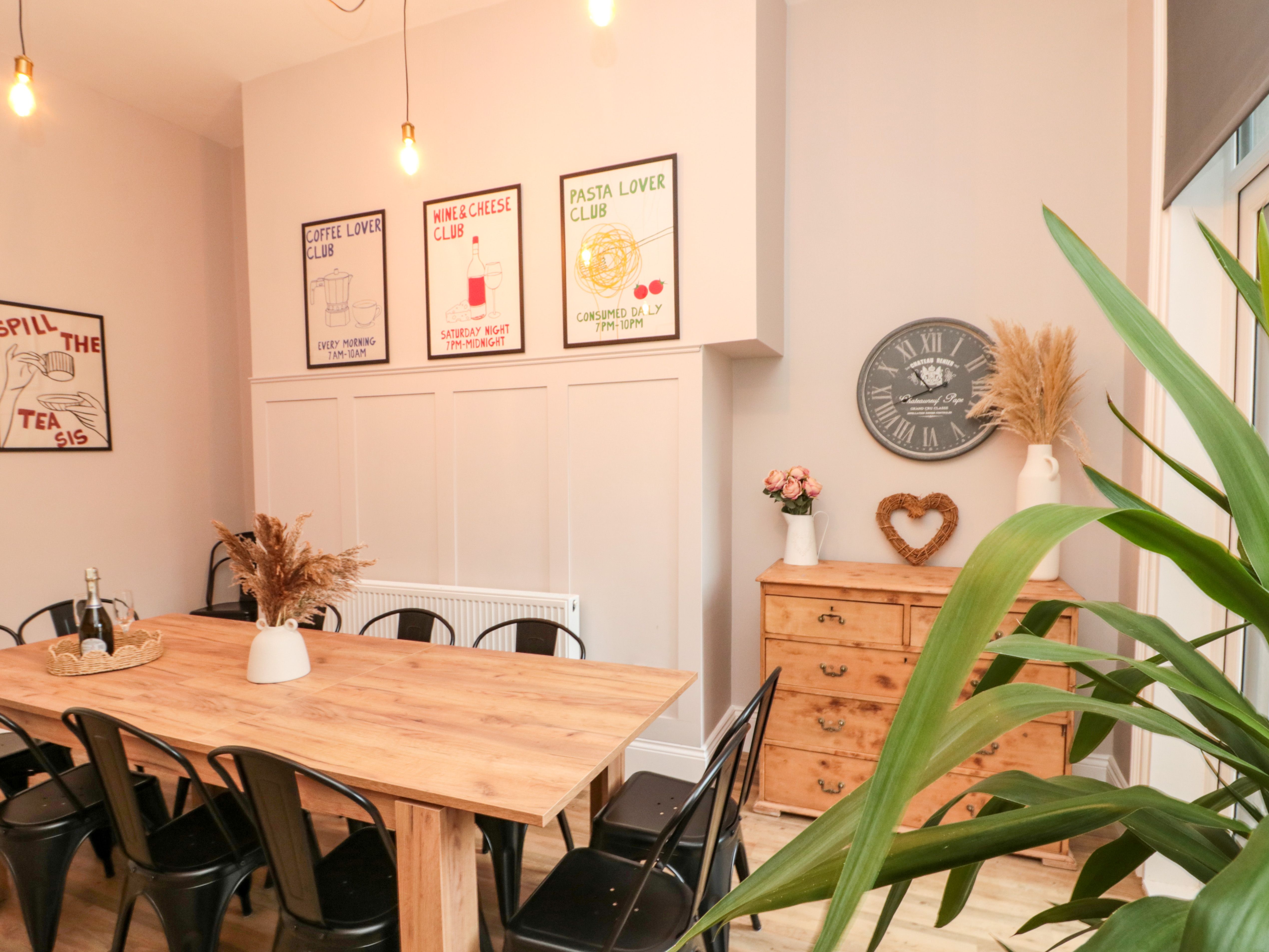 Gas central heating. Oven, hob, microwave, washing machine, dishwasher, air fryer, toastie maker, slow cooker. 9 x Smart TVs, WiFi. Fuel and power inc. in rent. Bed linen and towels inc. in rent. Highchair and travel cot available on request. Roadside parking available. Enclosed, rear garden with gravel and lawn. One well-behaved pet welcome. Sorry, no smoking. Shop 0.2 miles, pub 0.1 miles, beach 0.7 miles. Note: One of the double bedrooms is accessed via another bedroom on the third floor. Note: A few steps up to property and a few steps on the landings, please take care. Note: Washing machine facilities are available; however, children are not permitted in this area due to the presence of cleaning products