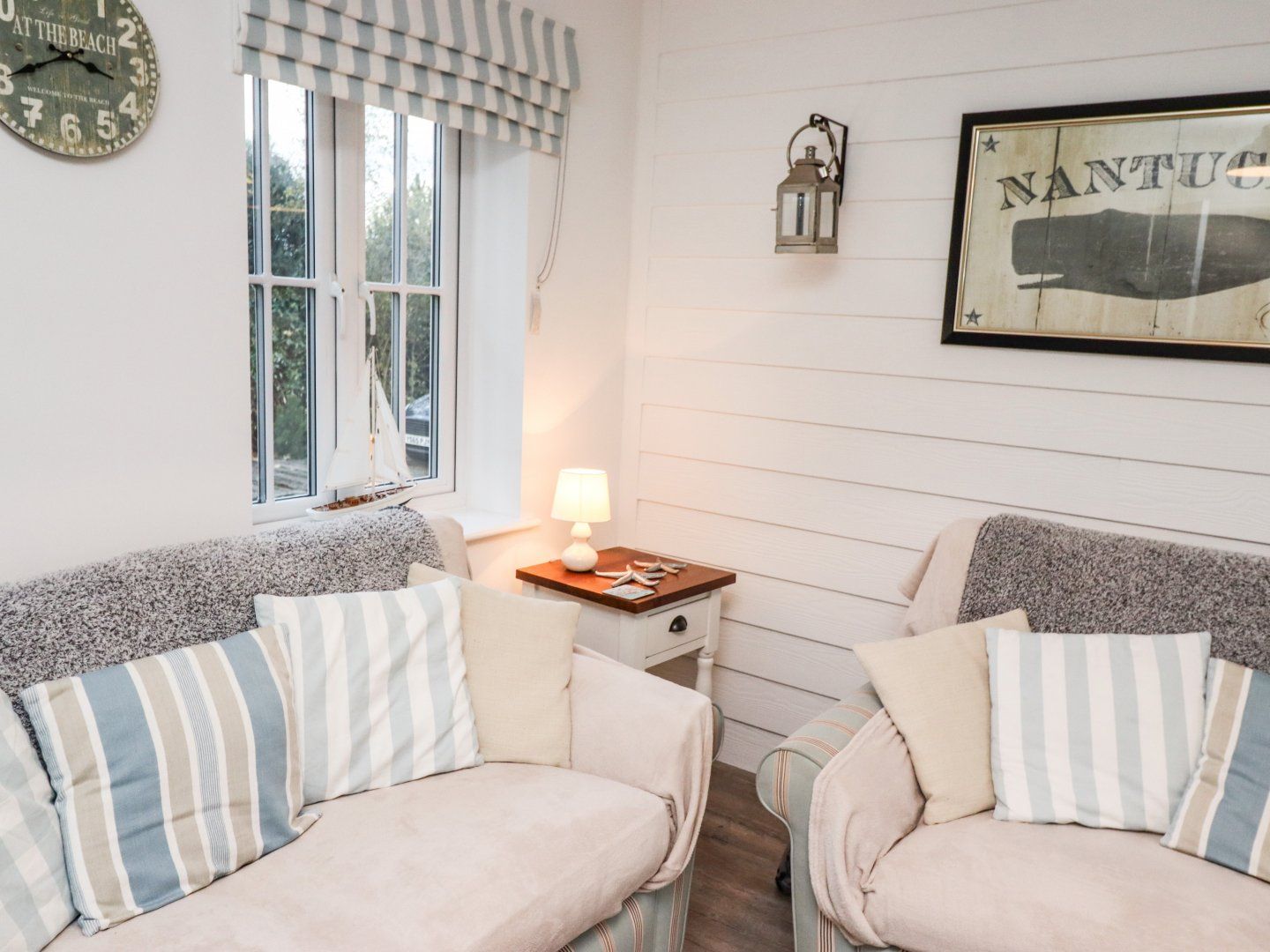 Accomodation Details Two bedrooms: 1 x double with TV, 1 x twin. Bathroom with bath, shower over, basin and WC. Cloakroom with basin and WC. Open-plan living space with kitchen, dining area and sitting area