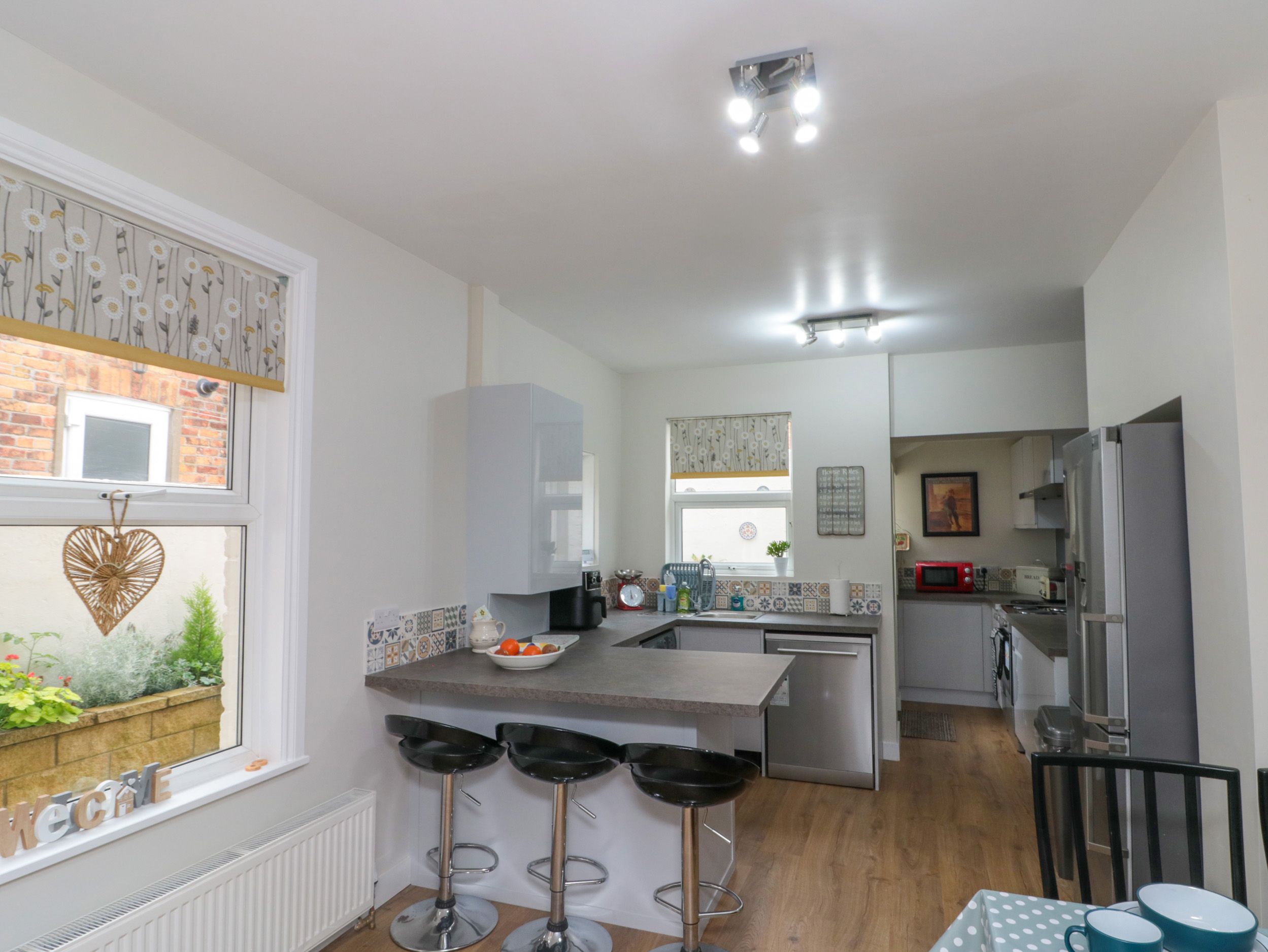 Holiday home 40 Ashville Avenue is a house consisting of a kitchen/diner with a dining table seating four, a breakfast bar seating three, an oven, hob, fridge/freezer, dishwasher, washing machine, coffee maker, microwave, kettle, and toaster, and a sitting room with a TV. The bedrooms consist of a king-size (zip/link, can be twin upon request), twin, single, and ground-floor twin. There is a bathroom with a bath, walk-in shower, basin, and WC, and a shower room with a walk-in shower, basin, and a separate WC. WiFi, fuel, power, bed linen, and towels are included in the rent. Outside, there is an enclosed rear courtyard with furniture and roadside parking. One well-behaved pet is welcome. Sorry, no smoking. Shop 0.1 miles, pub 0.2 miles, beach 0.4 miles. Make memories with a stay at 40 Ashville Avenue.