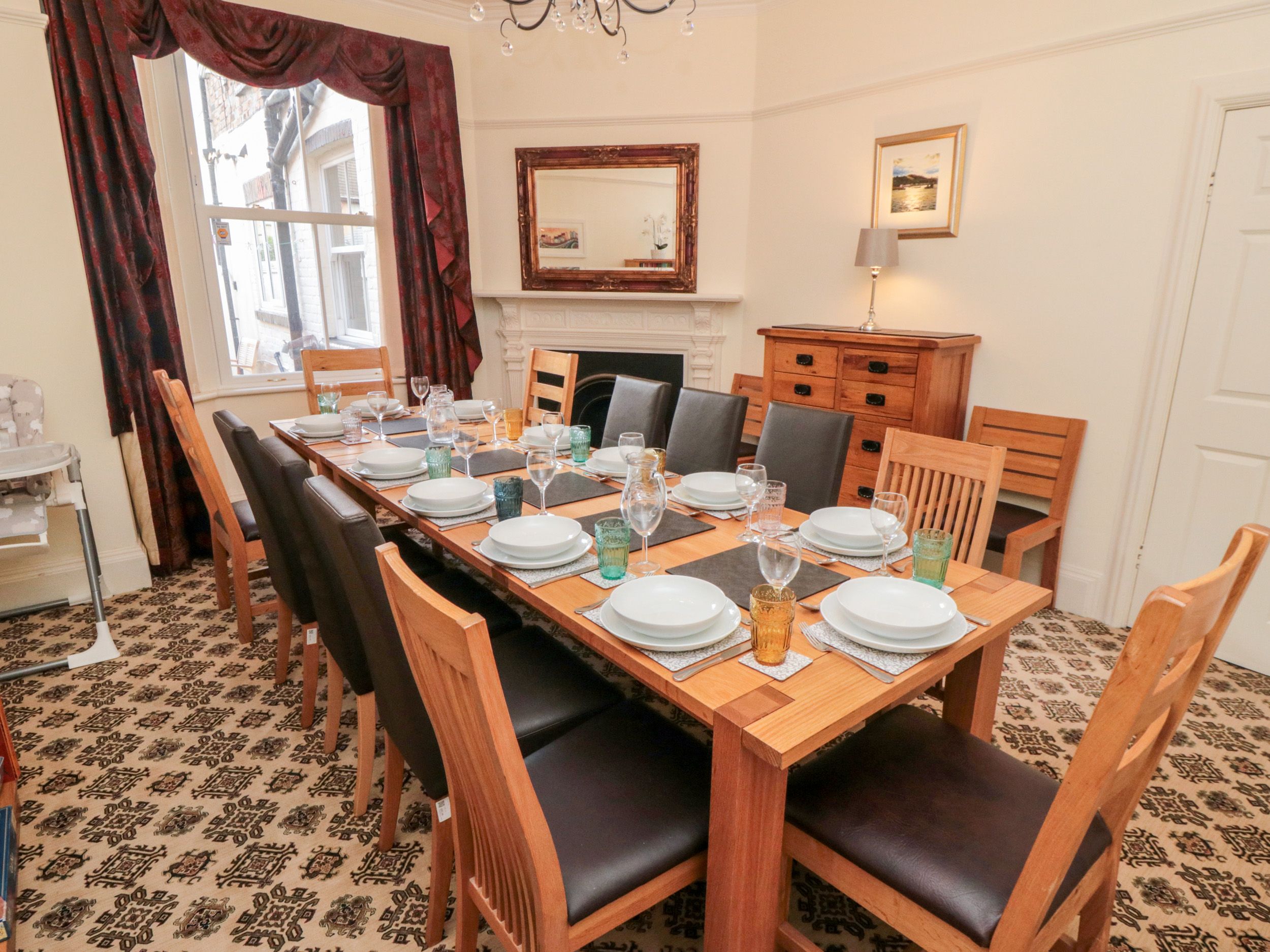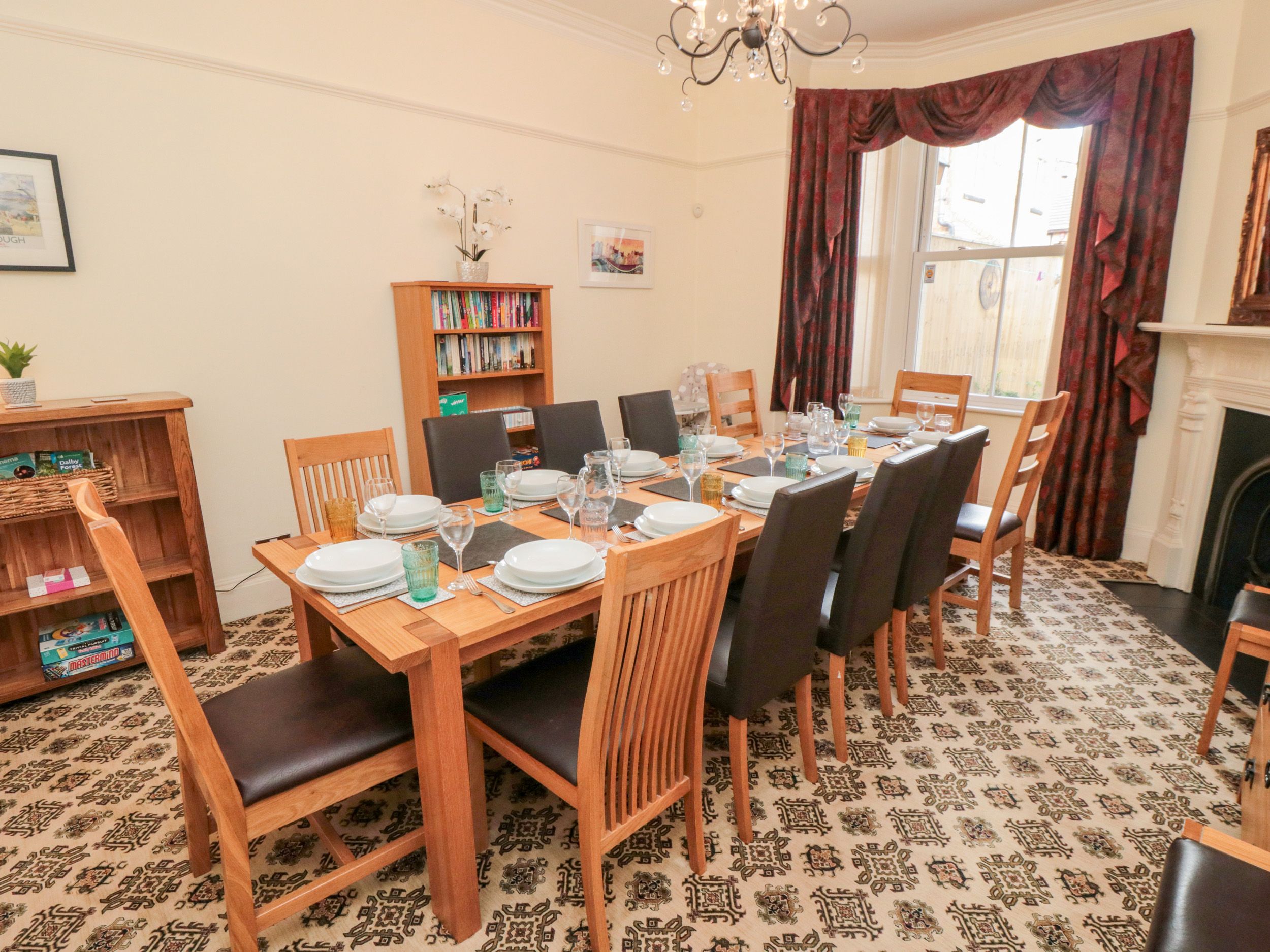 Holiday home The living areas in this three-storey home consist of a kitchen/diner with an oven, hob, microwave and fridge/freezer, a utility with washing machine, a dining room, and a sitting room with TV and a selection of books. The five bedrooms consist of a king-size (zip/link) with TV, a second floor family room with a double bed and a single, a second-floor double, a first floor family room with a king-size bed, single with pull-out truckle bed (children only), serviced by a bathroom and a cloakroom, and a superking size (zip/link) with TV. Outside there is an enclosed rear patio with furniture, an enclosed terrace with furniture, and designated parking for one car, with a garage. This is a smoke-free home. WiFi, fuel, power, bed linen and towels are all included in the price. You'll find a shop in 0.3 miles, a pub in 0.4 miles and the beach in 0.8 miles. For a seascape to North Yorkshire, book 50 West Street. Note: There are steps to the exterior of the home; please take care. Please Note: No stag or hen parties for those under 25 years old.