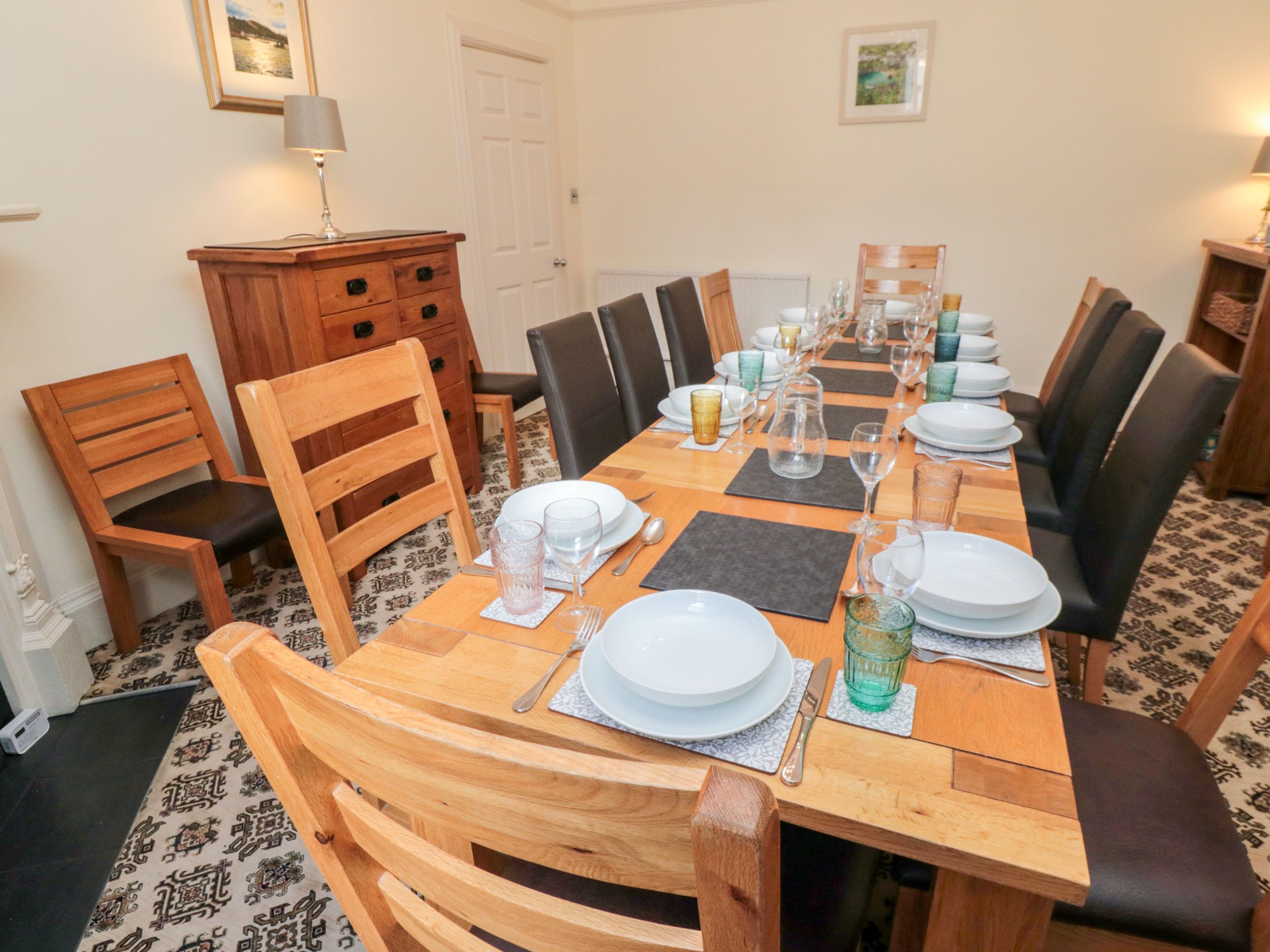 Accomodation Details Five bedrooms: 1 x second floor super king (zip/link, can be twin on request) with TV and ensuite with shower cubicle, WC and basin, 1 x second floor Family room with double bed and single, 1 x second-floor double, 1 x first floor family room with king-size bed, single with pull out truckle bed (suitable for child only), and ensuite with large shower cubicle, WC and basin, 1 x super king-size (zip/link, can be twin on request) with TV. Bathroom with bath, shower over, basin, heated towel rail. Separate WC with basin. Downstairs cloakroom with basin and WC. Second Sitting Room/Snug with Access to Outside Balcony. Games room with pool table on ground floor. Dining room. Sitting room with Smart TV. Kitchen/diner. Oven, hob, microwave, dishwasher, 2 x fridge, freezer. Utility with washing machine and fridge. High chair.
